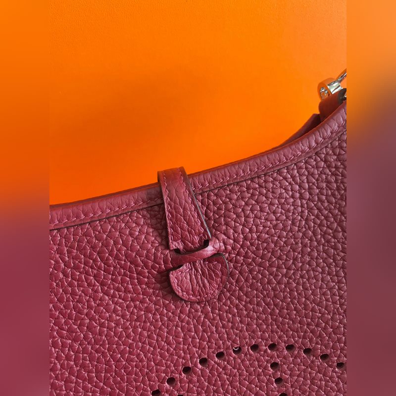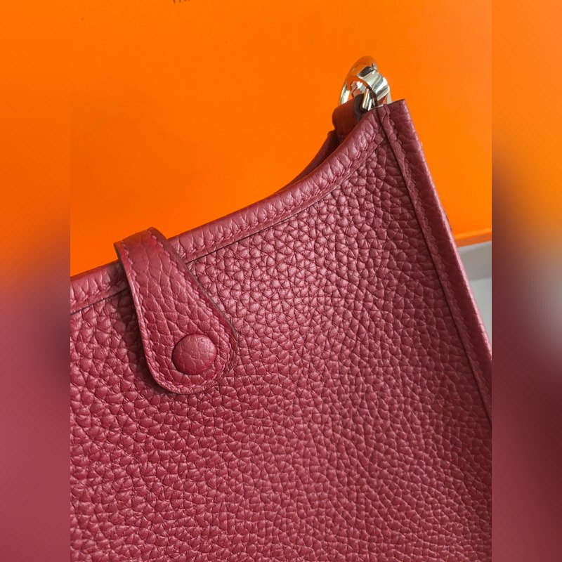 재고 있음 배송 준비 완료. 은색 버클이 달린 에블린 버건디. 밀랍 실