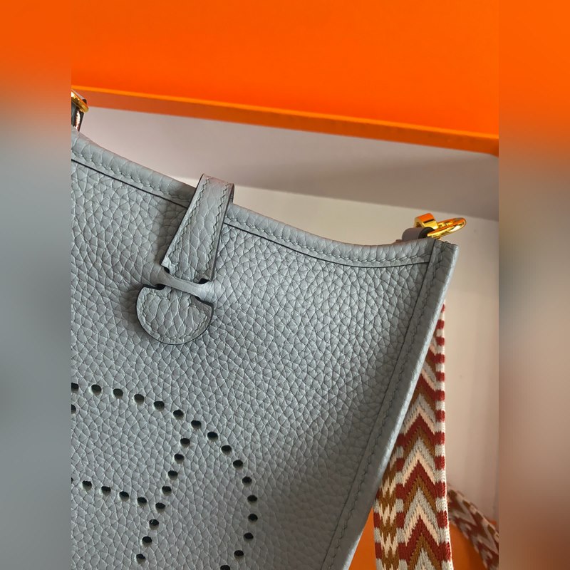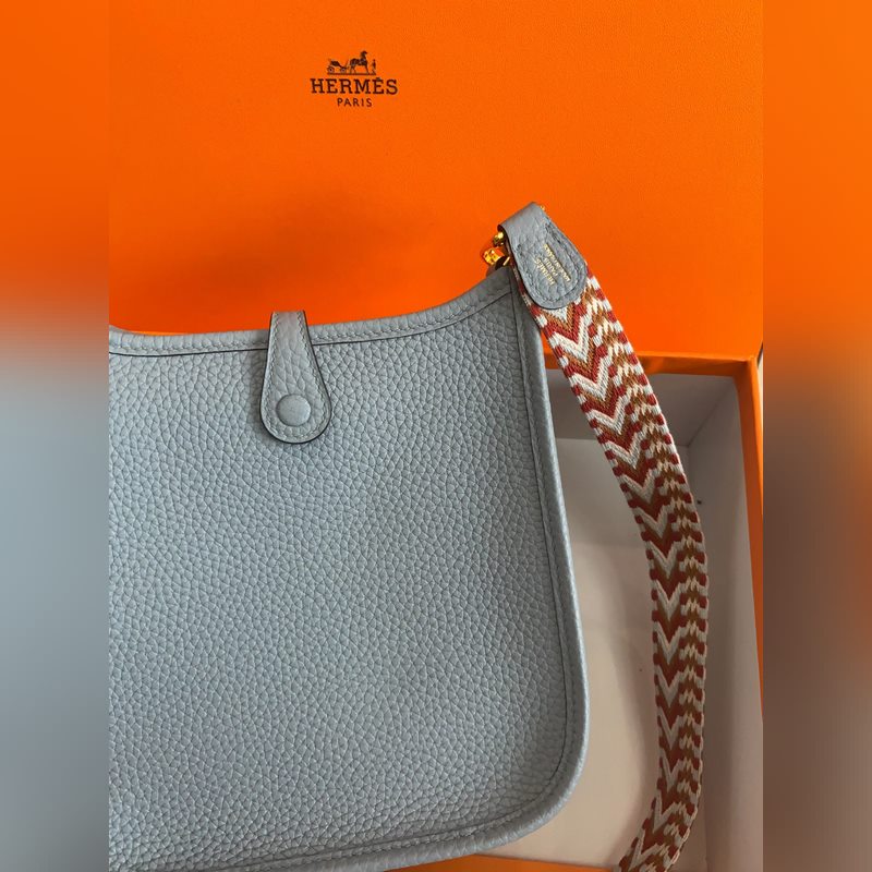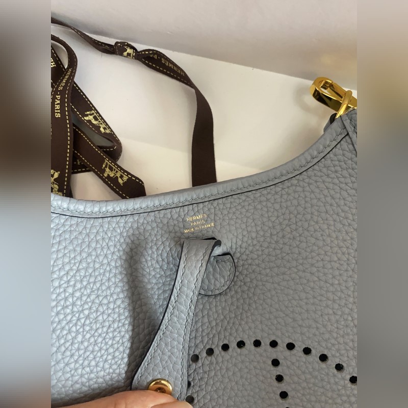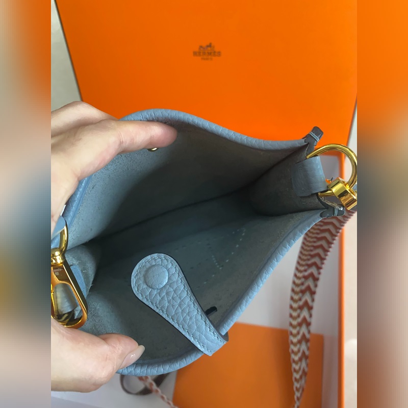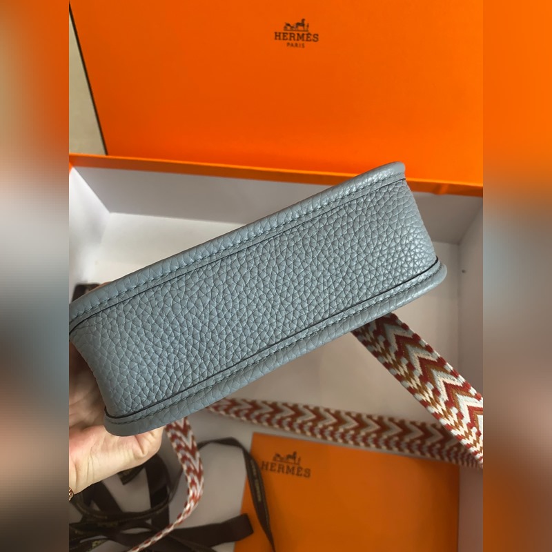 재고 있음 배송 준비 완료. 에블린 스모그 블루와 골드 버클. 반 수제 밀랍 실 스티치. 작은 사이즈 17cm 컬러 숄더 스트랩.