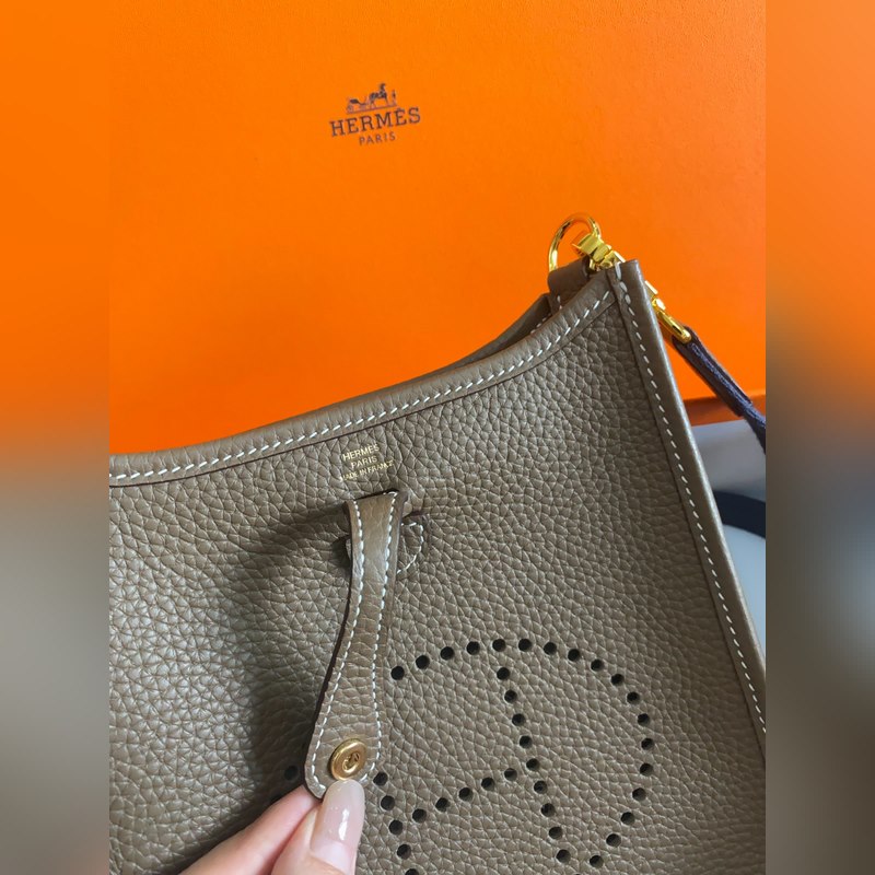 재고 있음 배송 준비 완료. 에블린 엘리펀트 그레이 실버 버클 반 수제 밀랍 실 스티치 작은 17cm 컬러 어깨 스트랩