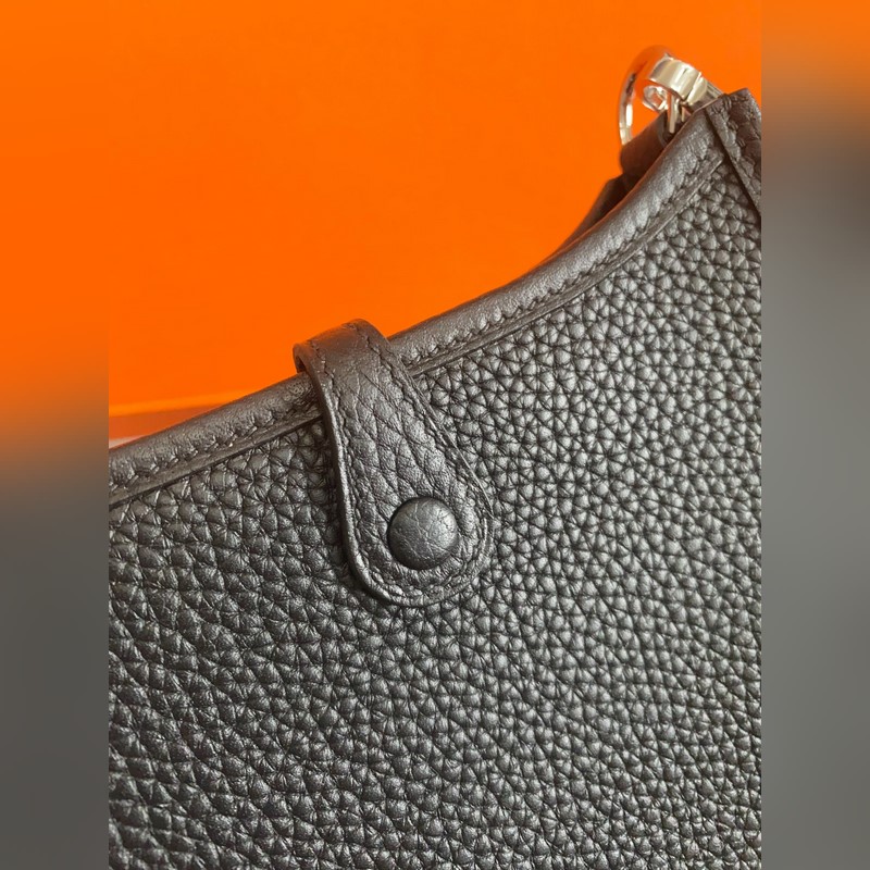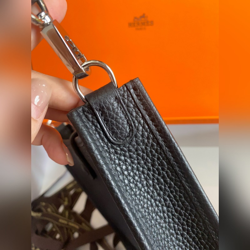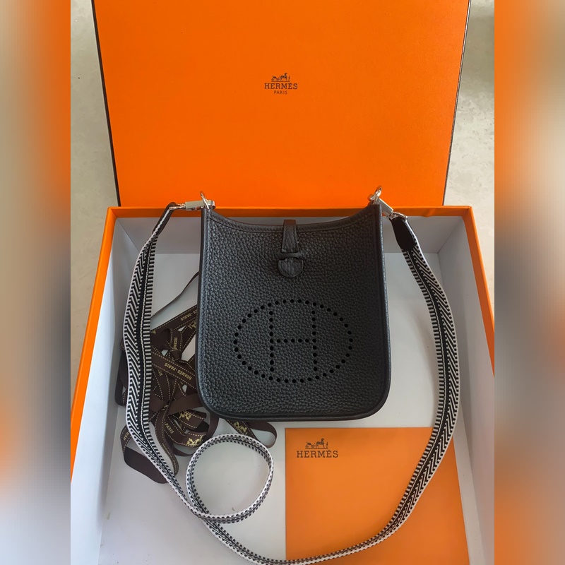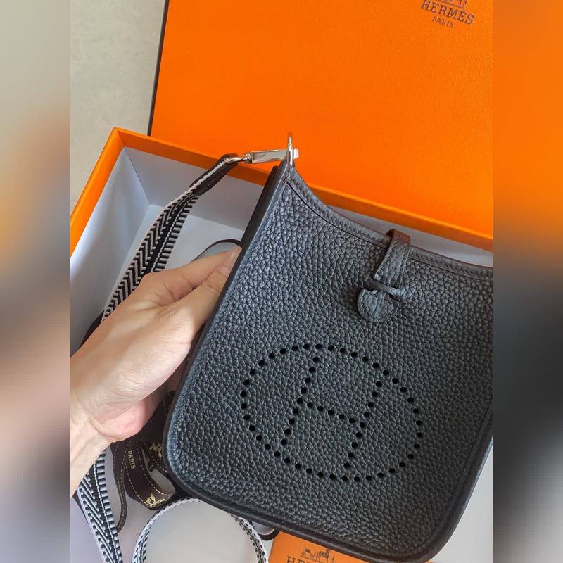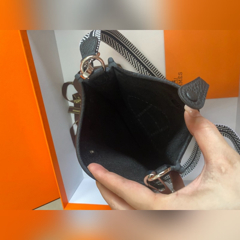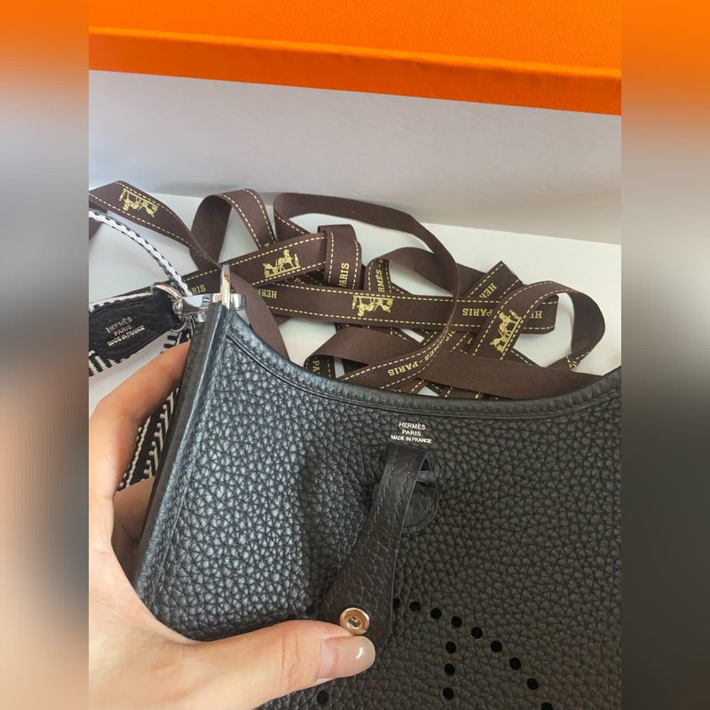 재고 있음 배송 준비 완료. 은색 버클이 달린 에블린 블랙. 밀랍 실과 작은 17cm 컬러 어깨 스트랩으로 반 수제 제작.
