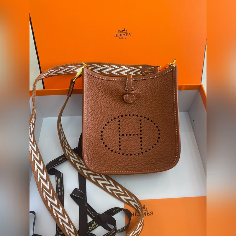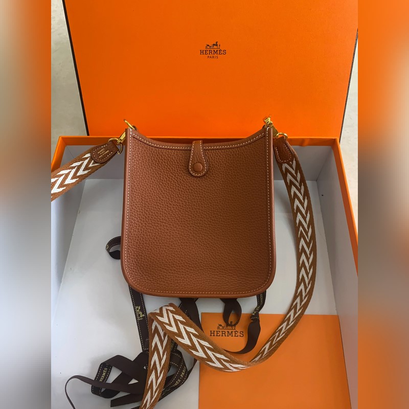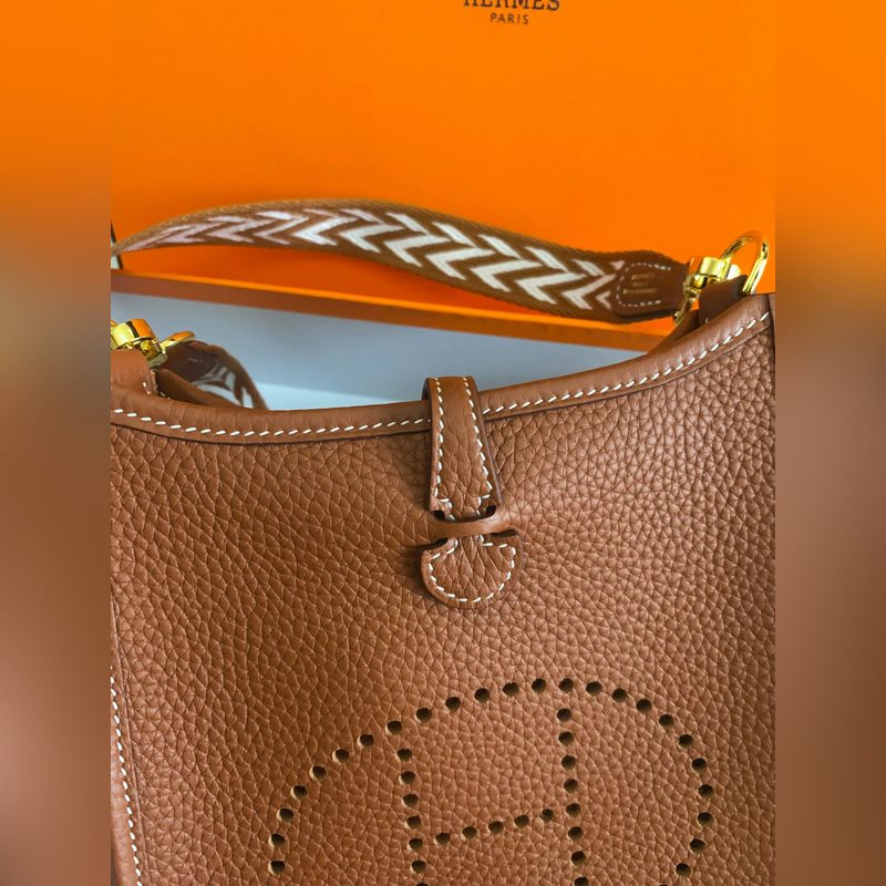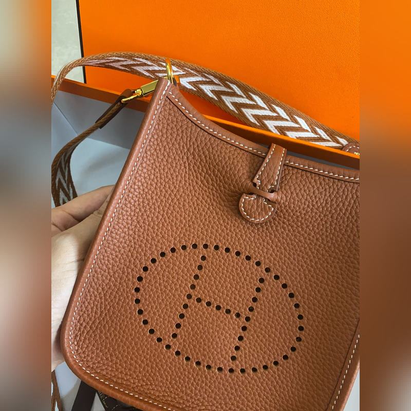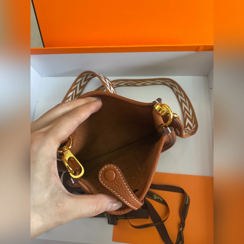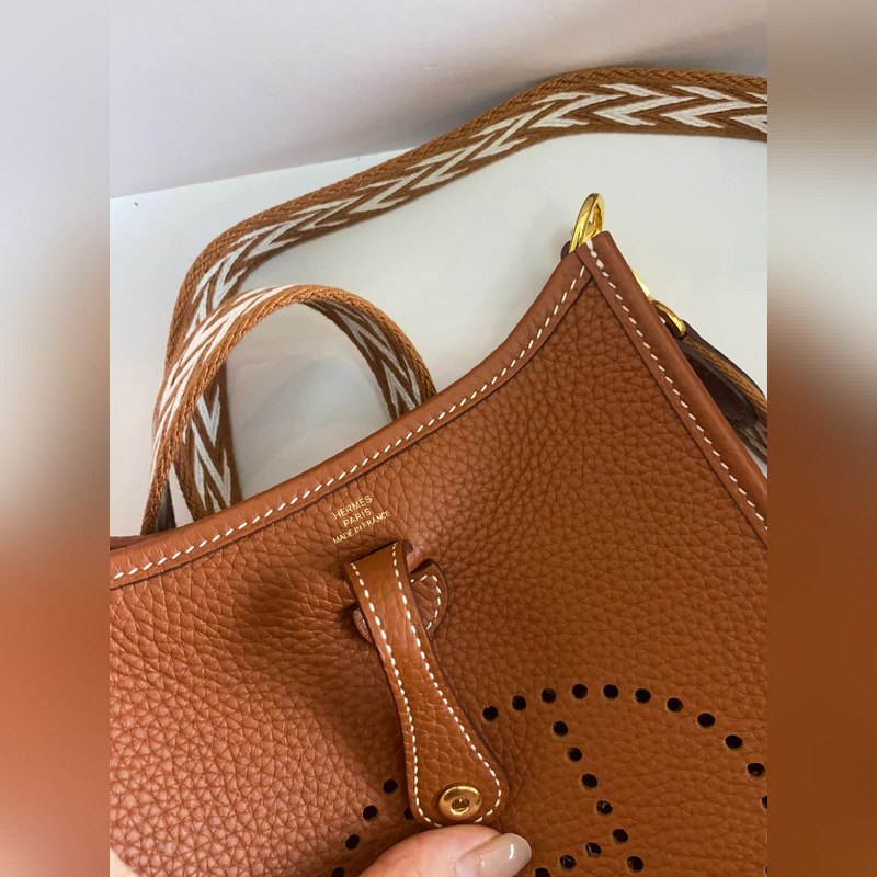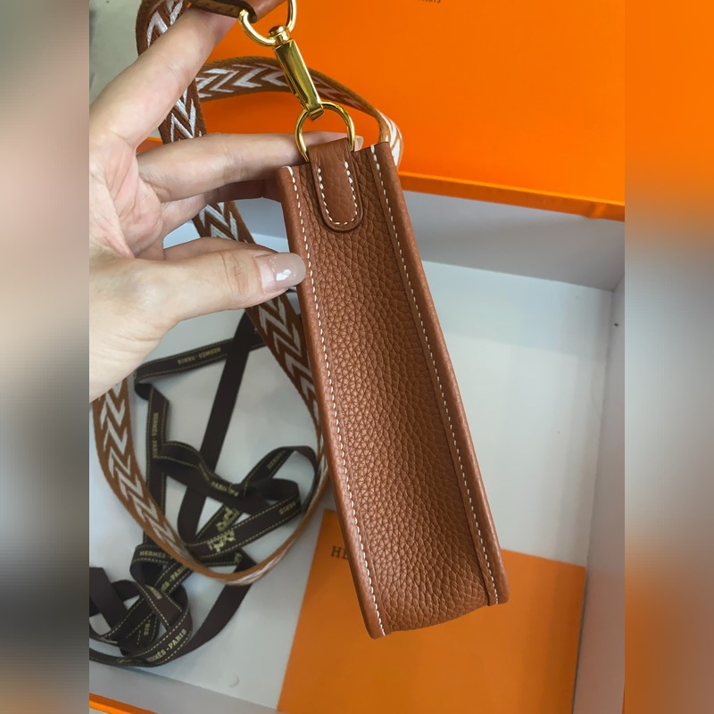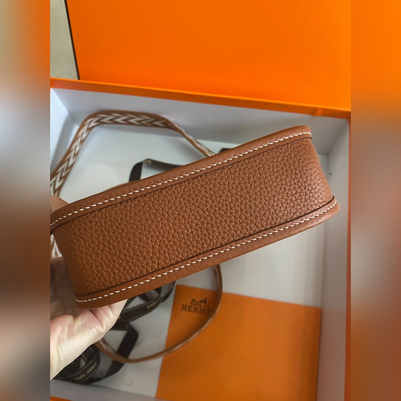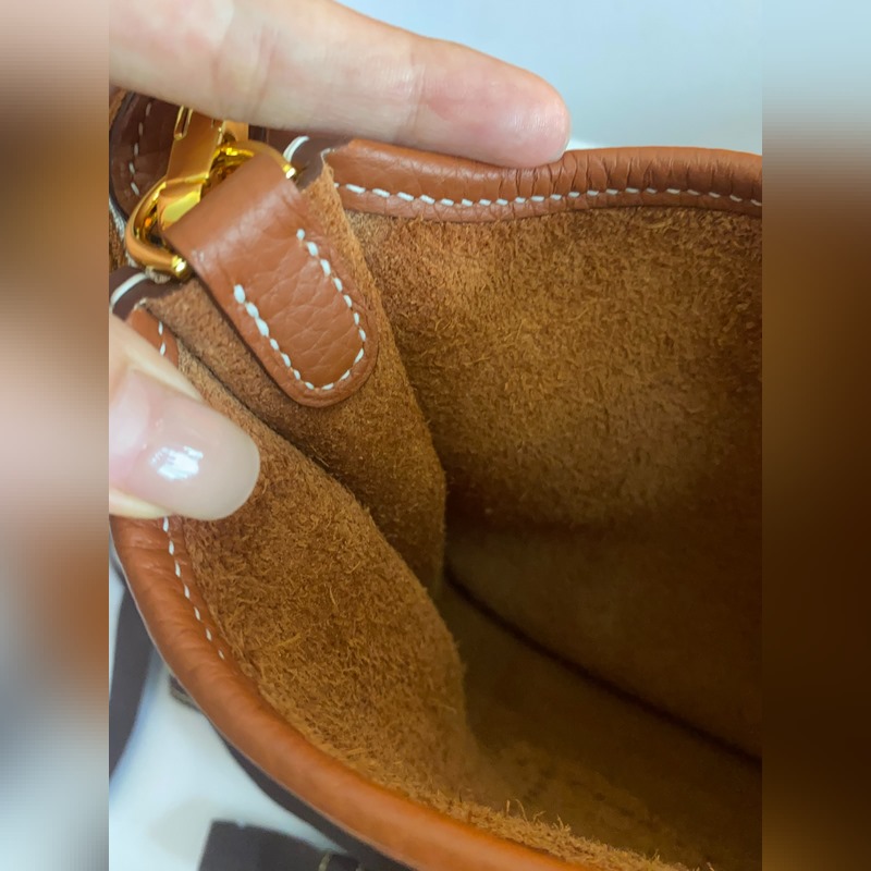 재고 품목의 실제 사진. 에블린 골드 브라운 골드 버클. 반 수제 밀랍 실 스티치. 작은 사이즈 17cm 컬러 숄더 스트랩.