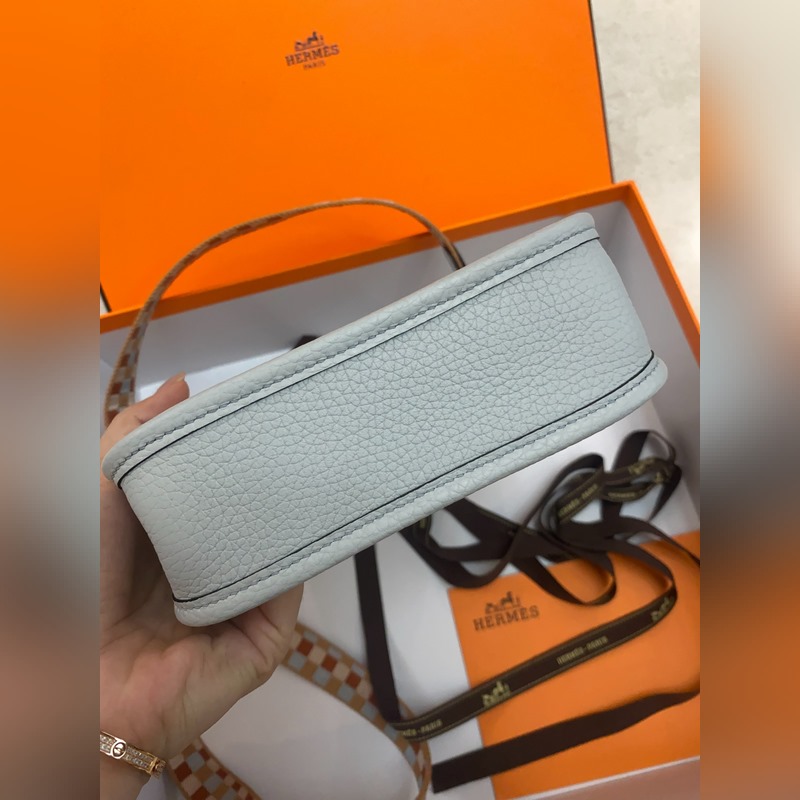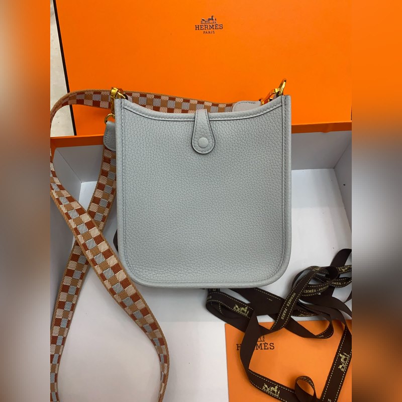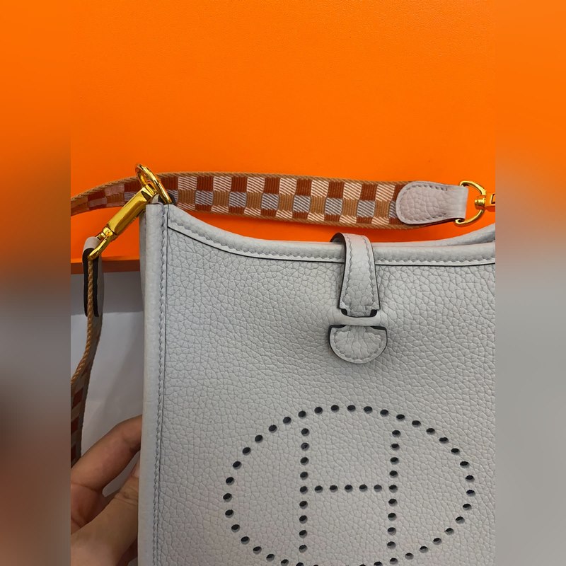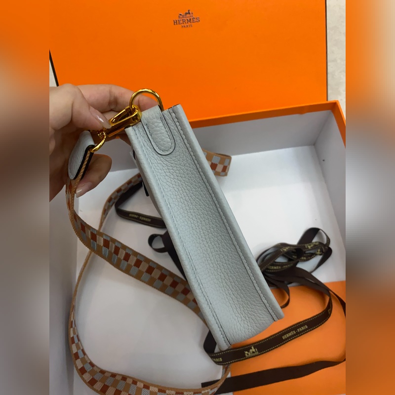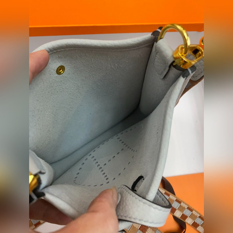 재고 있음 배송 준비 완료. 에블린 성배 블루와 골드 버클. 밀랍 실과 작은 17cm 컬러 숄더 스트랩을 사용한 반 수제 제품.