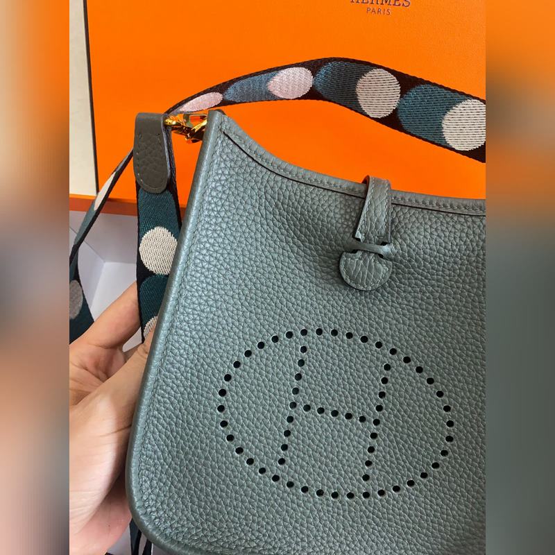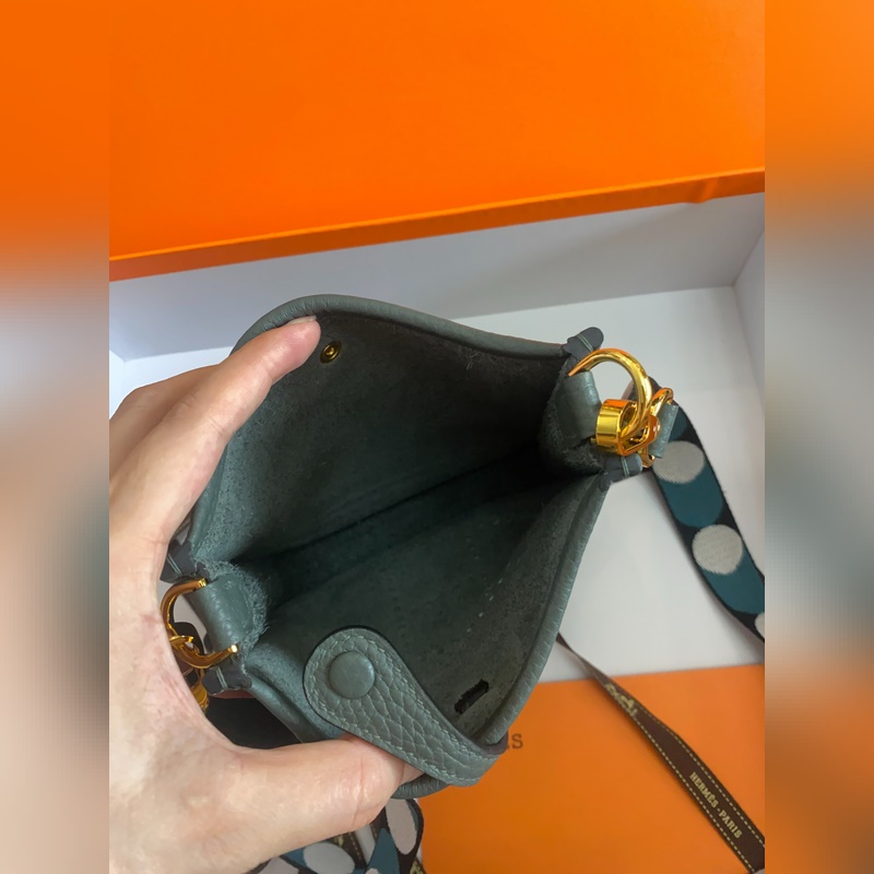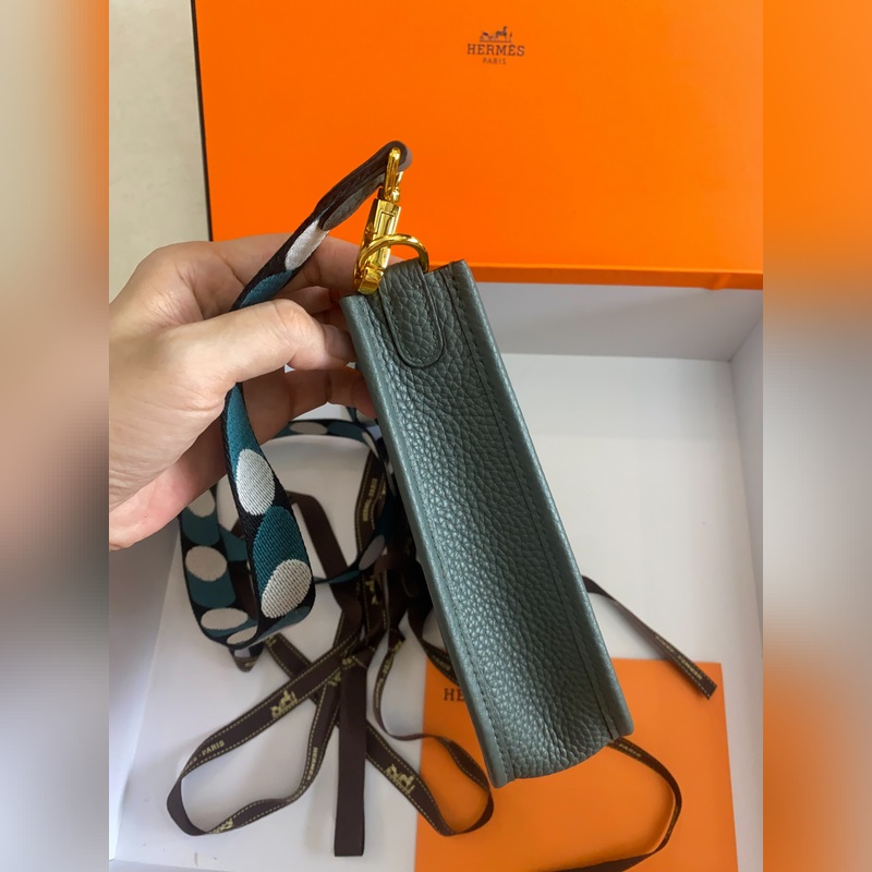 재고 있음 배송 준비 완료. Evelyn 영국산 녹색과 금색 버클. 밀랍 실과 작은 17cm 컬러 어깨 스트랩을 사용한 반 수제 제품.