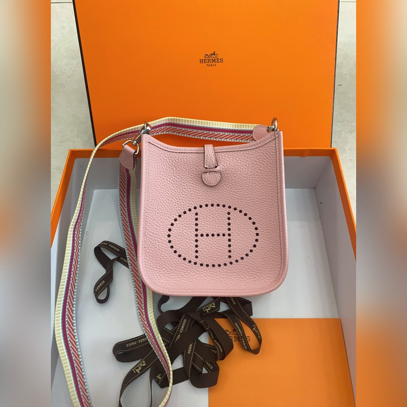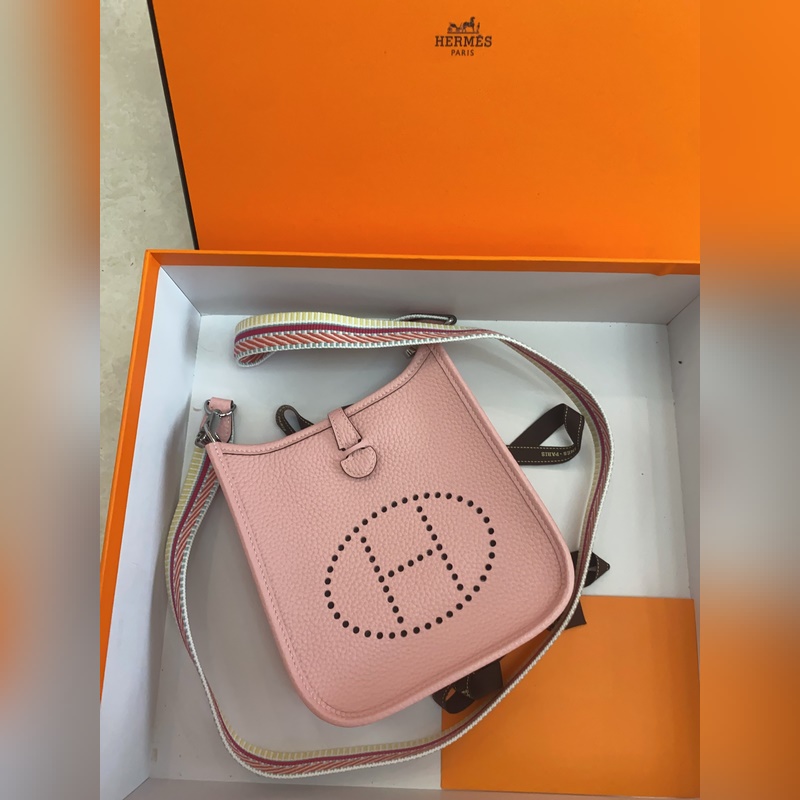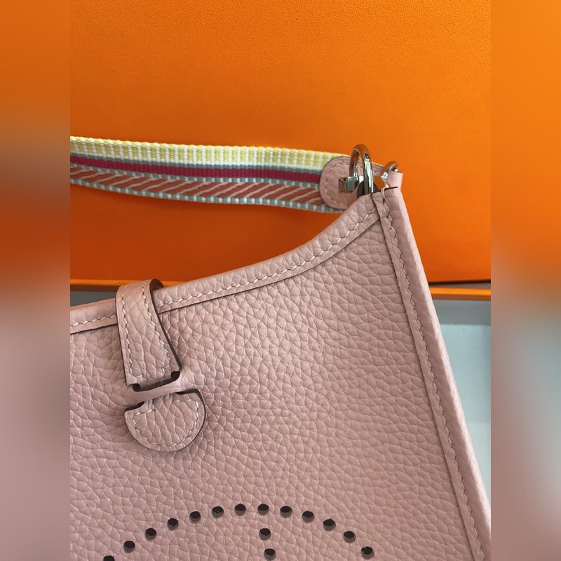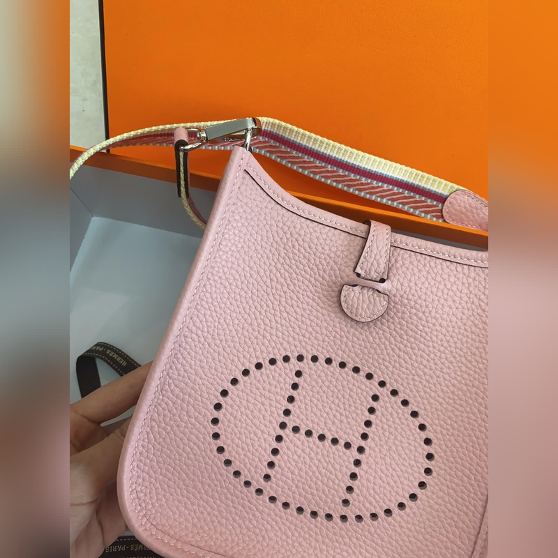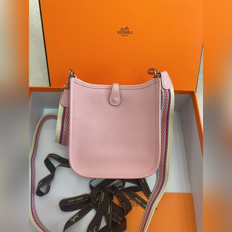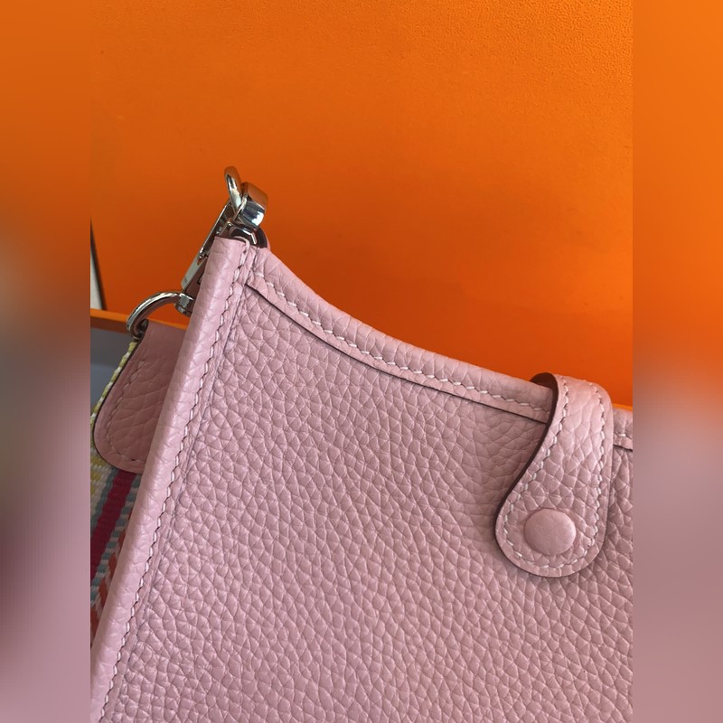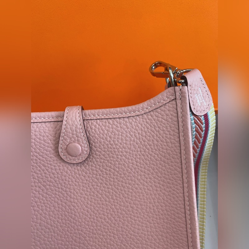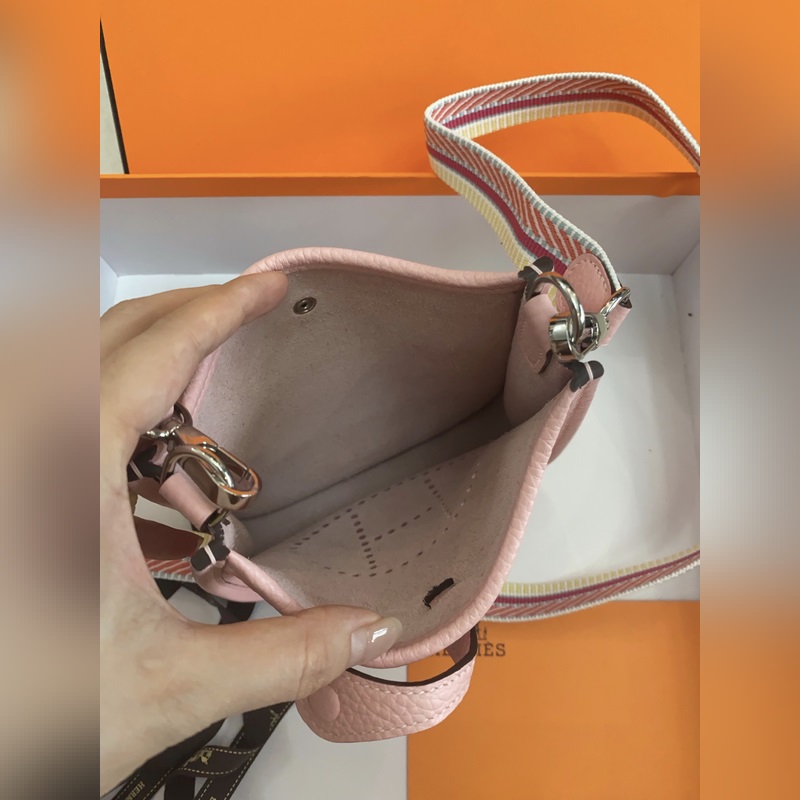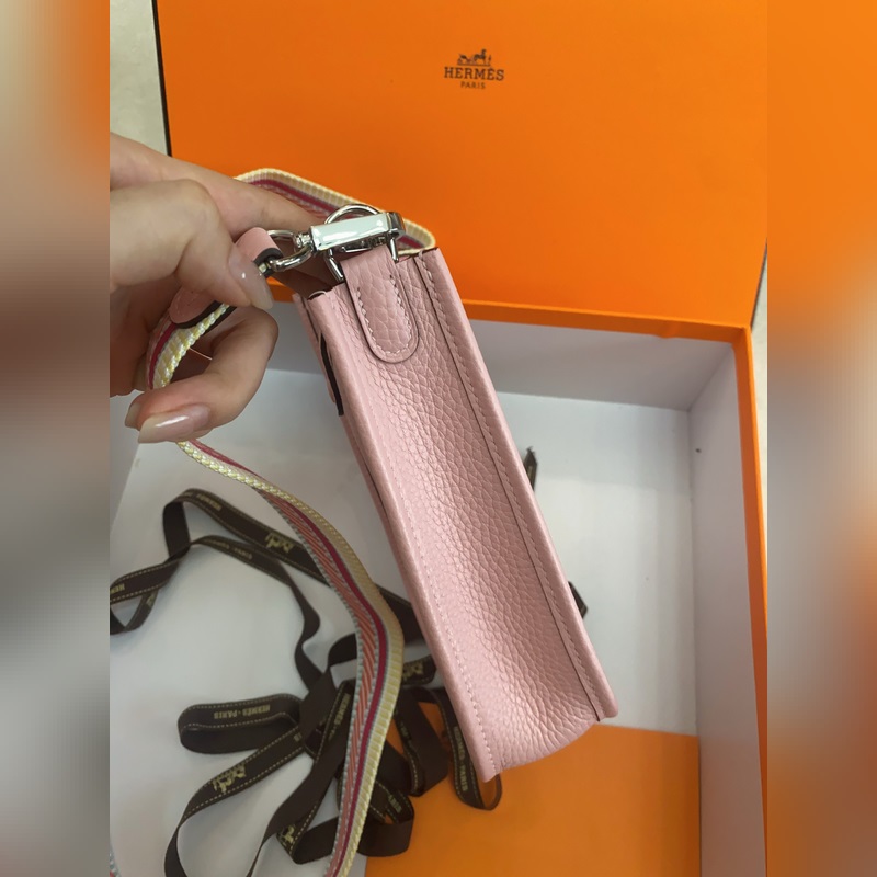 재고 있음 배송 준비 완료. 에블린 3Q 핑크와 실버 버클. 반 수제 밀랍 실 스티치. 소형 17cm 컬러 숄더 스트랩.