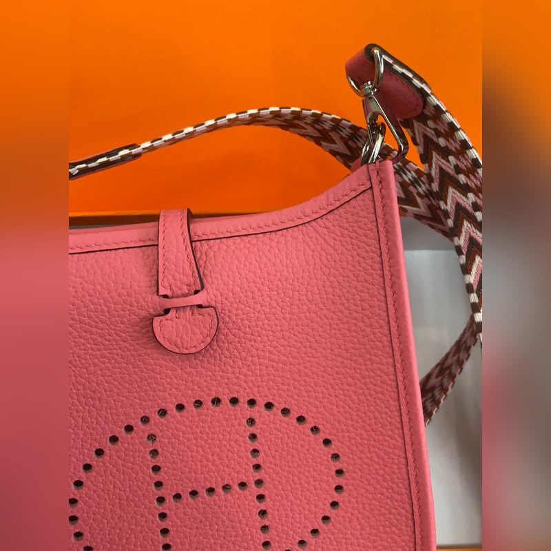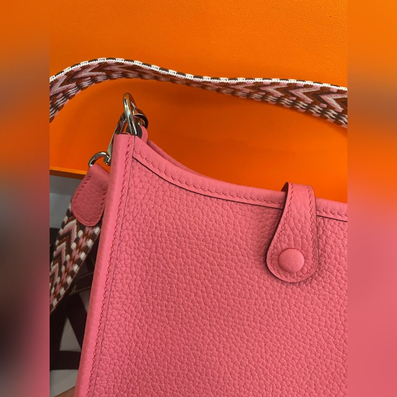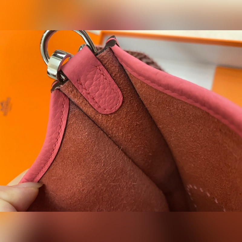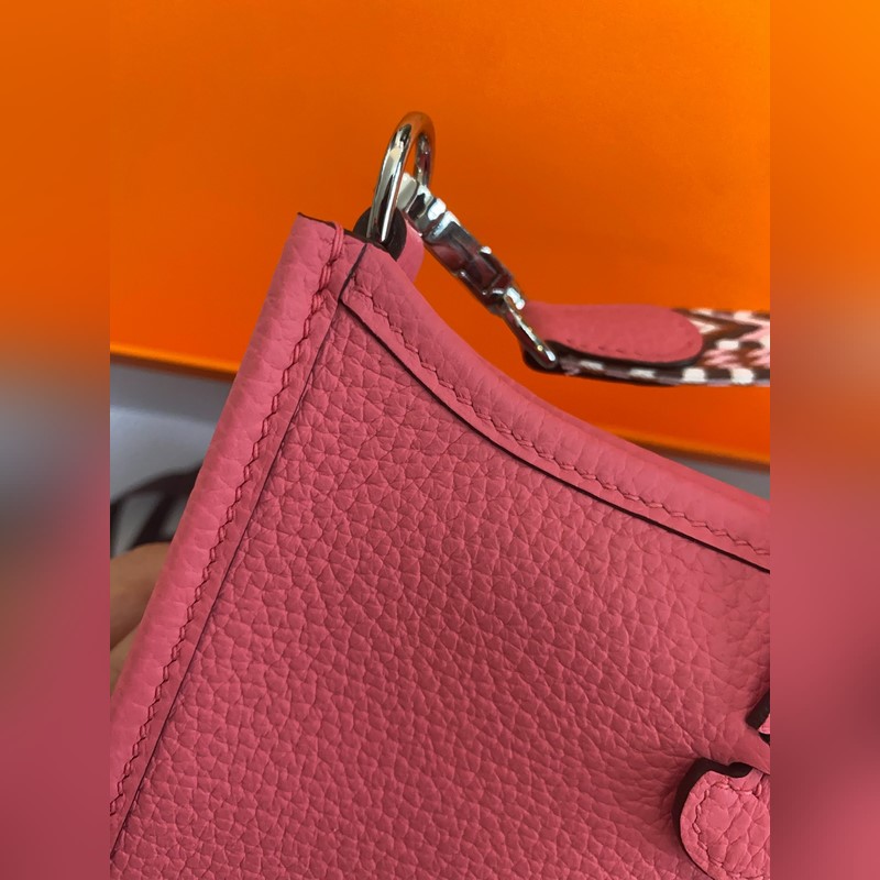 실제 사진입니다. 에블린 립스틱 핑크 실버 버클 반 수제 밀랍 실 스티치 소형 17cm 컬러풀한 숄더 스트랩