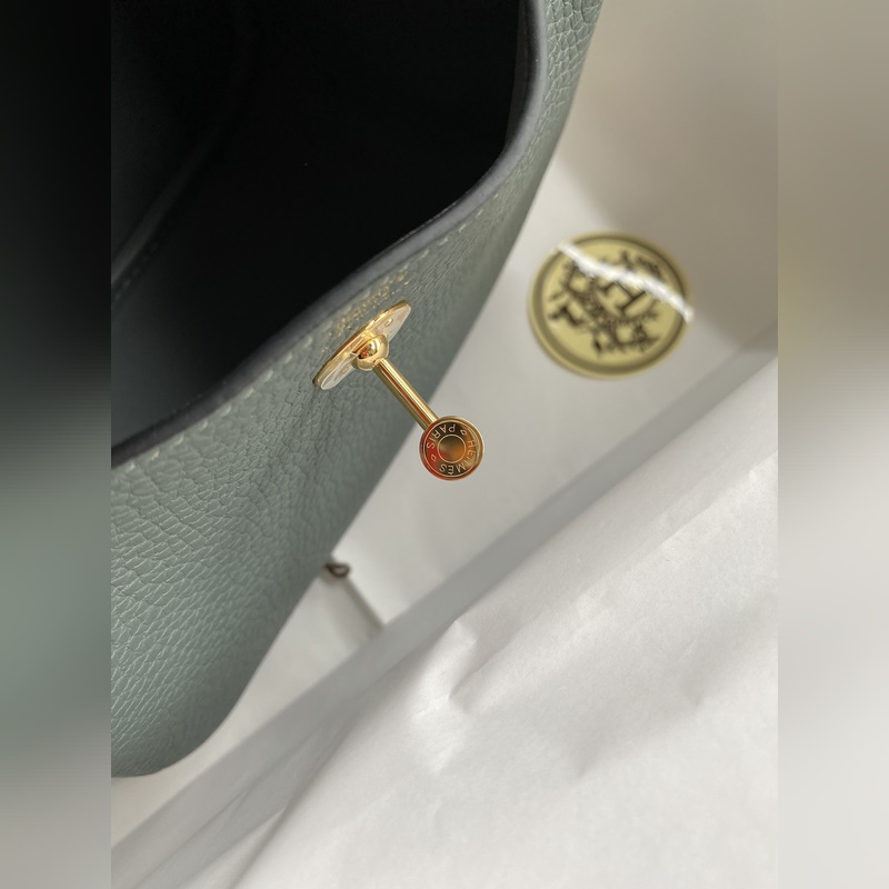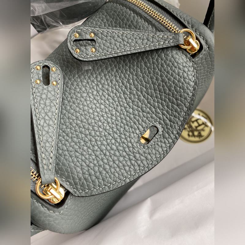 재고 있음: 미니 린디 19cm 반손바느질 수입 TC 가죽 아몬드 그린에 금색 단추 손바느질 필수 아이템