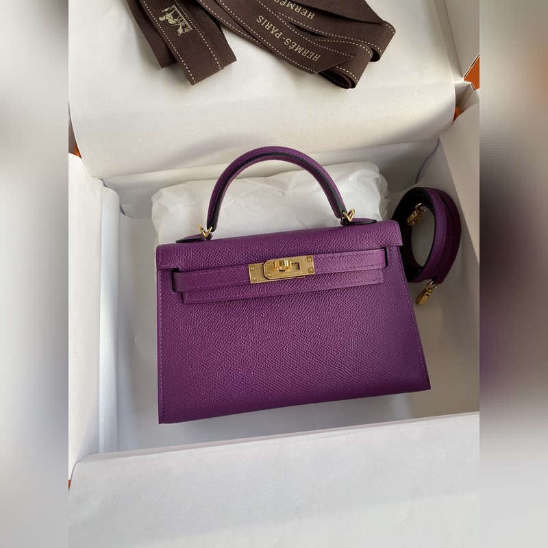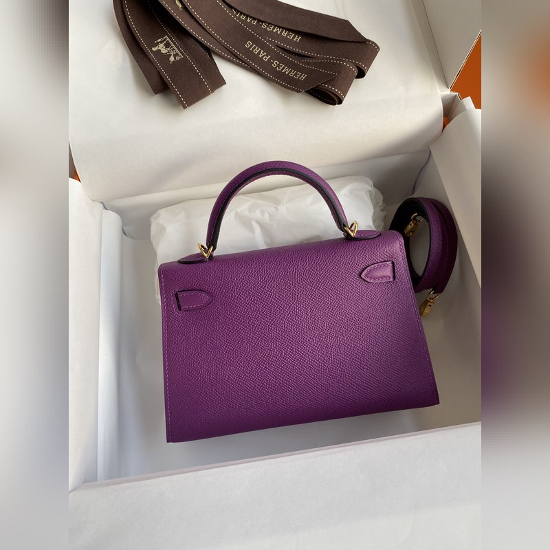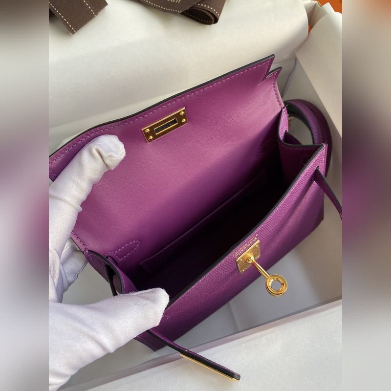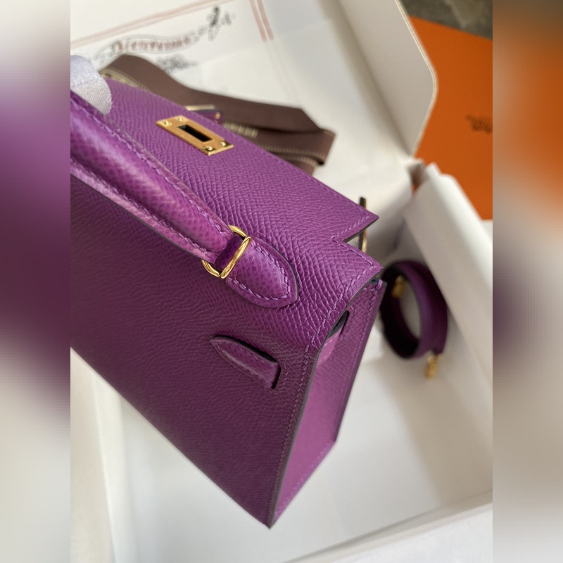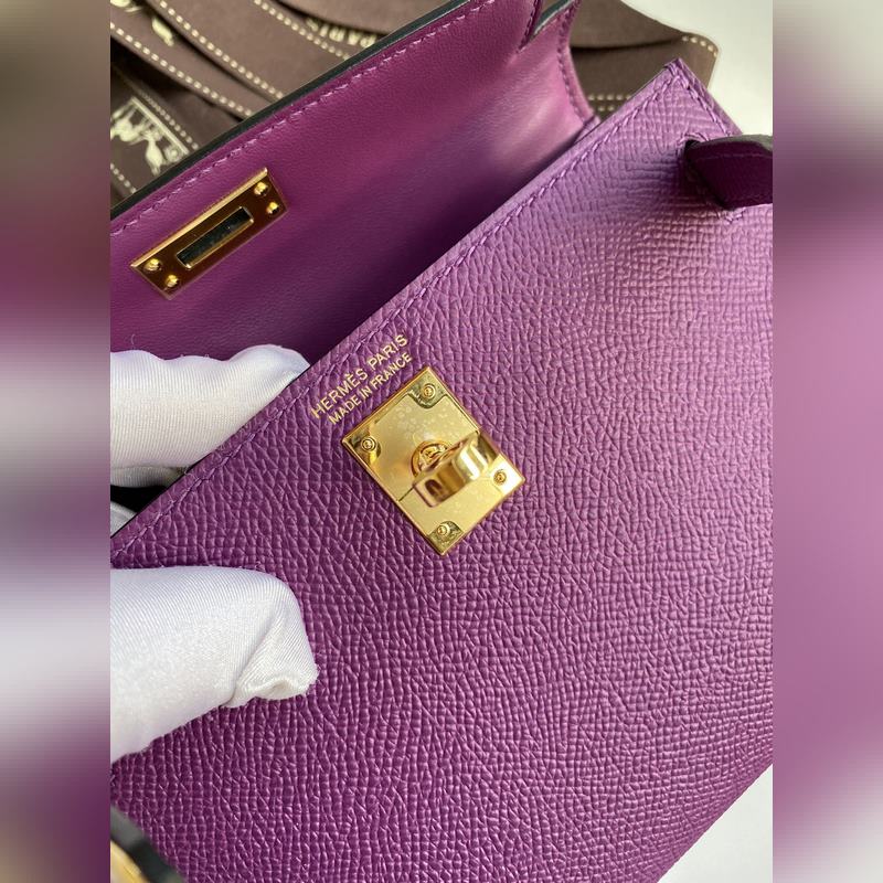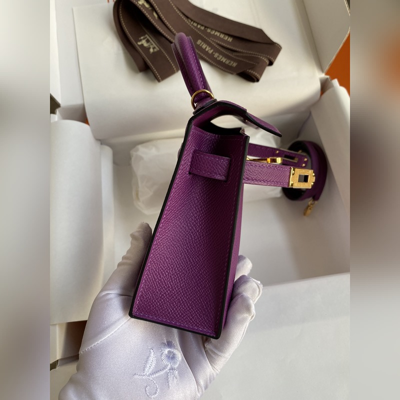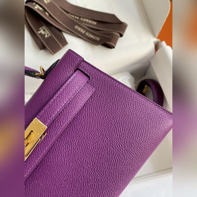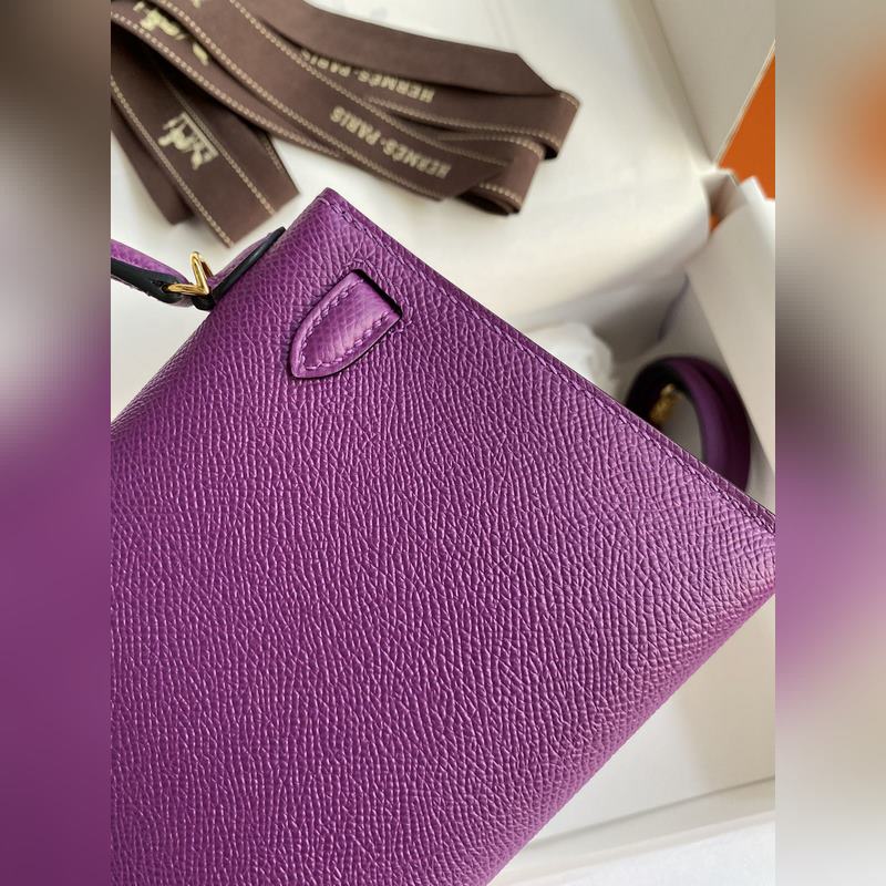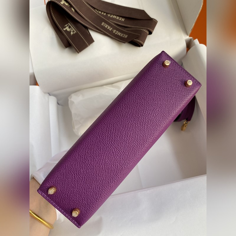 미니 켈리 19cm 2세대 수입 에프솜 가죽 아네모네 퍼플 골드