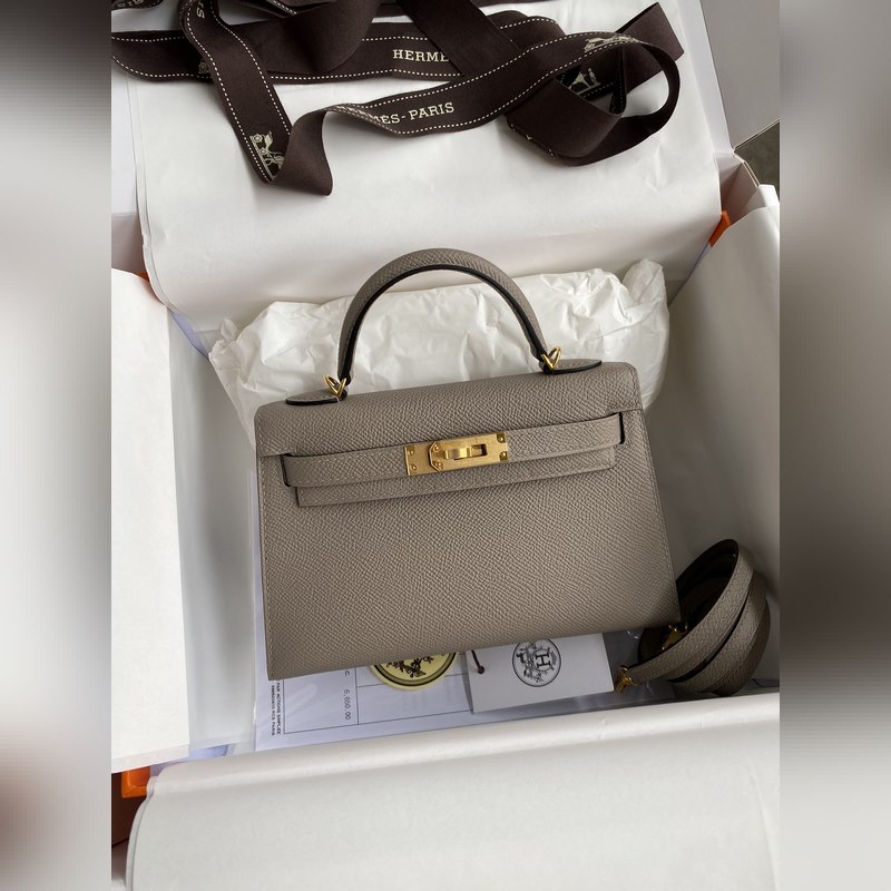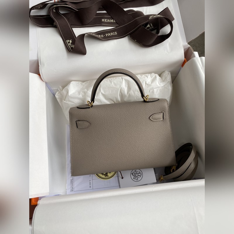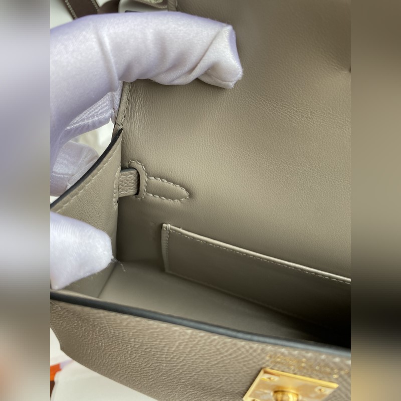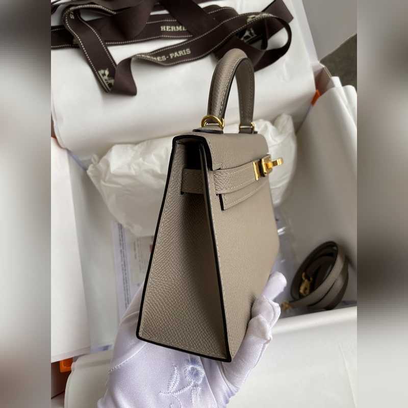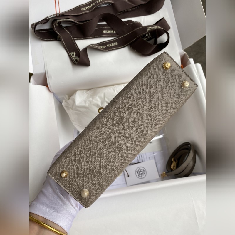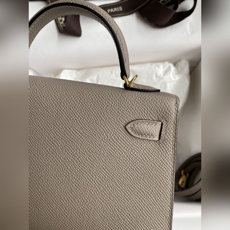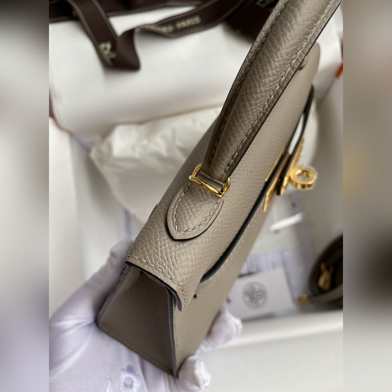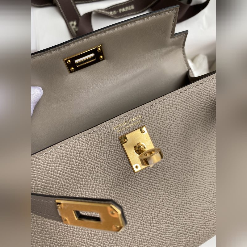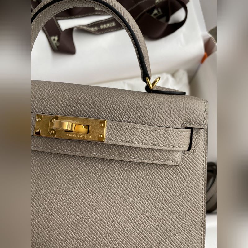 미니 켈리 19cm 2세대 수입 에프솜 가죽 아스팔트 그레이 골드
