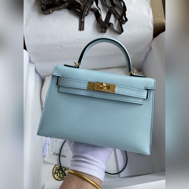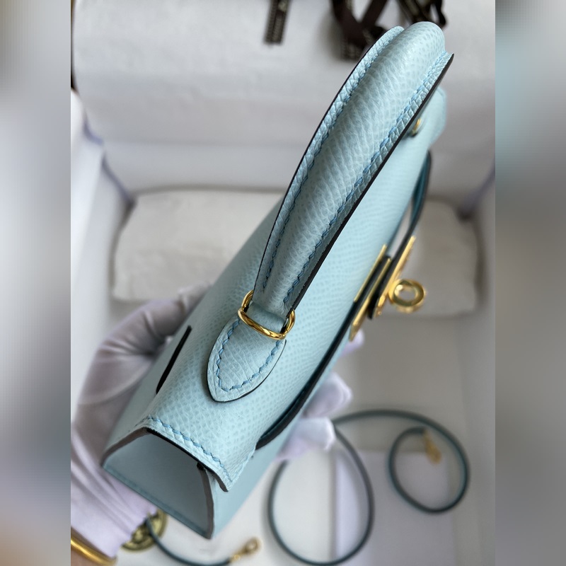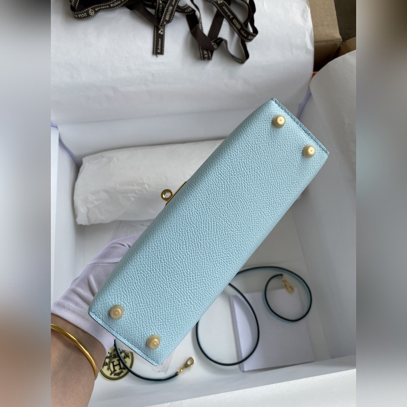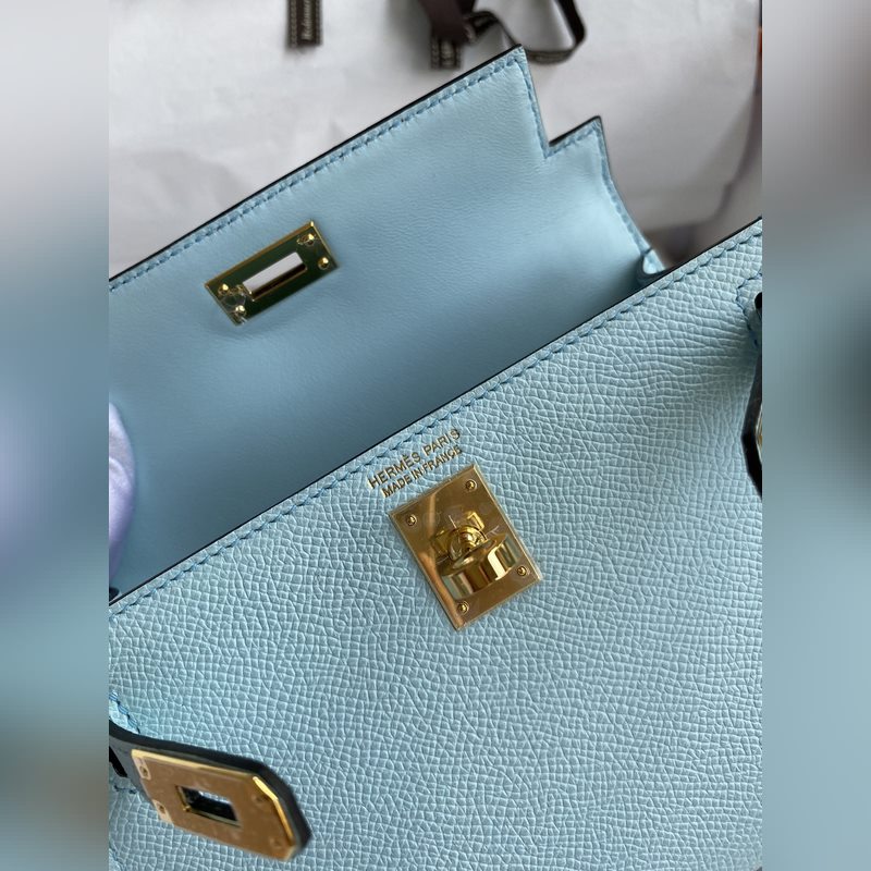 미니 켈리 19cm 2세대 수입 에프솜 가죽 라이트 브리즈 블루 골드 버클