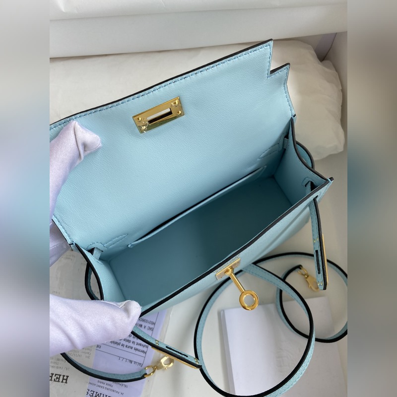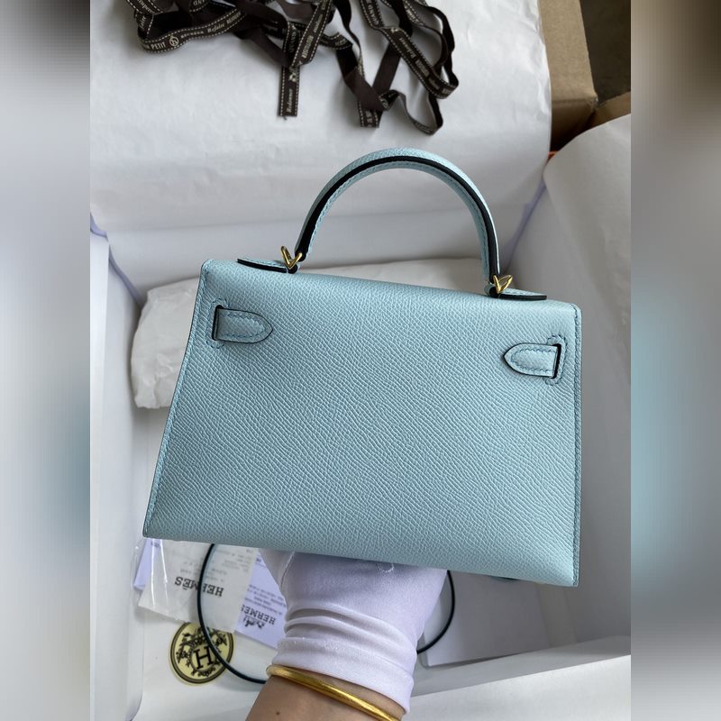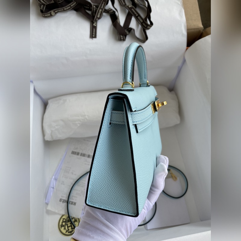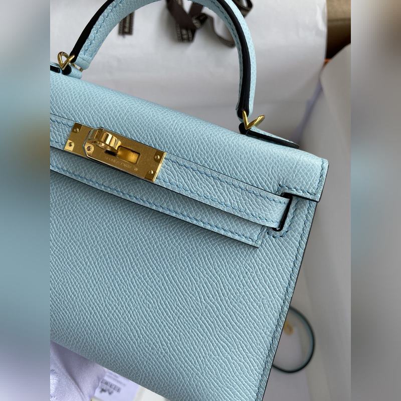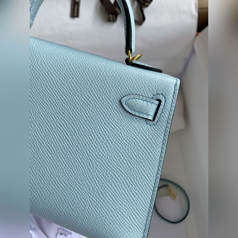 미니 켈리 19cm 2세대 수입 에프솜 가죽 라이트 브리즈 블루