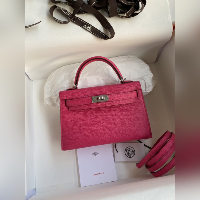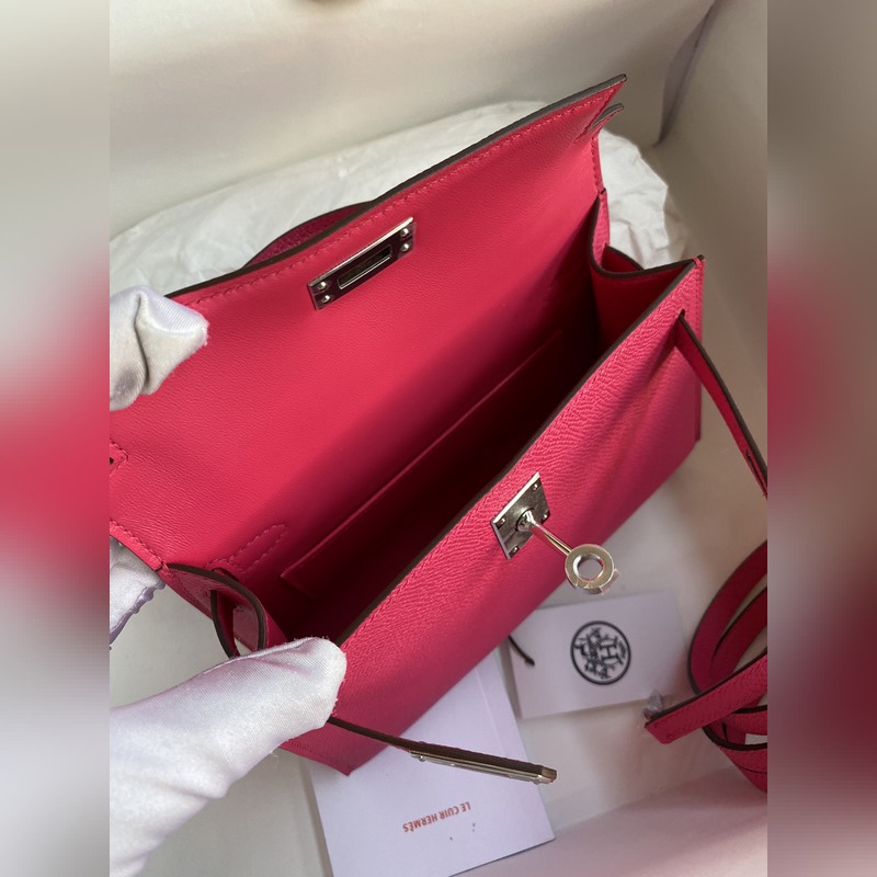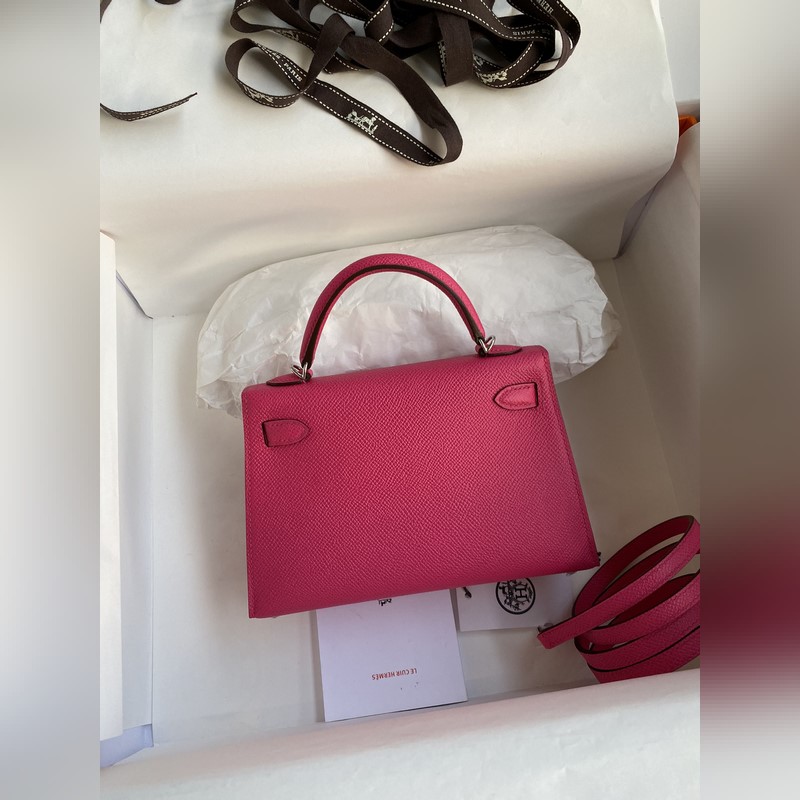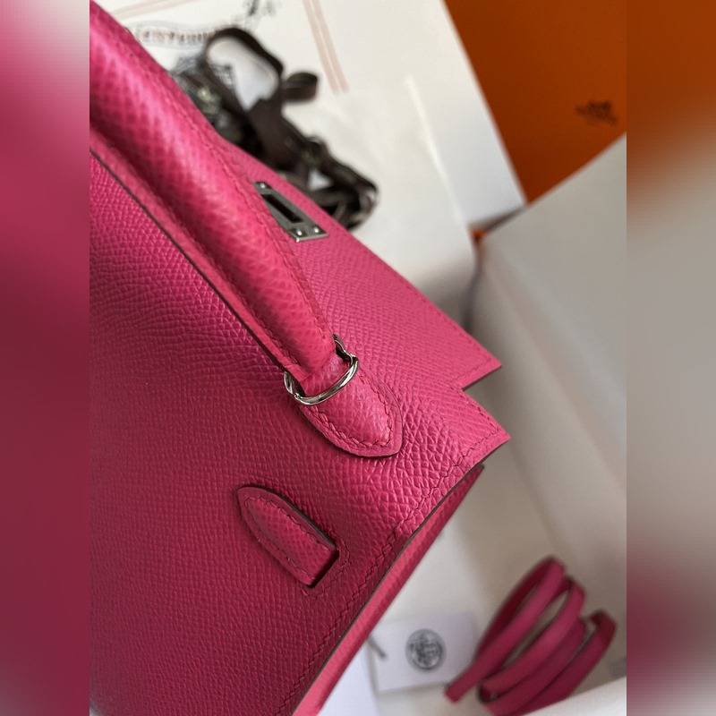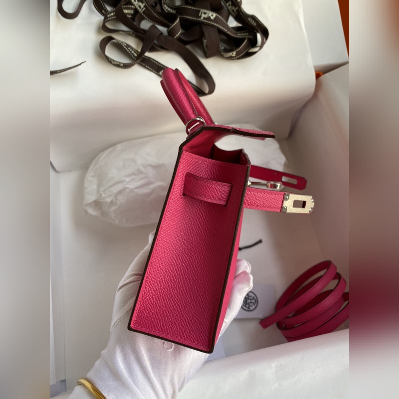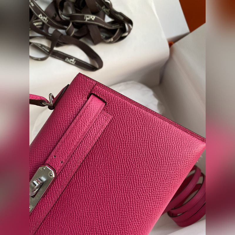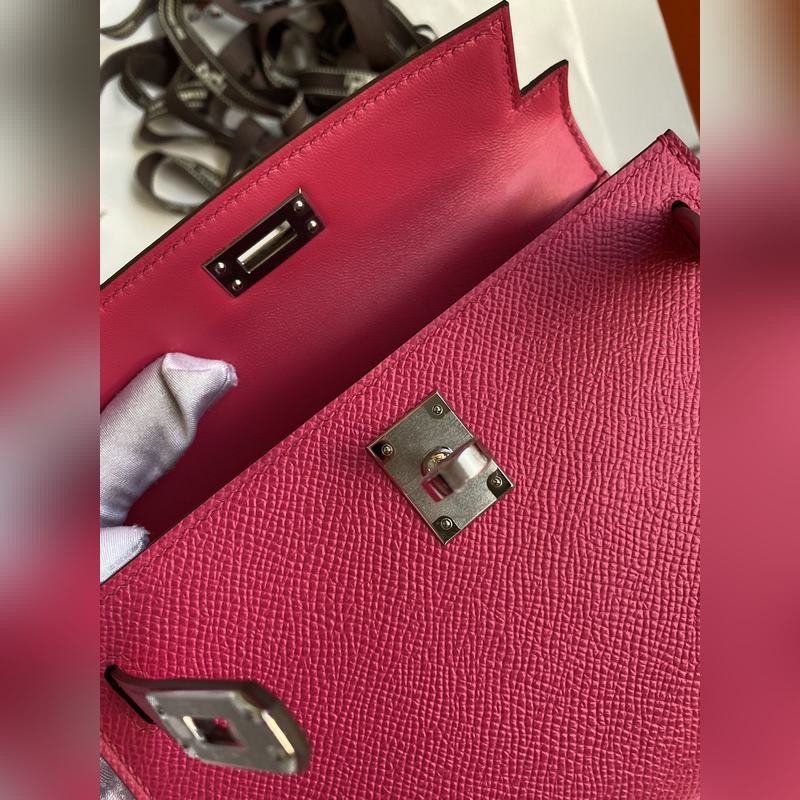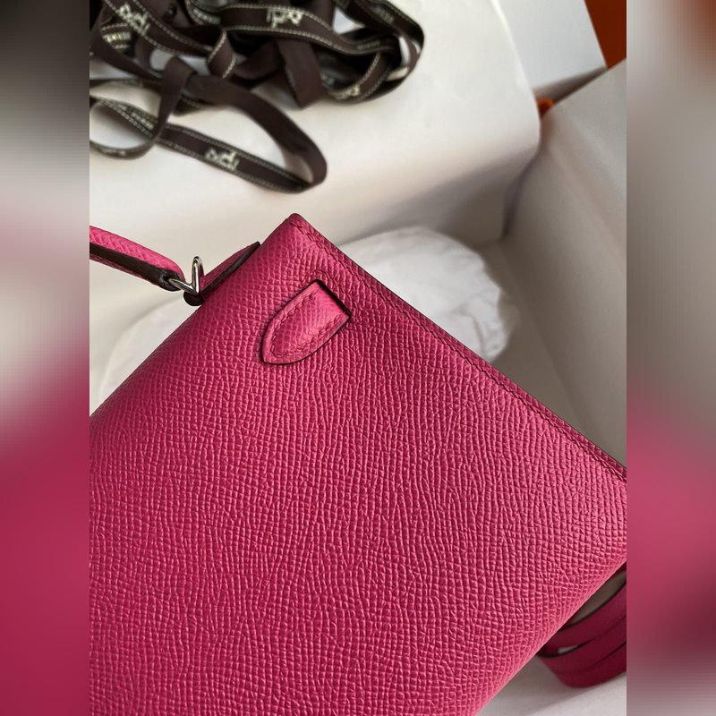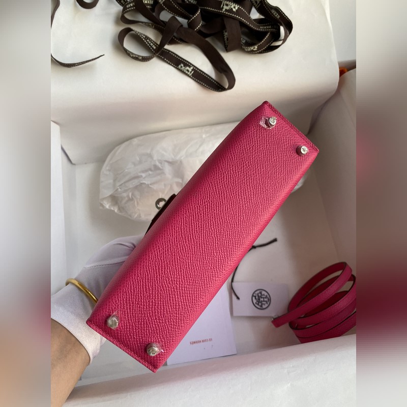 재고: 미니 켈리 2세대 19cm 수입 에프솜 가죽 로즈 레드 실버