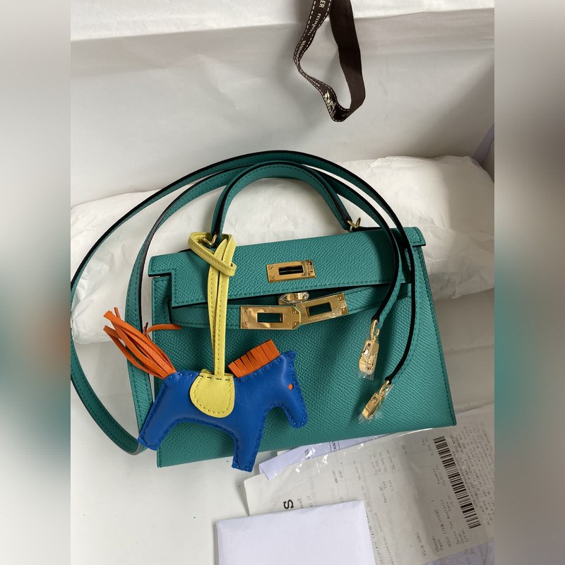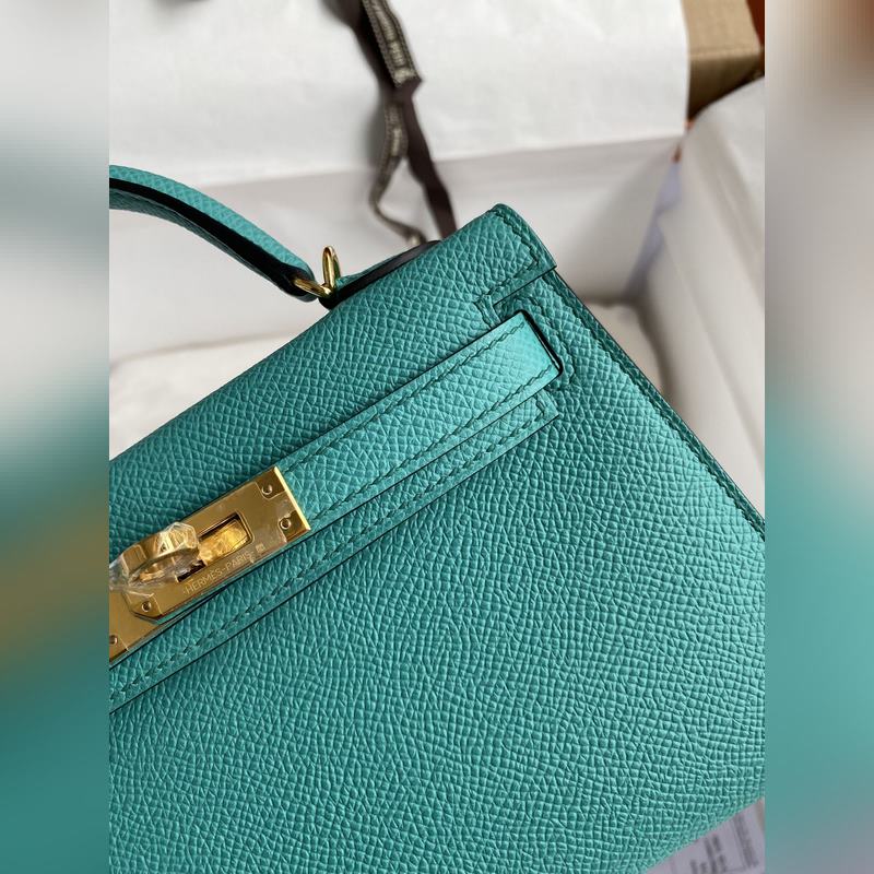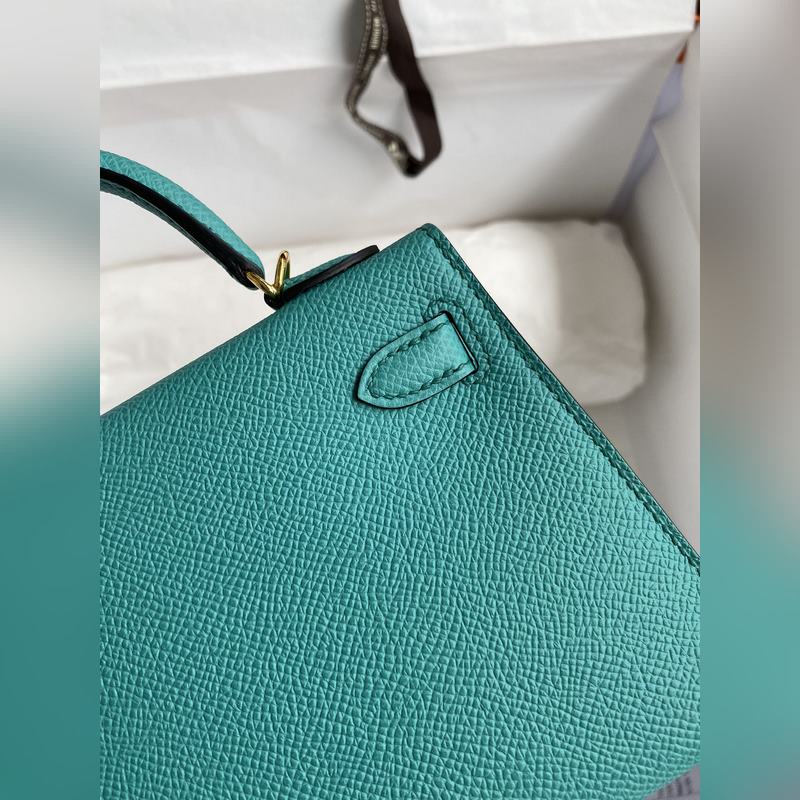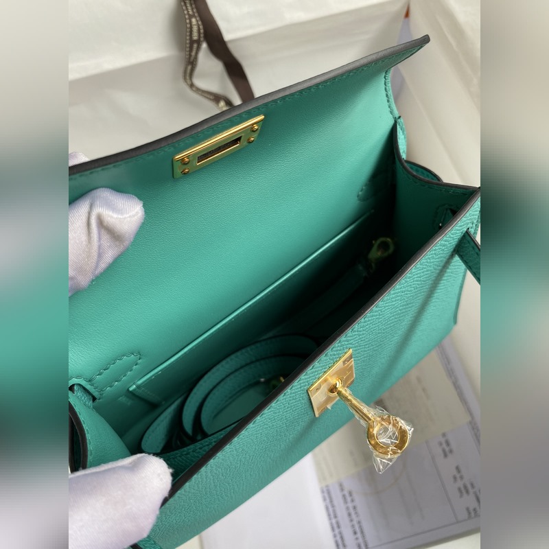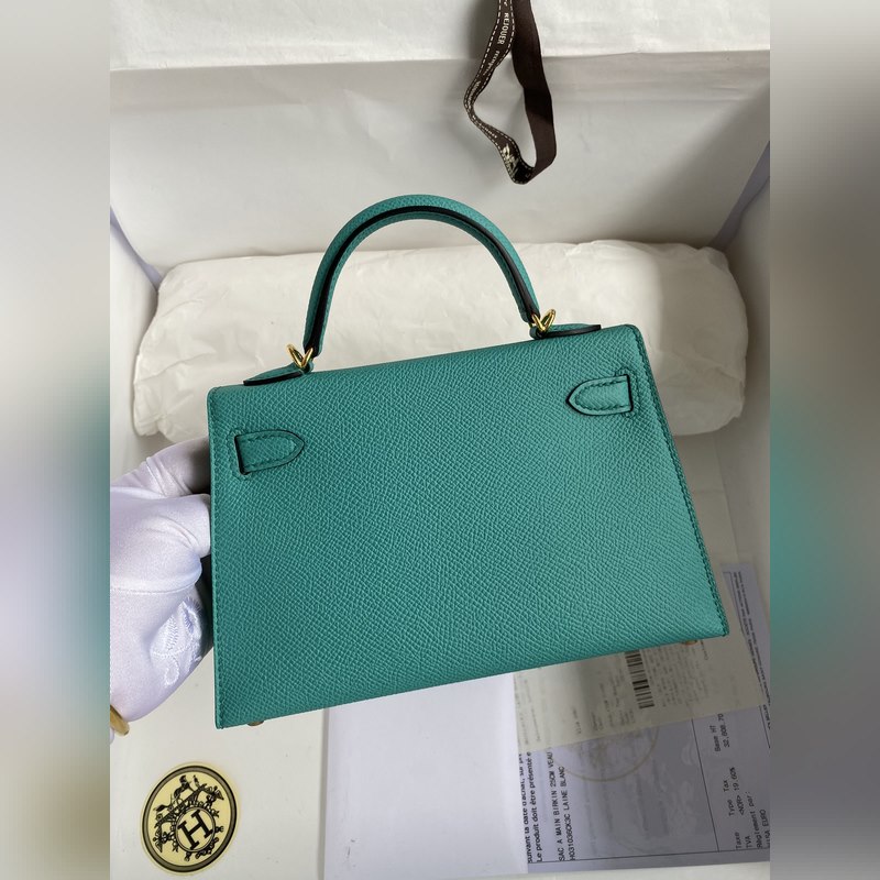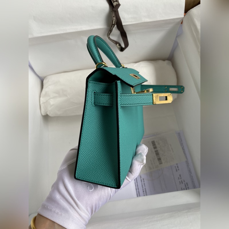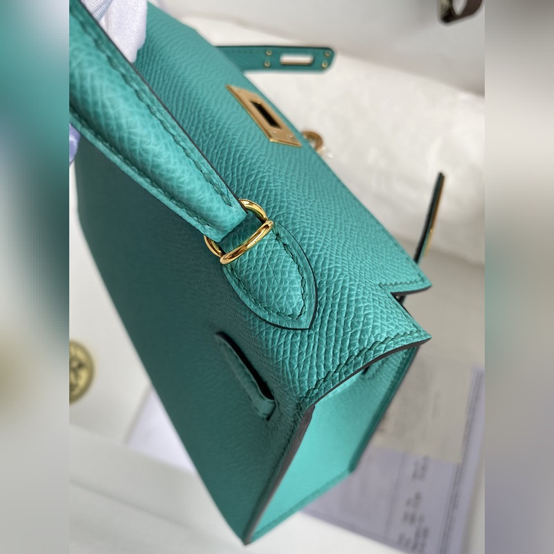 미니 켈리 19cm 2세대 수입 에프솜 가죽 베로나 그린 금색 단추
