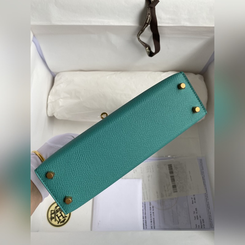 미니 켈리 19cm 2세대 수입 에프솜 가죽 베로나 그린 금색 단