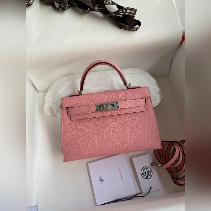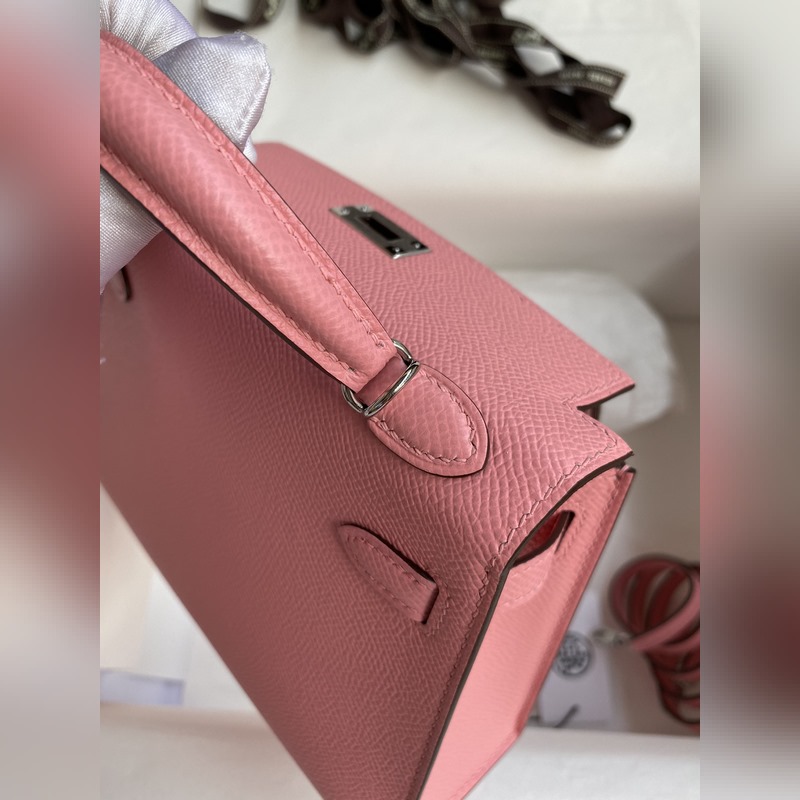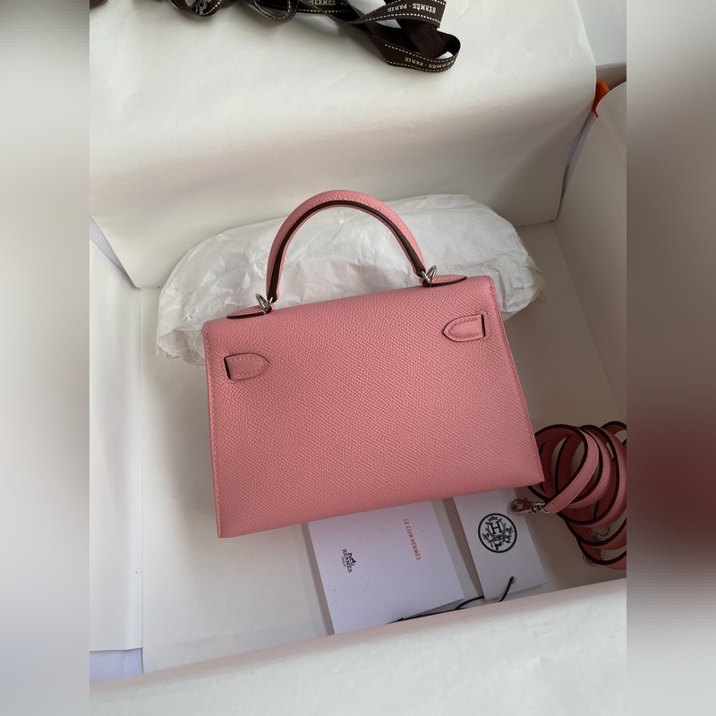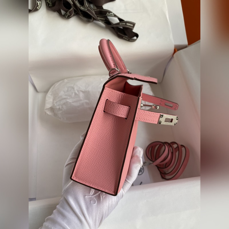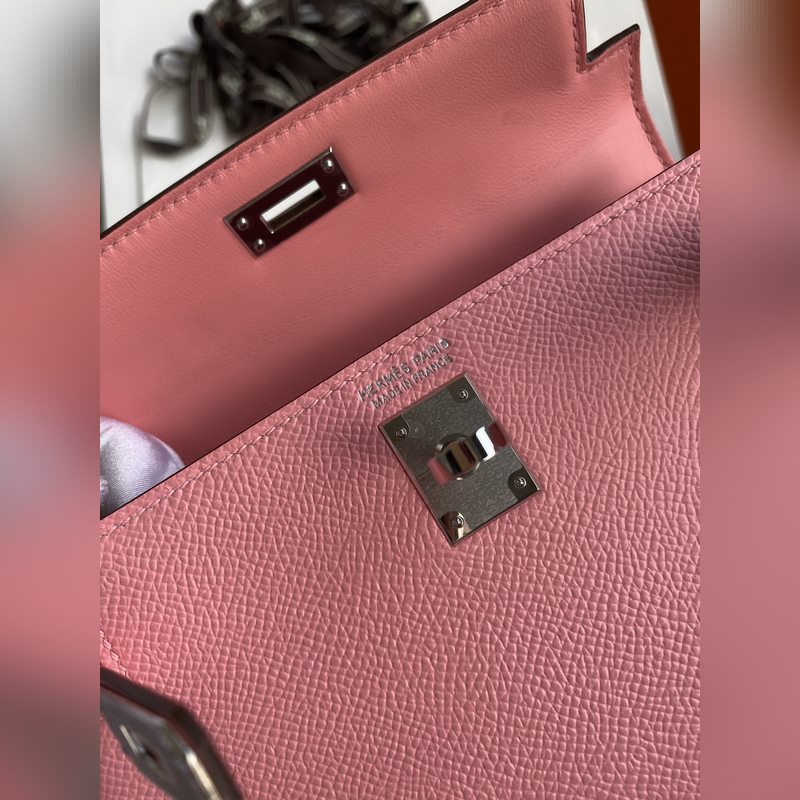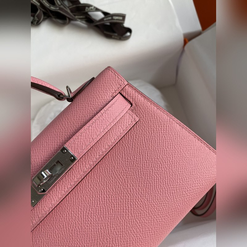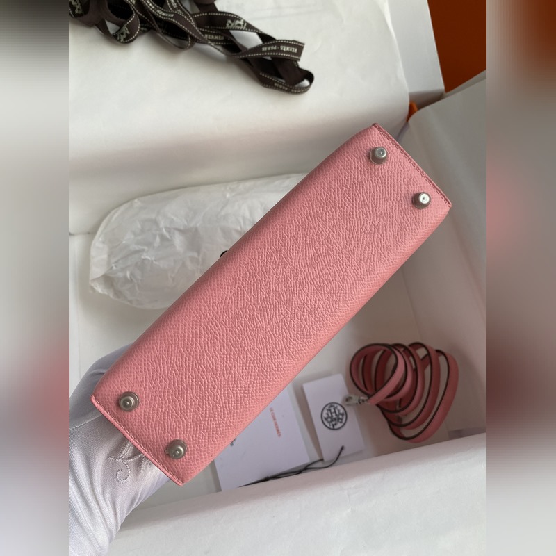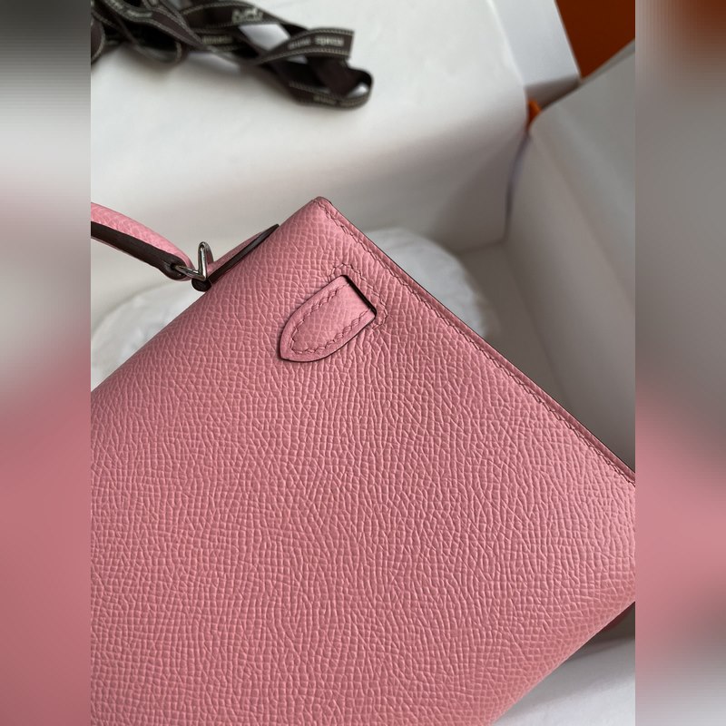 미니 켈리 19cm 2세대 수입 에프솜 가죽 밀크쉐이크 파우더 은색 버클