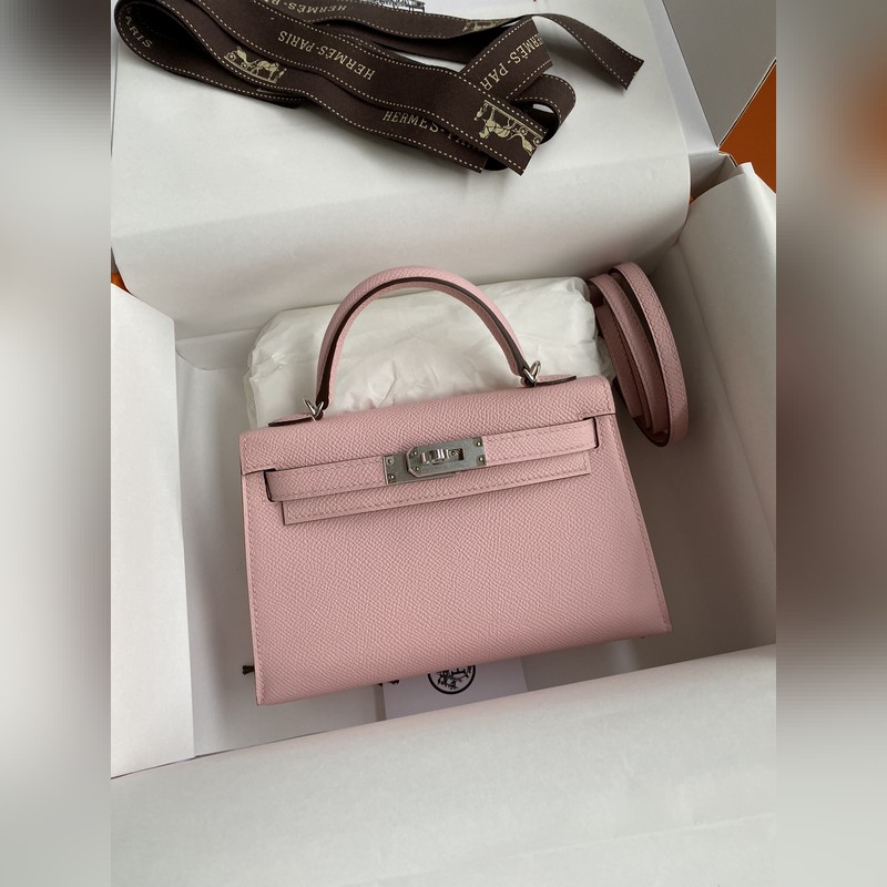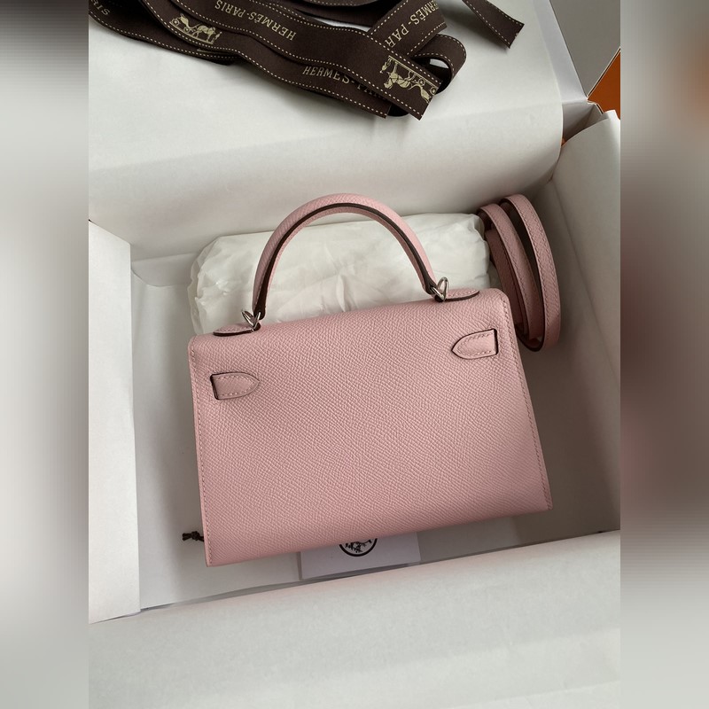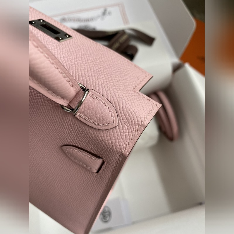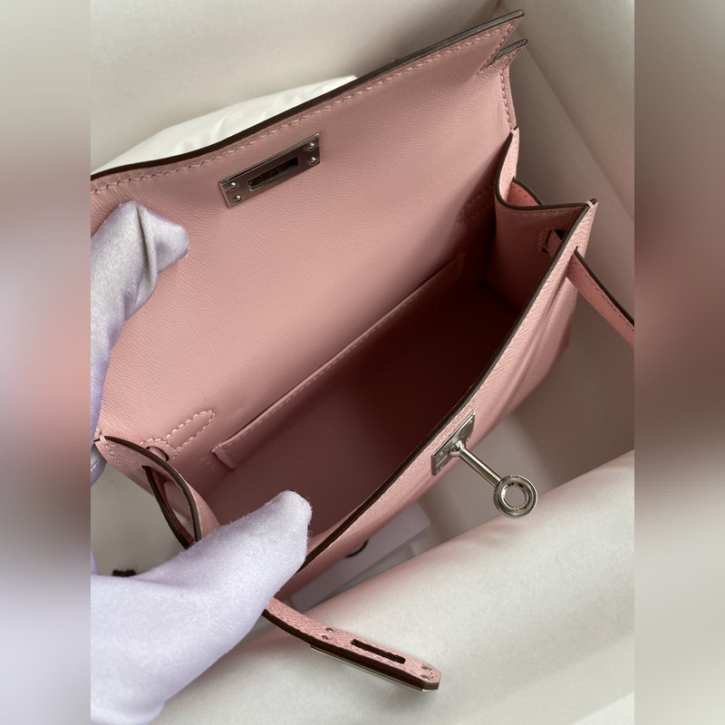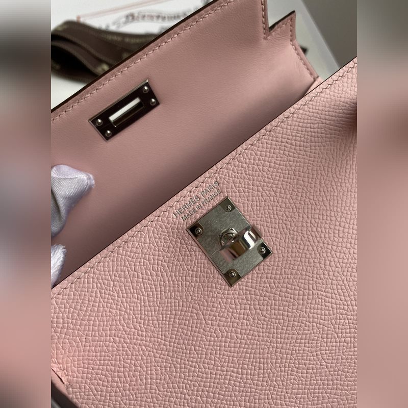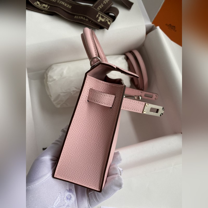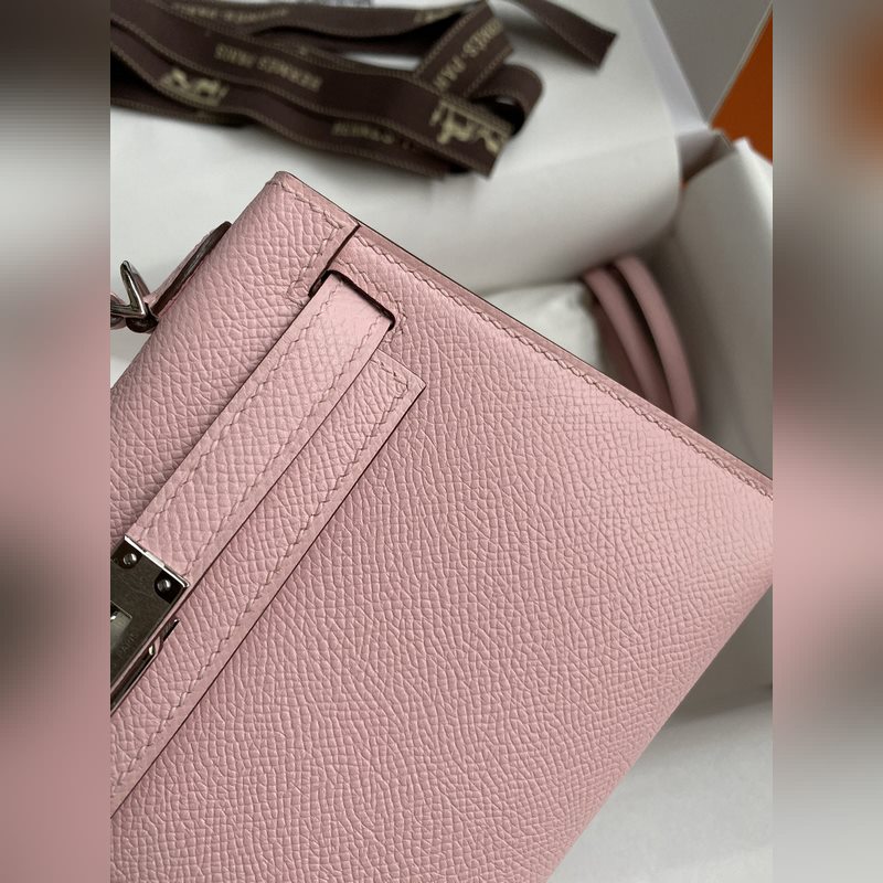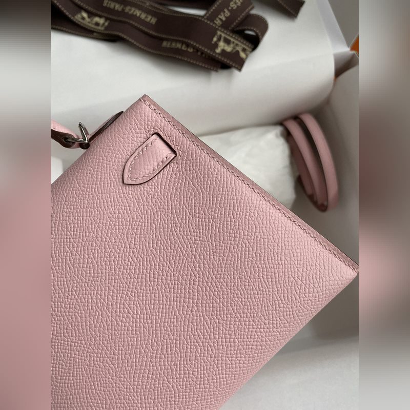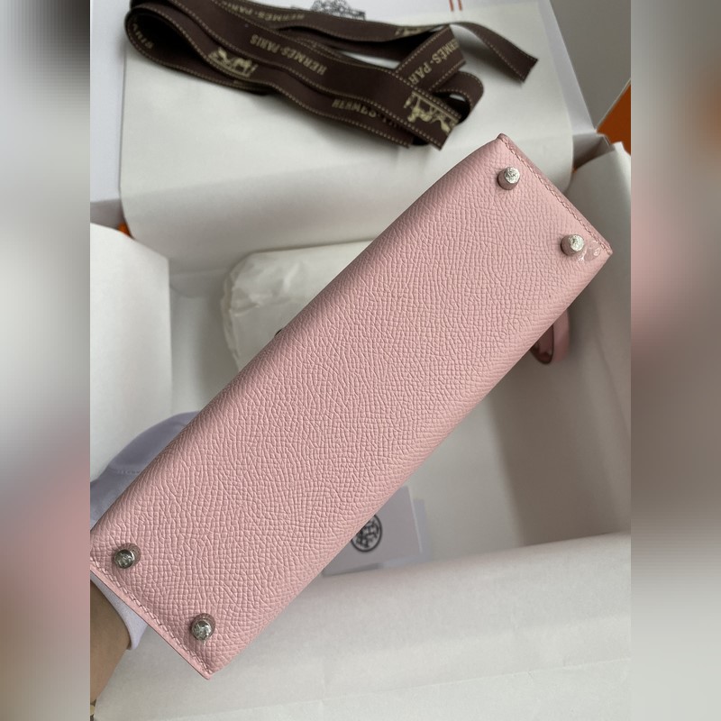 미니 켈리 2세대 19cm 수입 에프솜 가죽 3Q 핑크 은색 버클