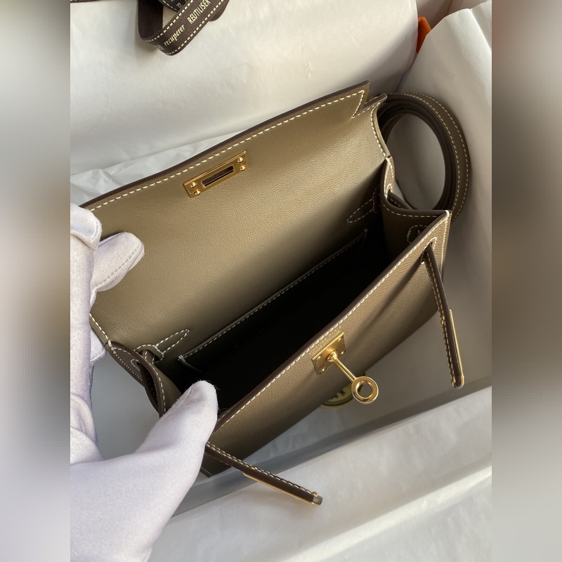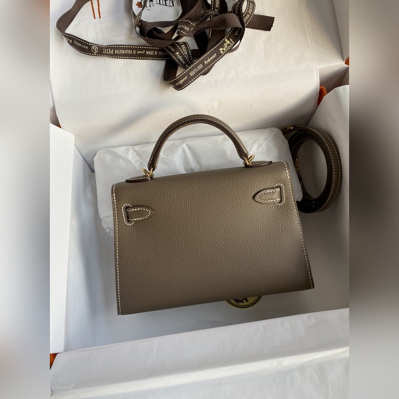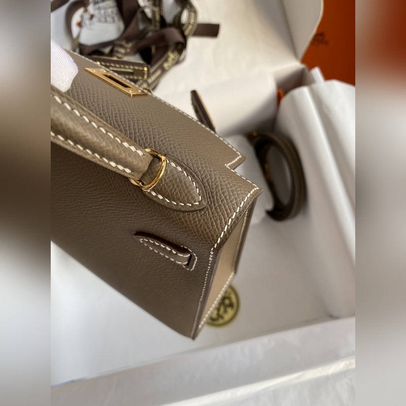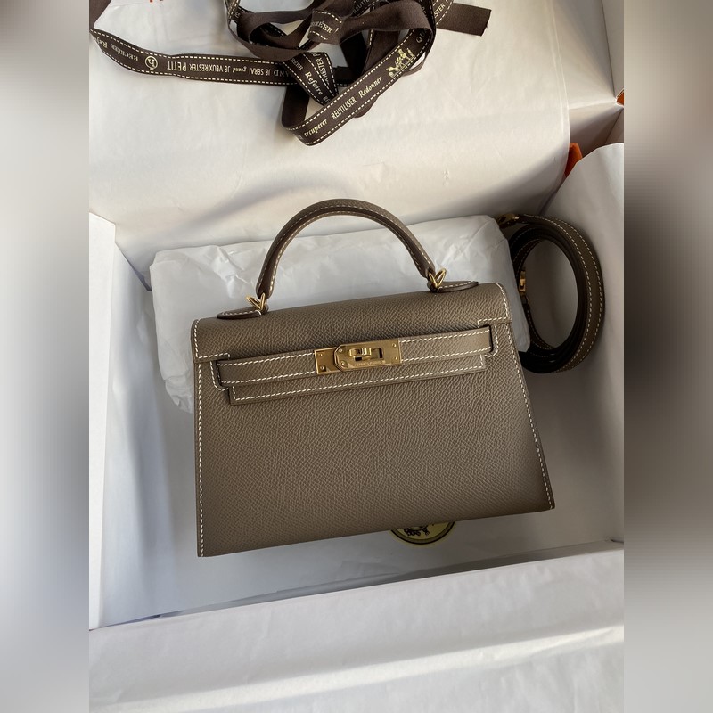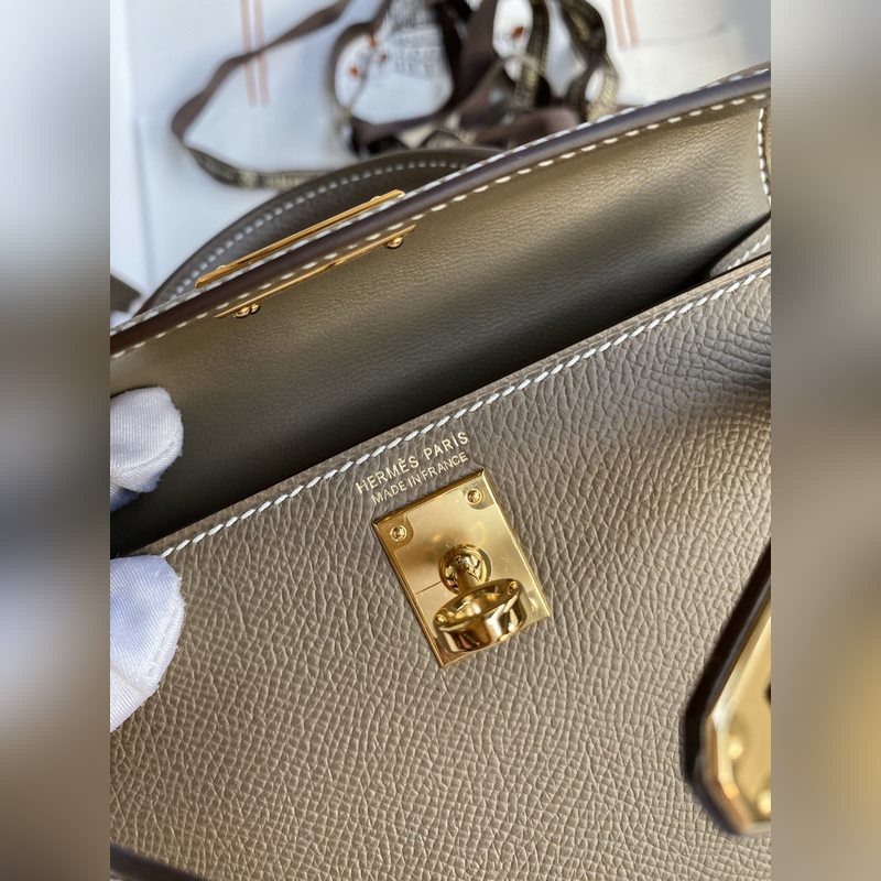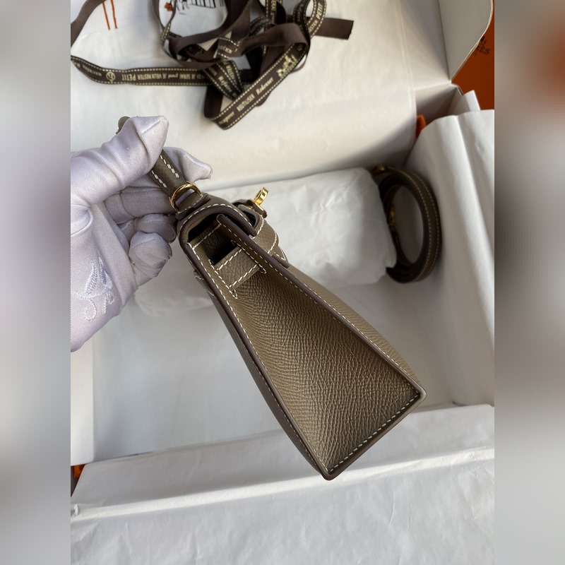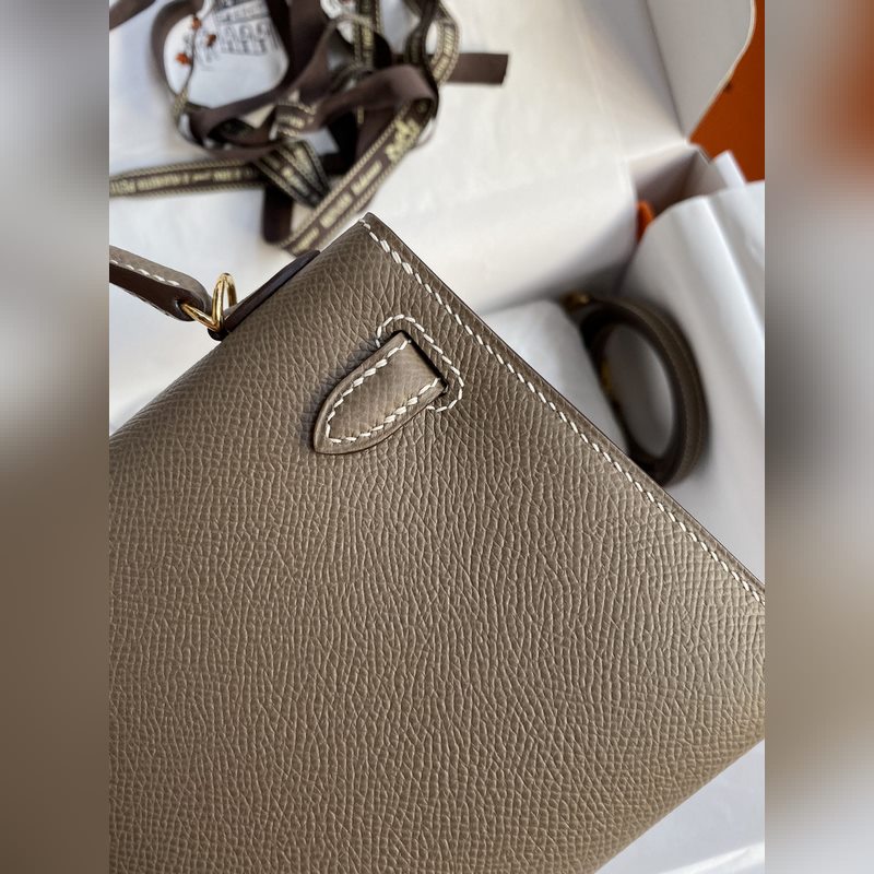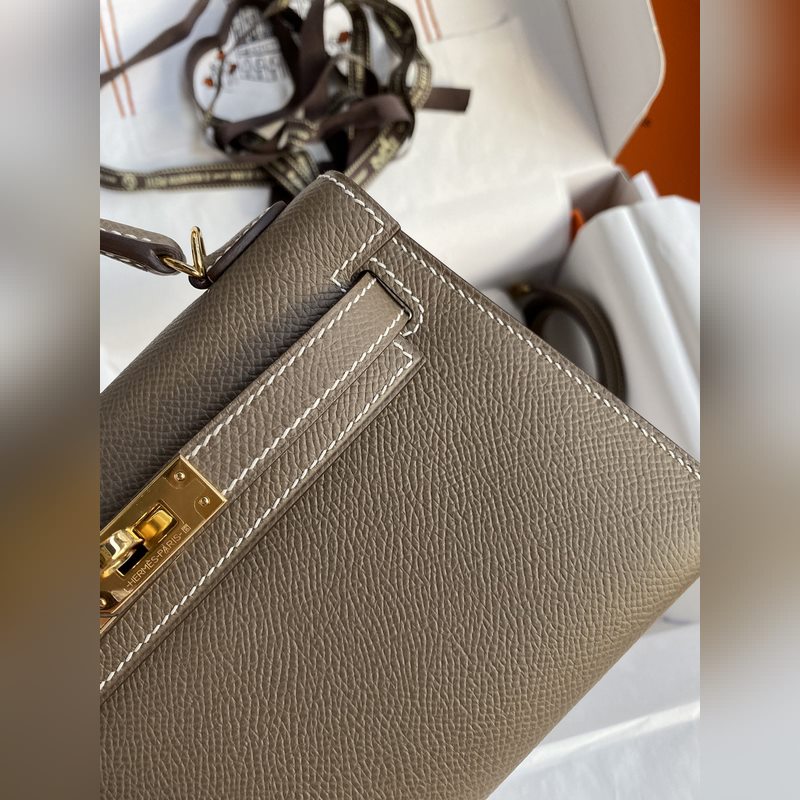 미니 켈리 19cm 2세대 수입 에프솜 가죽 코끼리 회색 금색 버클