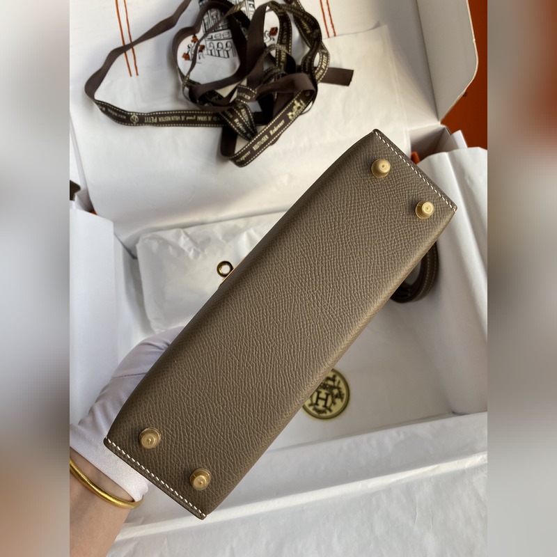 미니 켈리 19cm 2세대 수입 에프솜 가죽 코끼리 회색 금색 버