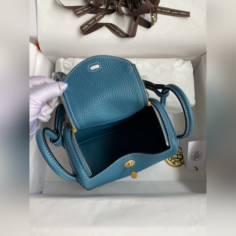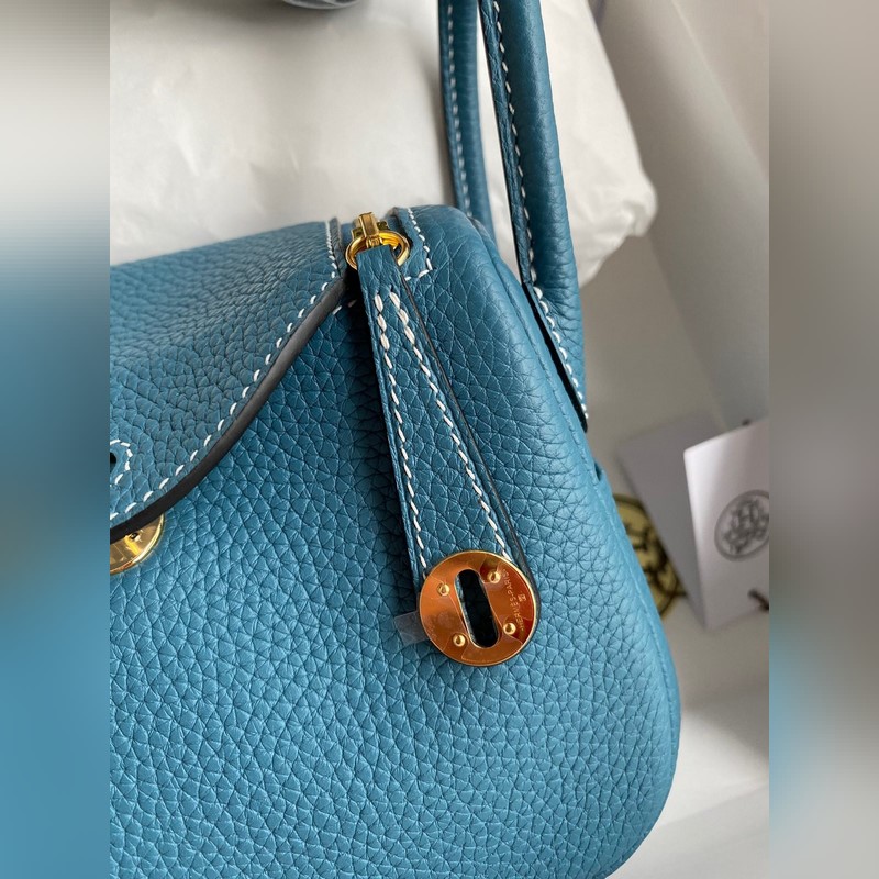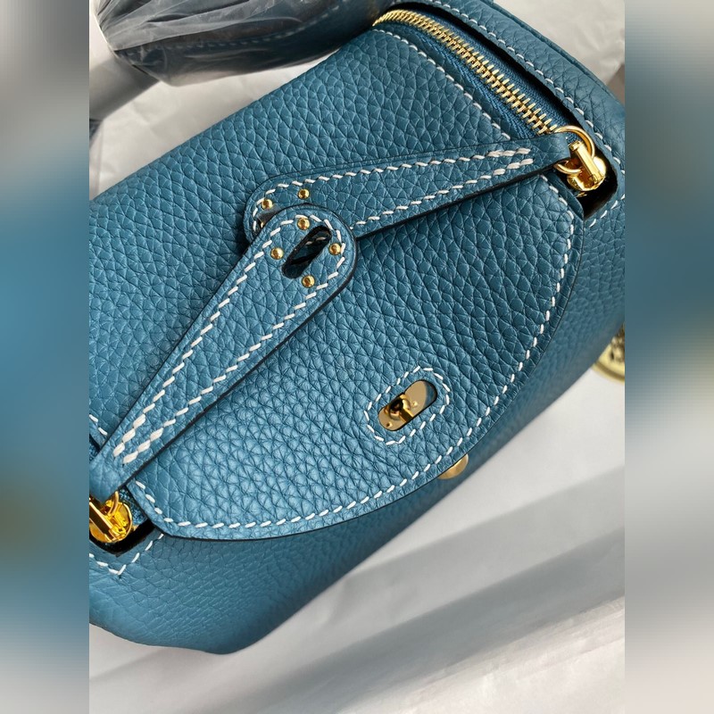 미니 린디 19cm 원산지 수입 tc 가죽 [데님 블루] 금 버클 손으로 왁스칠한 실 바느질 재고 있음