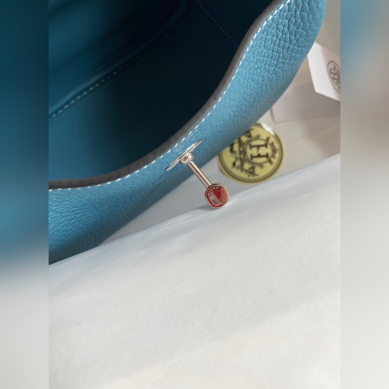 미니 린디 19cm 원산지 수입 tc 가죽 [데님 블루] 은장식 버클 동기화 밀랍 실로 수작업으로 꿰매기 재고 있음