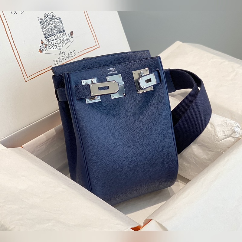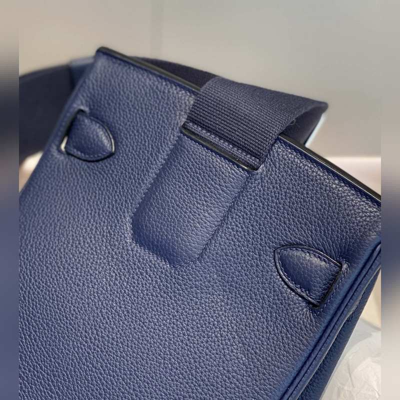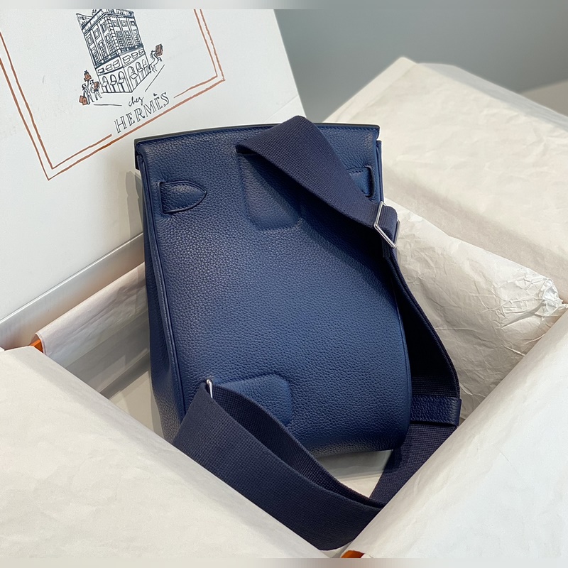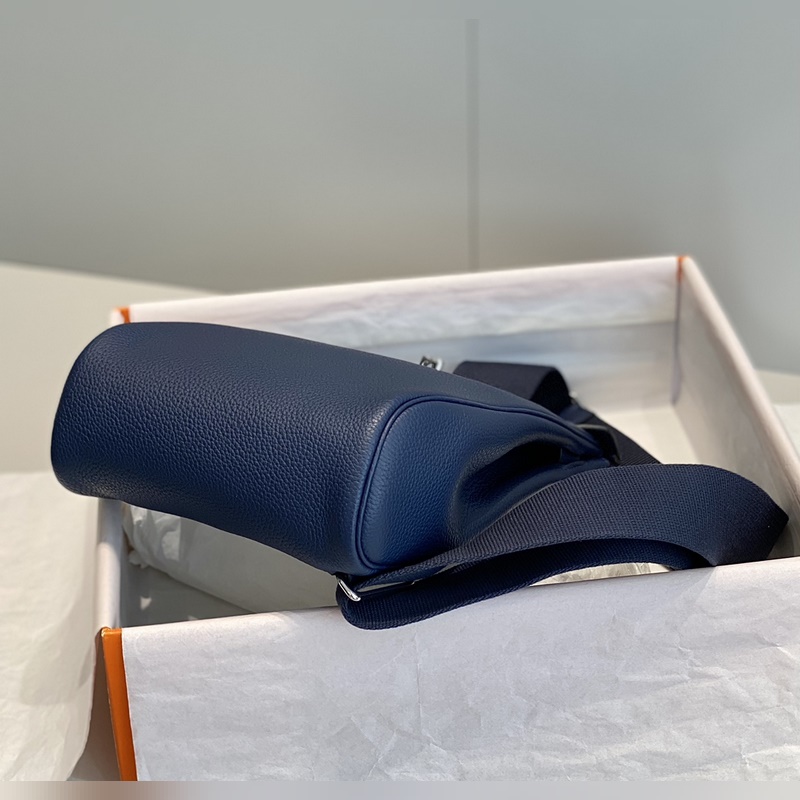 새로운 모델 온라인| 깊고 푸른색 은색 버튼 수입품 토고 강철 하드웨어 수제 밀랍 실 바느질 크로스 바디 한쪽 어깨에 걸칠 수 있는 남성에게는 남성답고 여성에게는 멋스럽고 다루기 쉽습니다. 반 수제 재고: 18x26x8