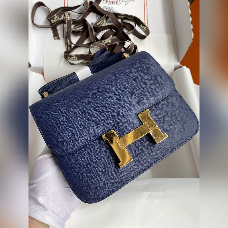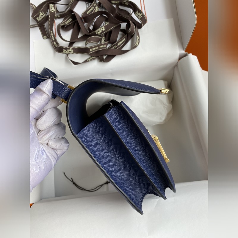 강강 트럼펫 19cm 수입 에프솜 가죽 다크 블루 골드 버클