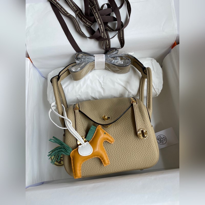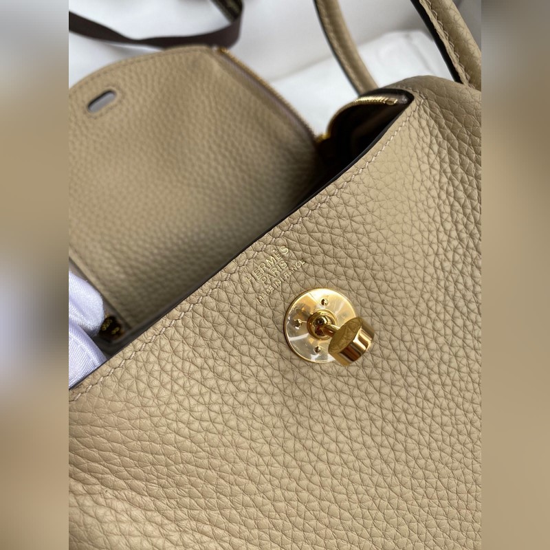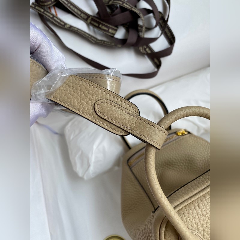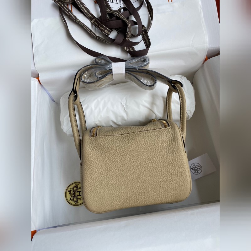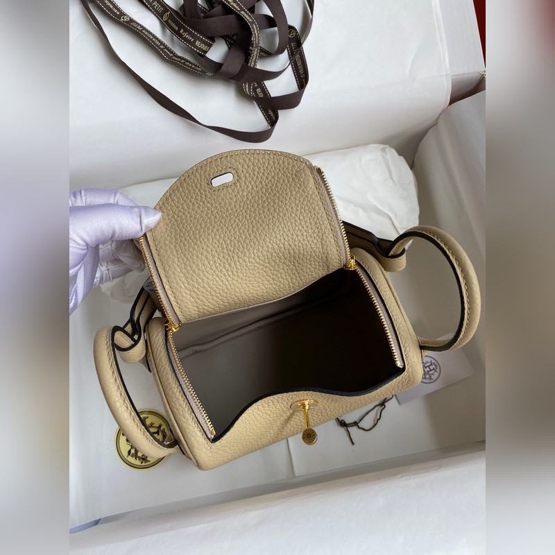 미니 린디 19cm 원산지 수입 tc 가죽 [트렌치 그레이] 골드 버튼