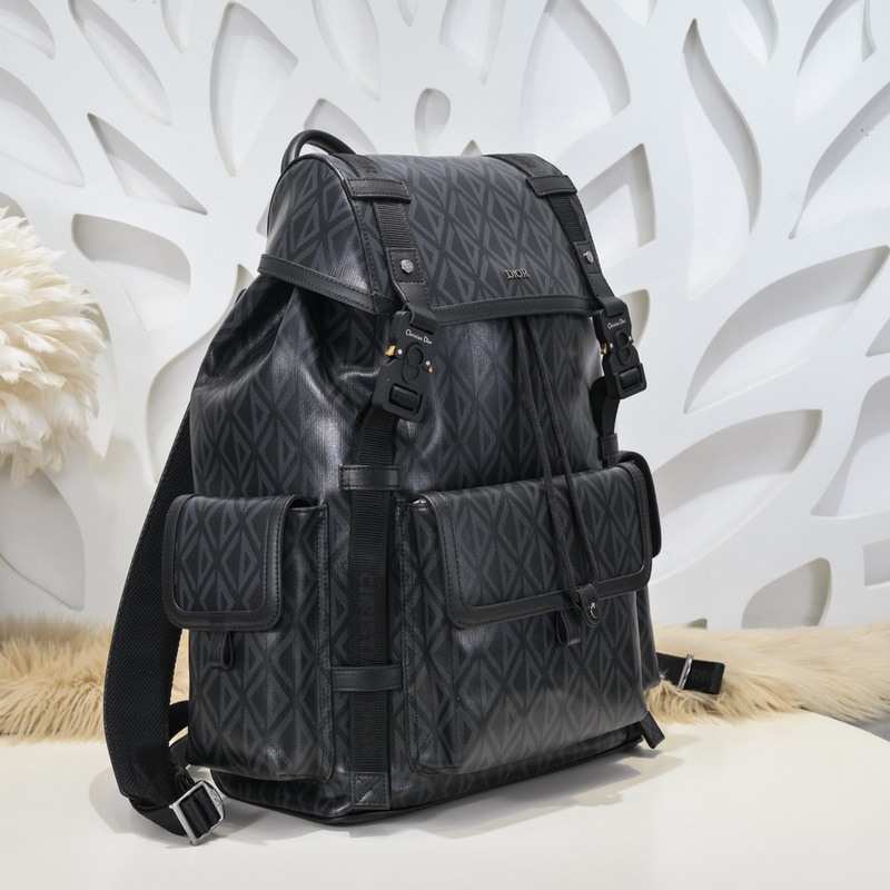 이 Dior Hit the Road 백팩은 이번 시즌에 새롭게 선보이는 스타일로 모던한 스타일과 디올의 오뜨 꾸뛰르 정신을 결합한 제품입니다. 이 제품은 디올의 블랙 CD 다이아몬드 패턴 캔버스로 만들어졌으며 두 개의 CHRISTIAN DIO 로고 나일론 자카드 스트랩이 달려 있습니다. 이 제품은 넉넉한 메인 수납공간과 큰 앞쪽 플랩 포켓 그리고 양쪽에 두 개의 플랩 포켓이 있습니다. 촉감이 좋고 내부 공간이 넓으며 참신한 스타일과 독특한 매력이 있습니다. 다용도로 사용할 수 있고 캐주얼하고 실용적이며 외출할 때 멋지게 보입니다. 크기 : 43.51.20cm