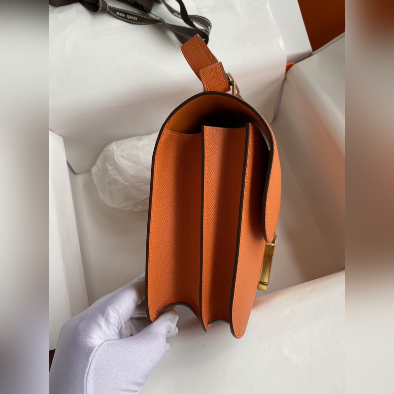 강강 대형 24cm 수입 에프솜 가죽 오렌지 골드 버튼