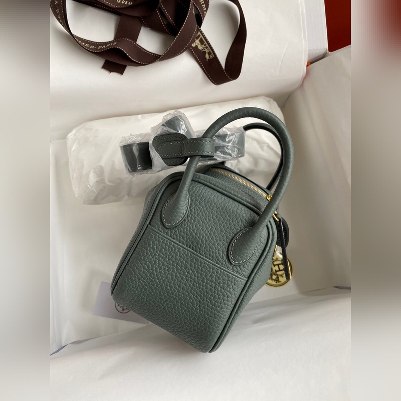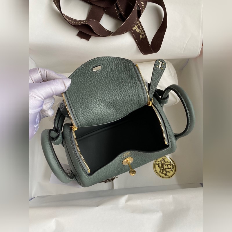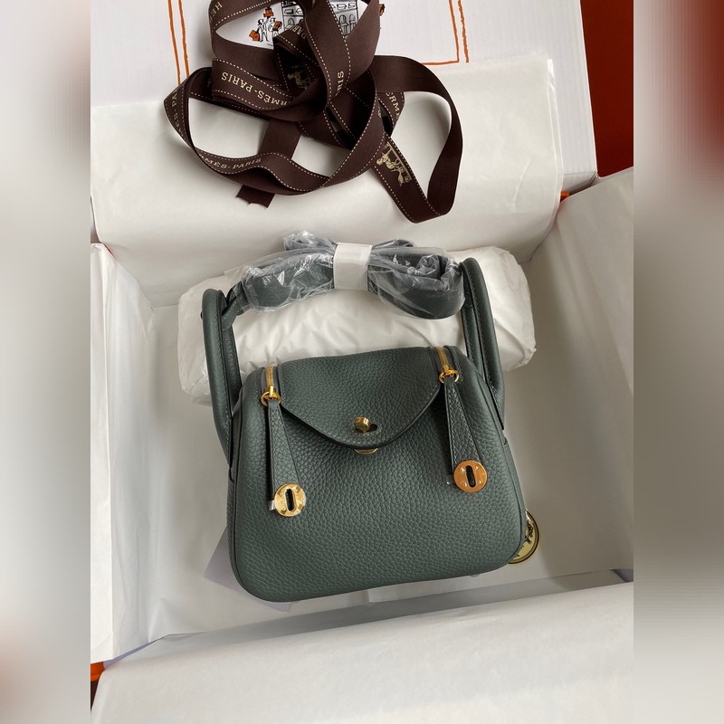 미니 린디 19cm 원산지 수입 tc 가죽 [아몬드 그린] 금 버클 손으로 왁스칠한 실 바느질 재고 있음