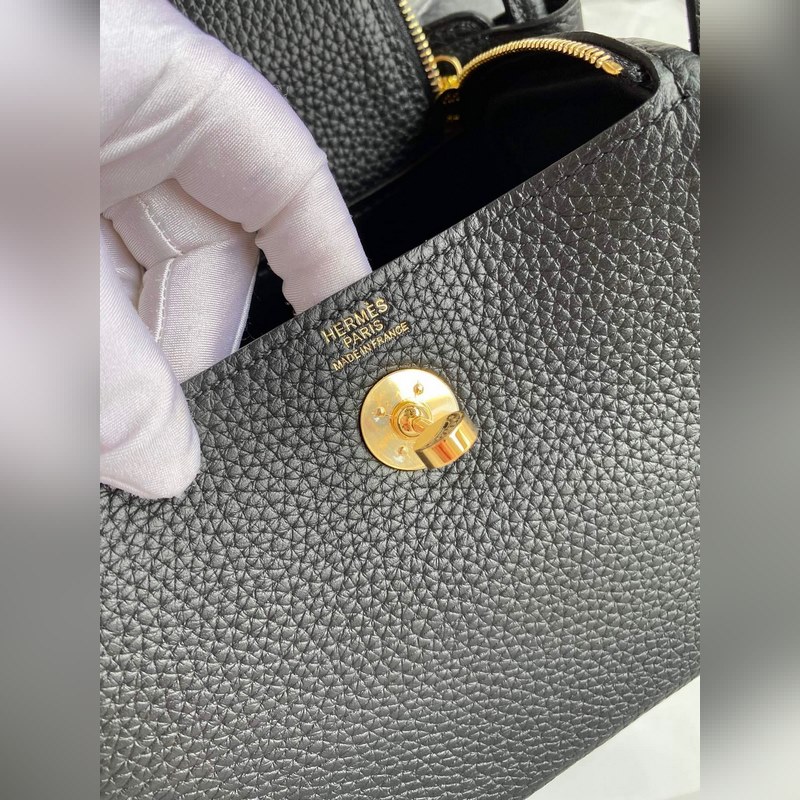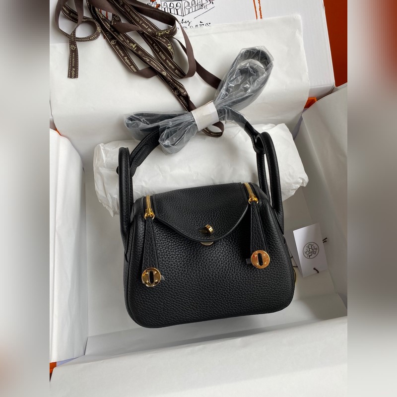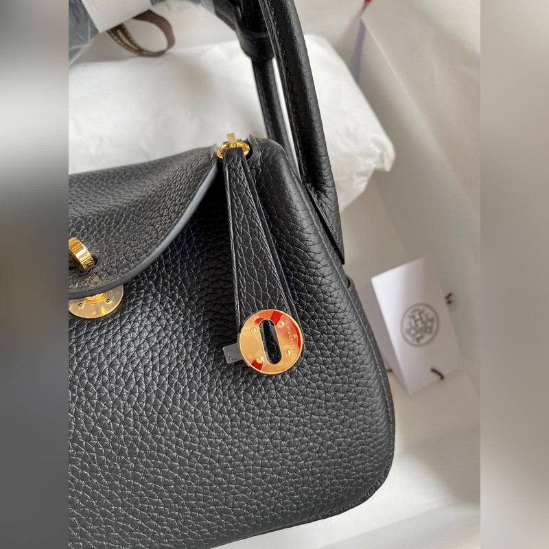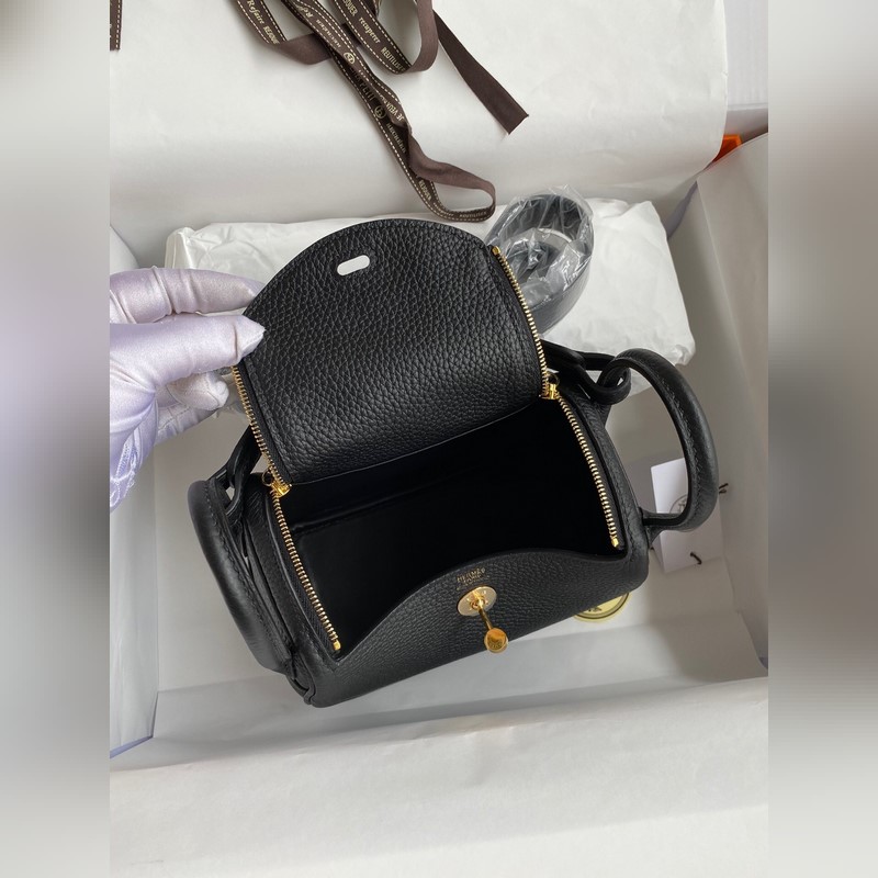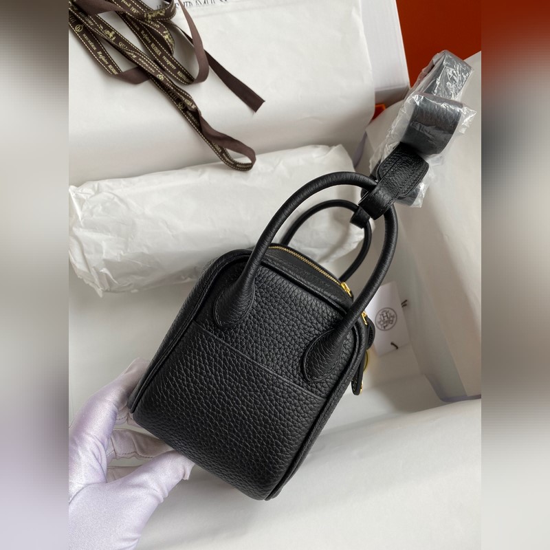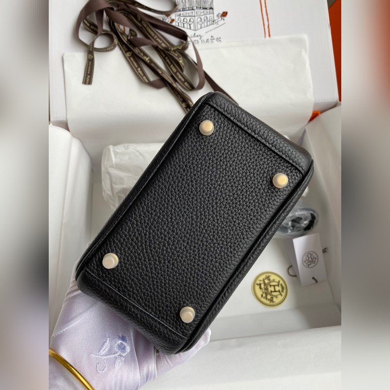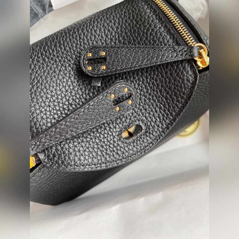 미니 린디 19cm 원산지 수입 tc 가죽【검정색】금색 단추 손으로 왁스칠한 실 바느질 재고 있음