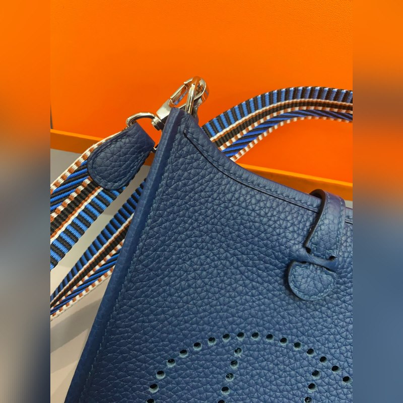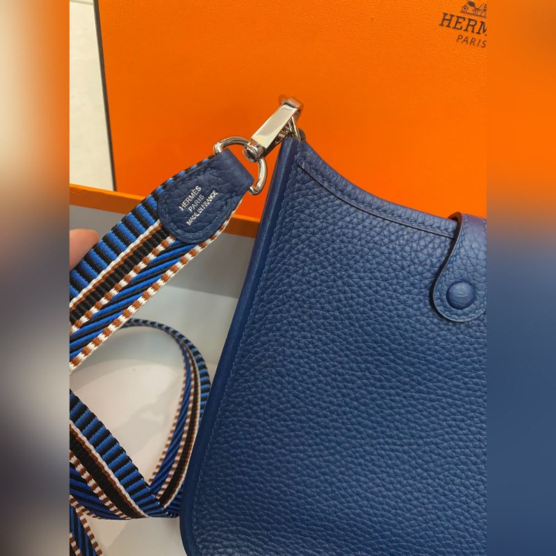 진짜 샷입니다. 에블린은 반 수제 밀랍 실로 꿰매어졌으며 17cm 길이의 작은 컬러 어깨 끈이 함께 제공됩니다.