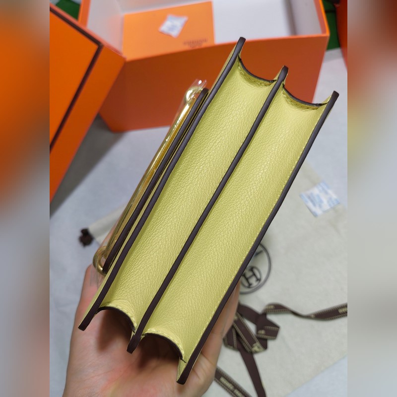 19cm 롤리스 에르메스 돼지코 가방 진품 에버컬러 가죽 옐로우 골드