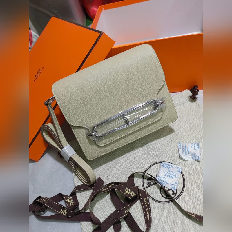 19cm 롤리스 에르메스 돼지 저금통 가방 진정한 에버컬러 가죽 밀크쉐이크 화이트 골드 실버 재고 있음!!!