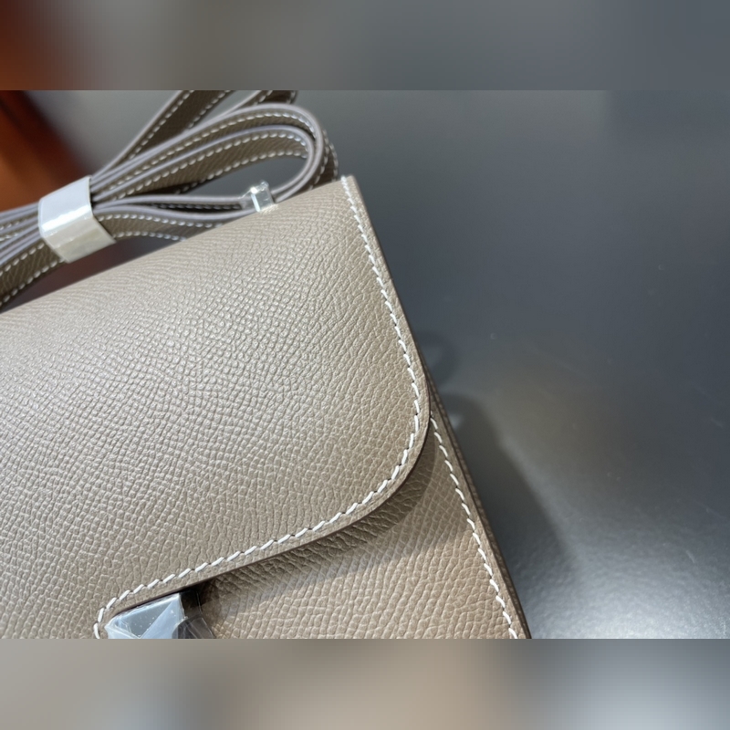 클래식 색상: 코끼리 회색 사이즈: 에르메스 스튜어디스 18cm 에피 무늬가 있는 수입 소가죽 밀랍 실로 반 수작업으로 꿰매기 강화 하드웨어 금과 은의 반점