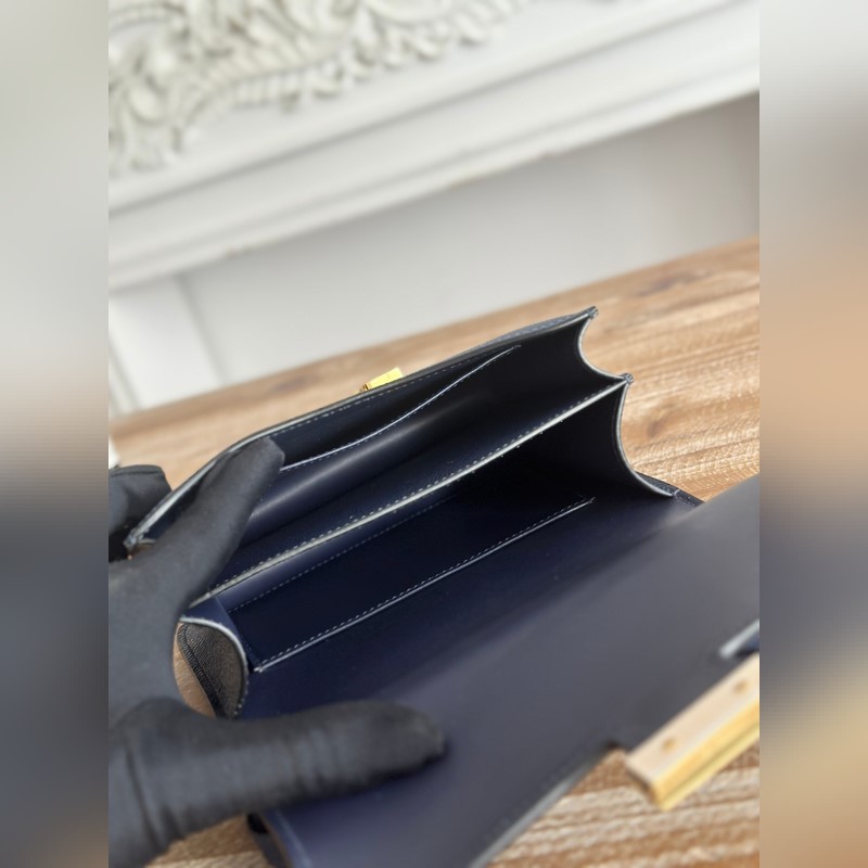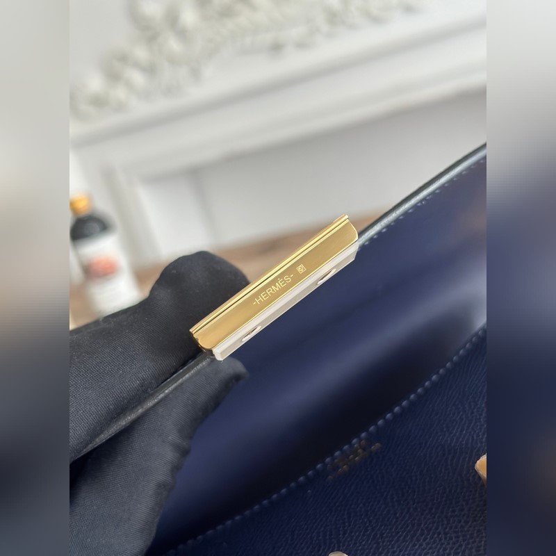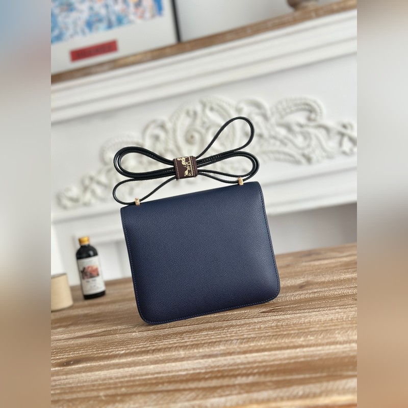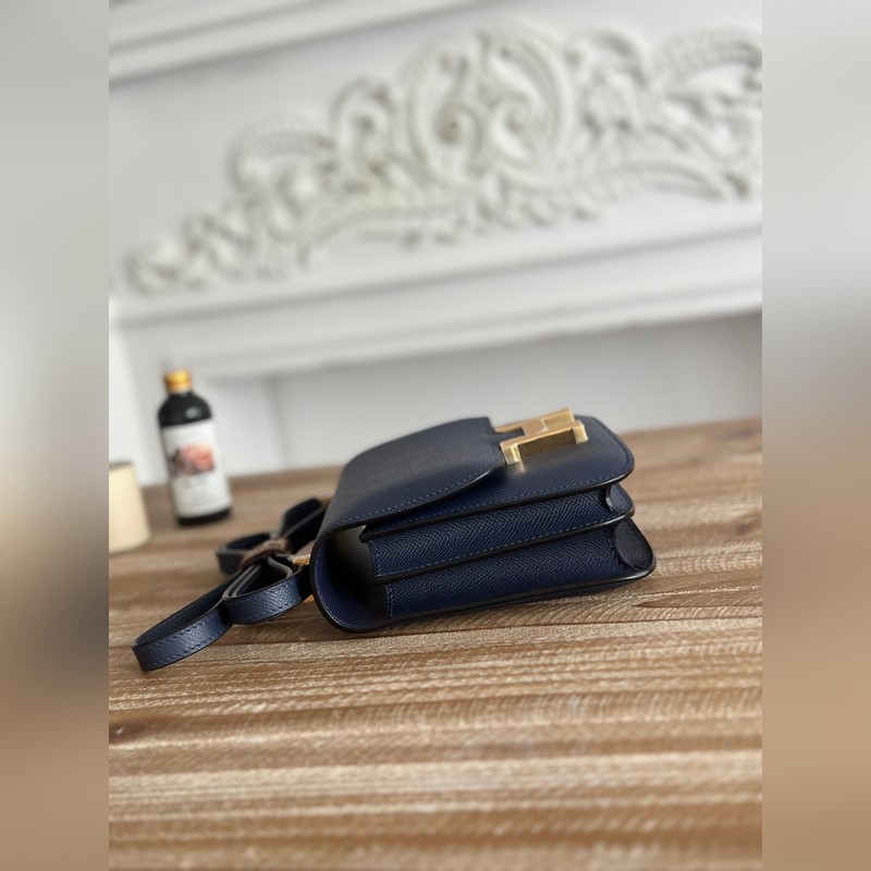 강강 스튜어디스 가방 색상: 사파이어 블루 콘스탄스 19cm 에프솜 팜 그레인 송아지 가죽 반제품 왁스 처리된 솔기