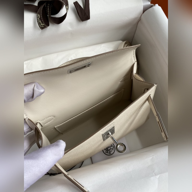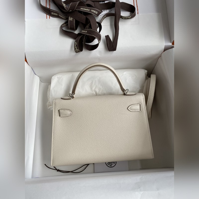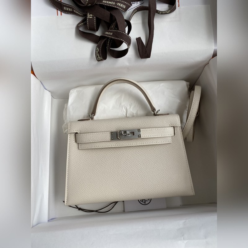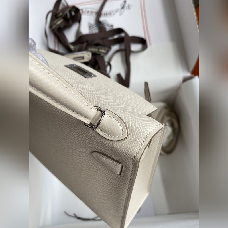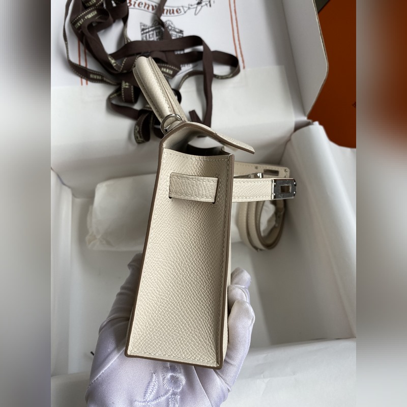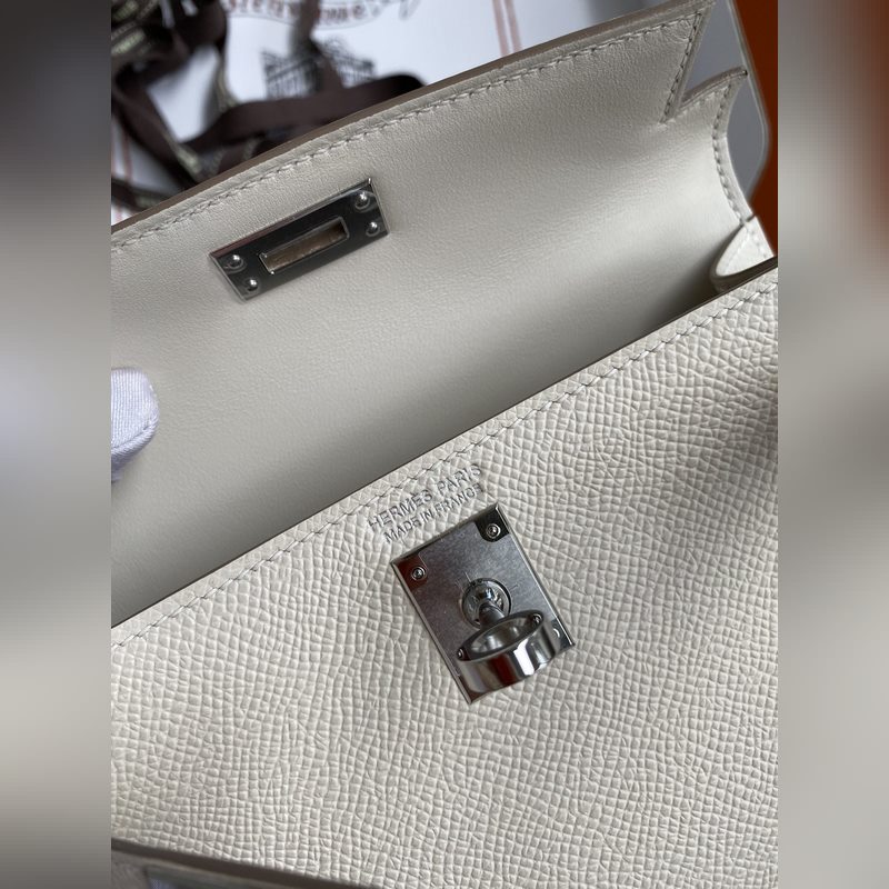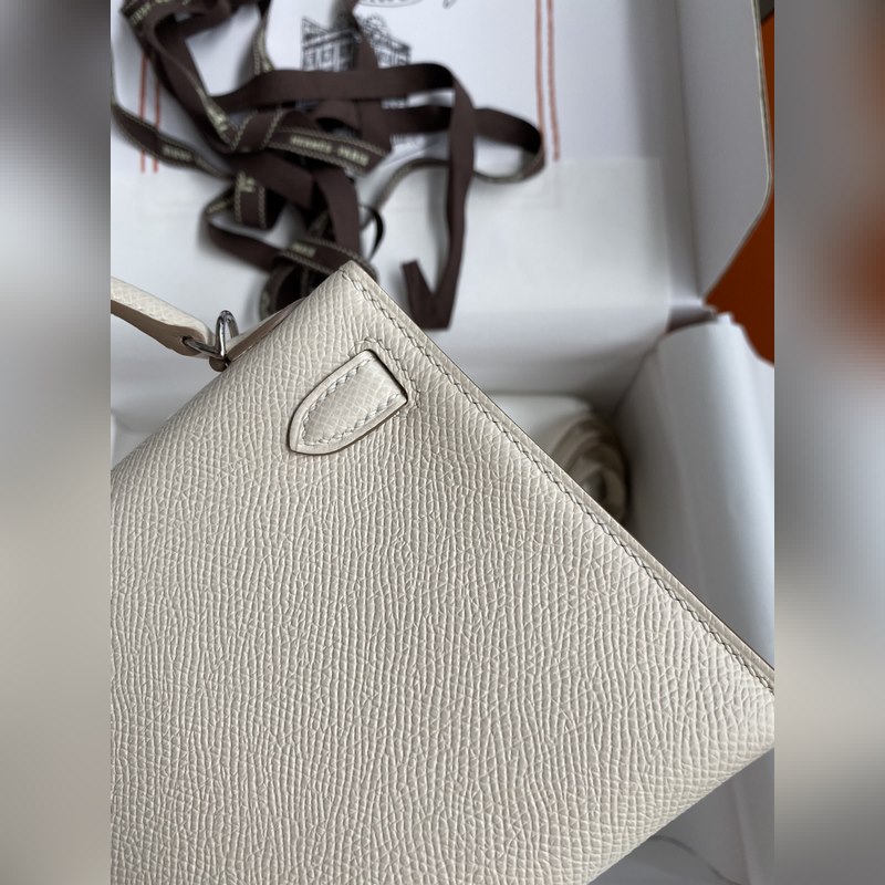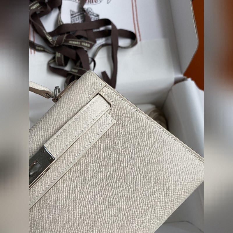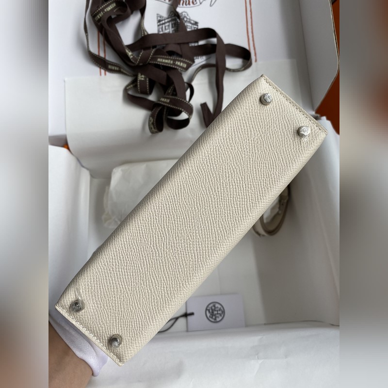 재고 있음: 수제 2세대 미니 켈리 19cm 수입 에프솜 가죽 밀크쉐이크 화이트 실버 버클