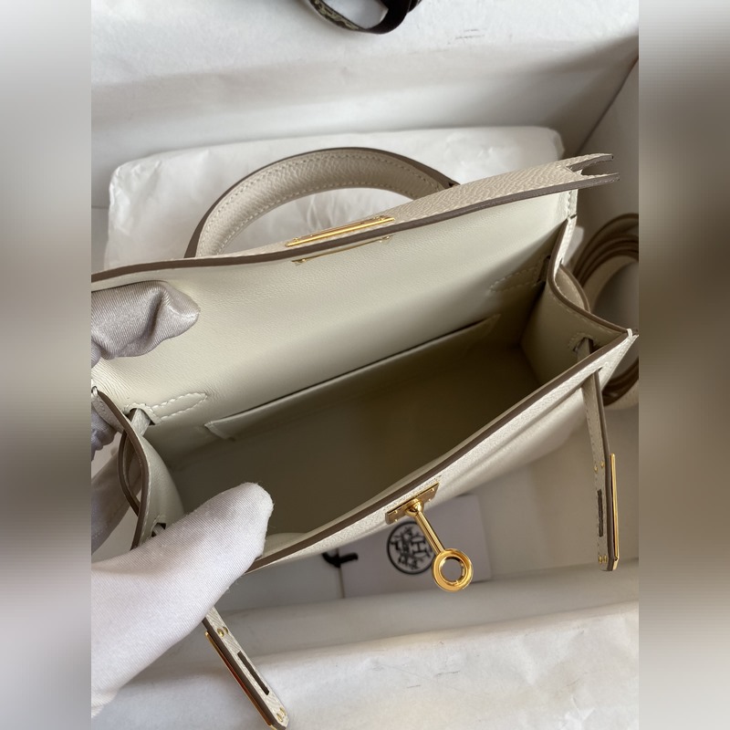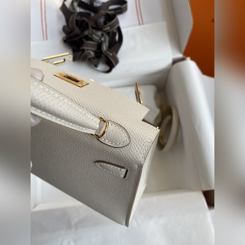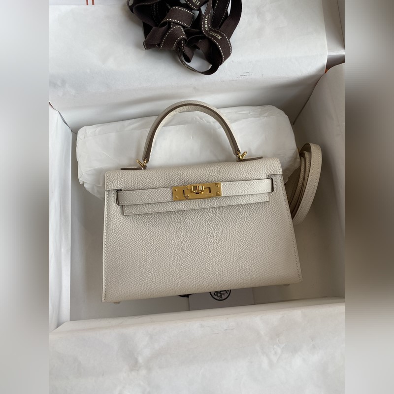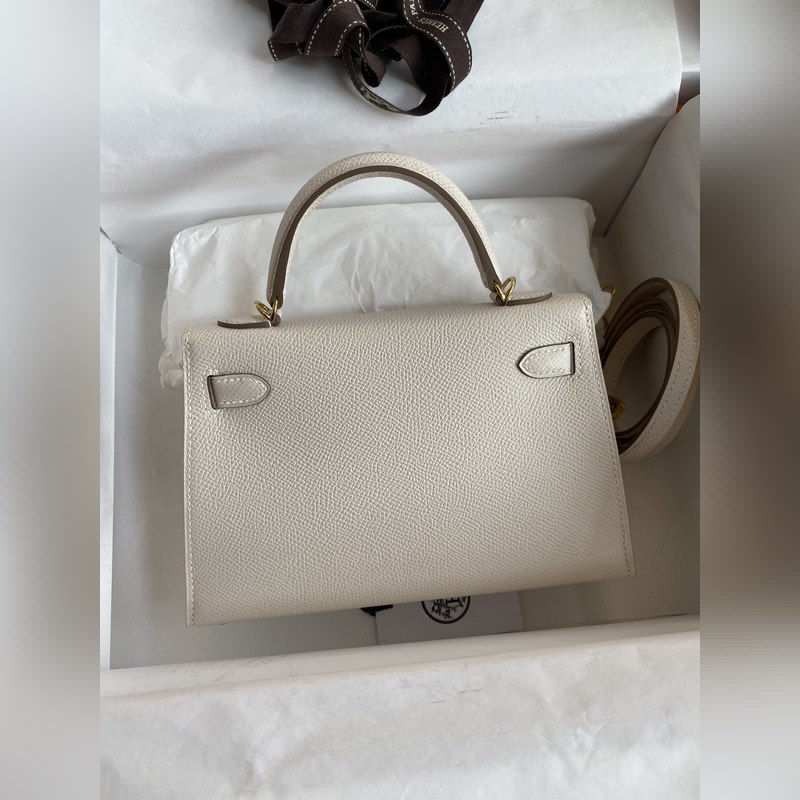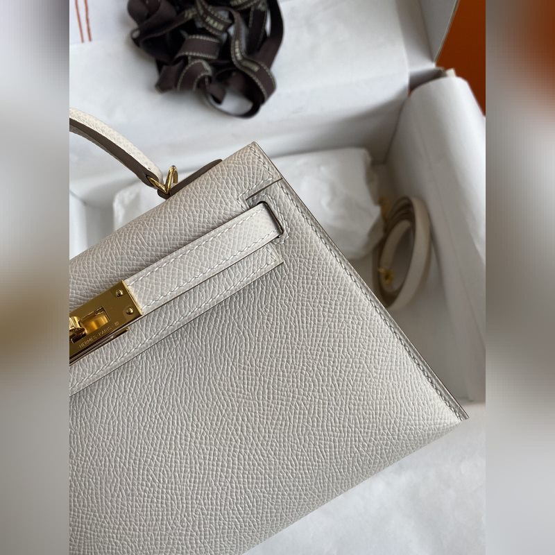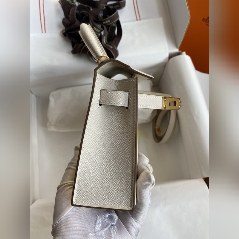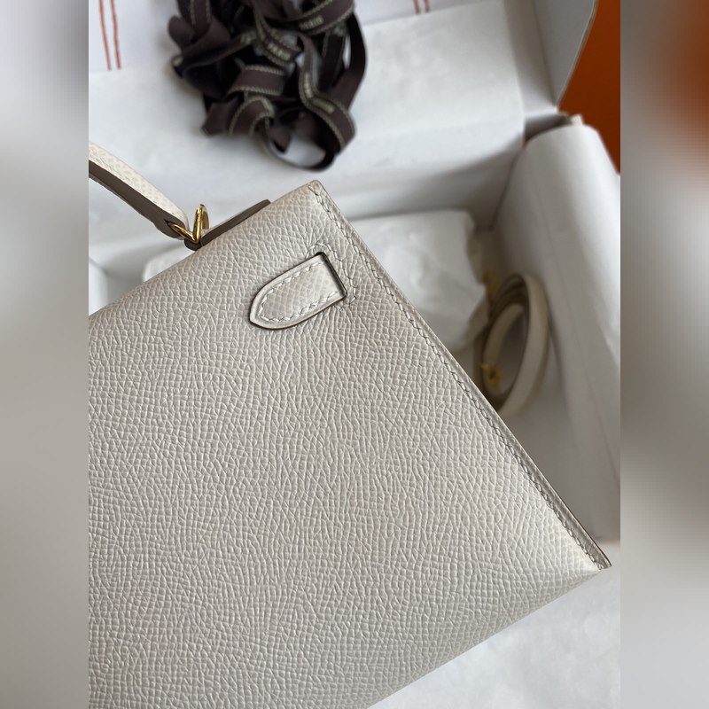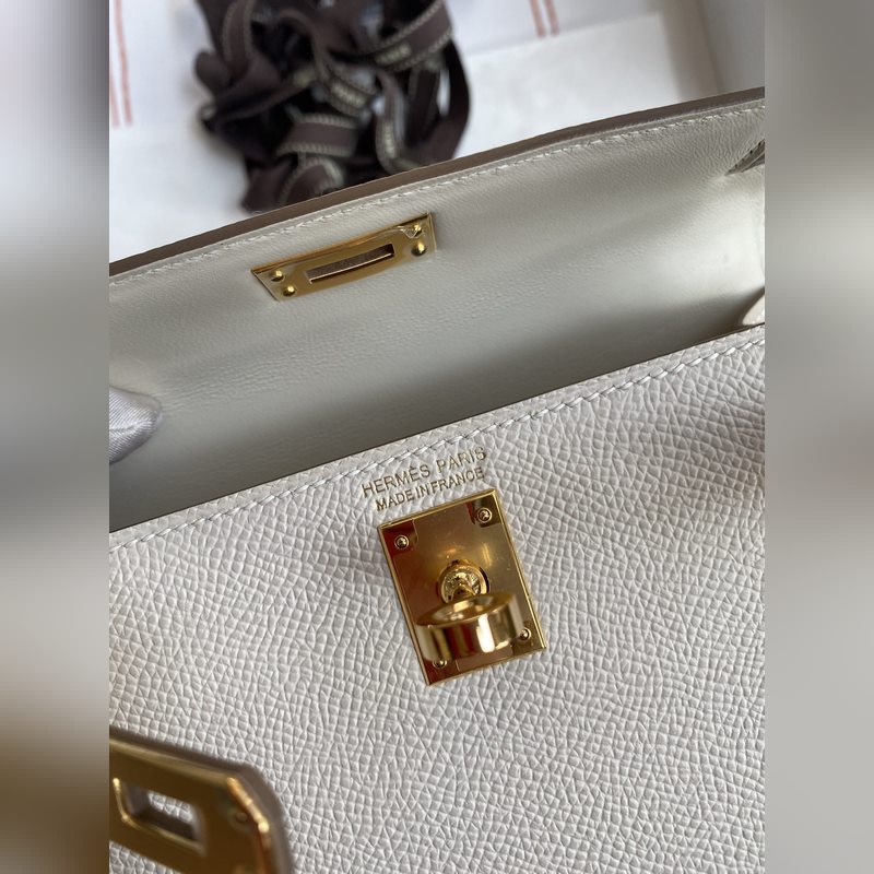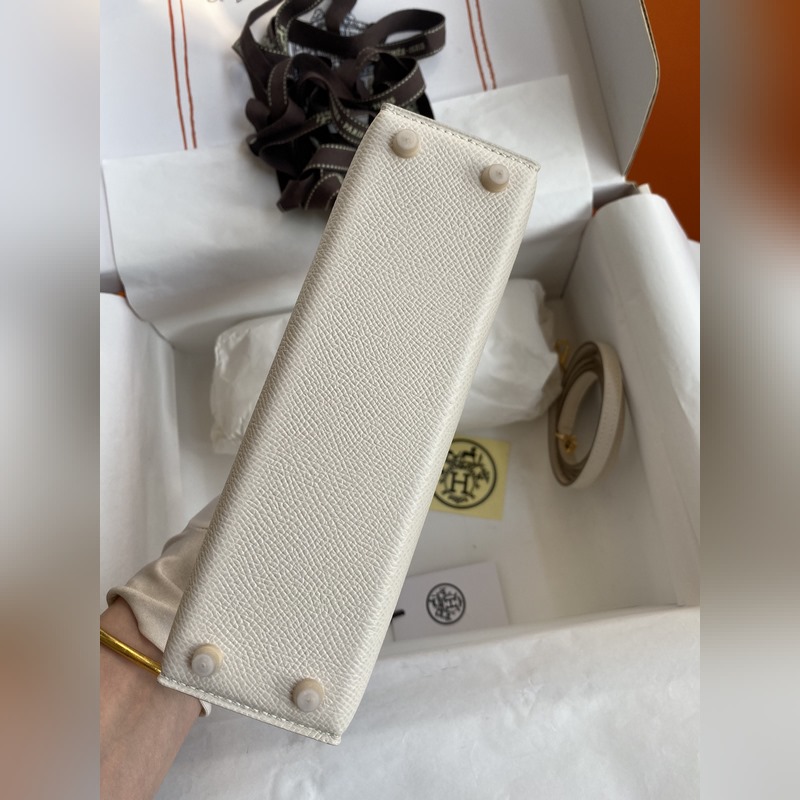 재고: 수제 미니 켈리 2세대 19cm 수입 에프솜 가죽 밀크쉐이크 화이트 골드 버튼