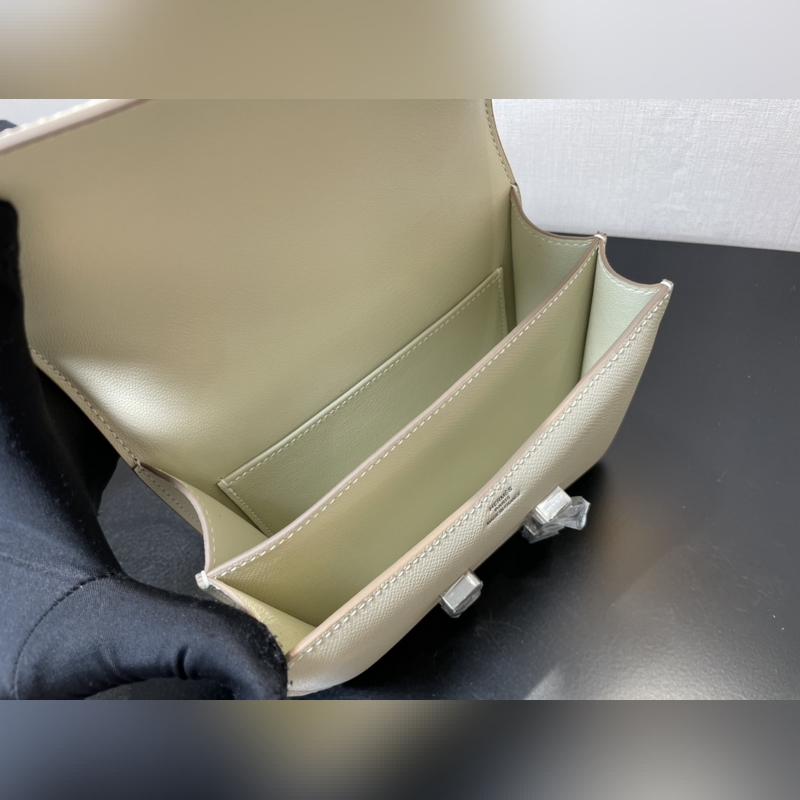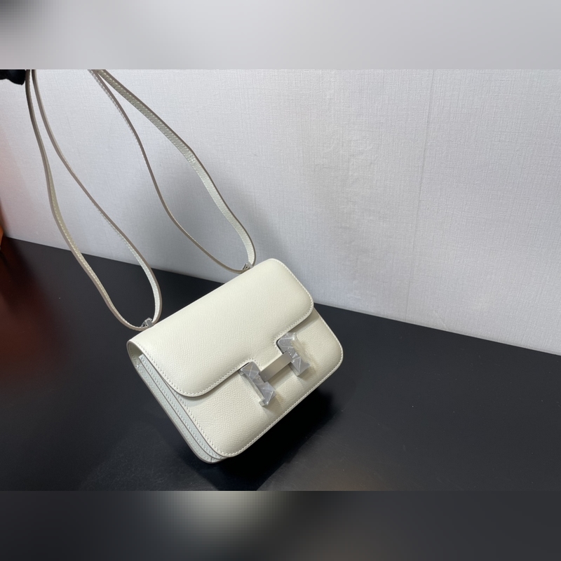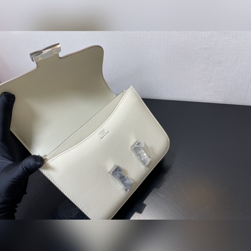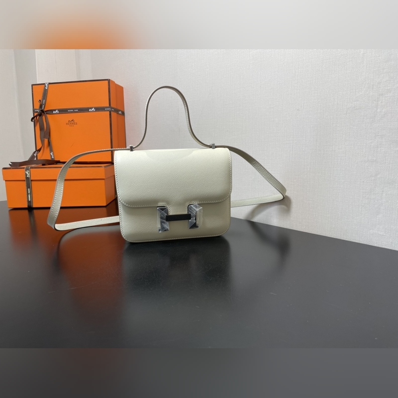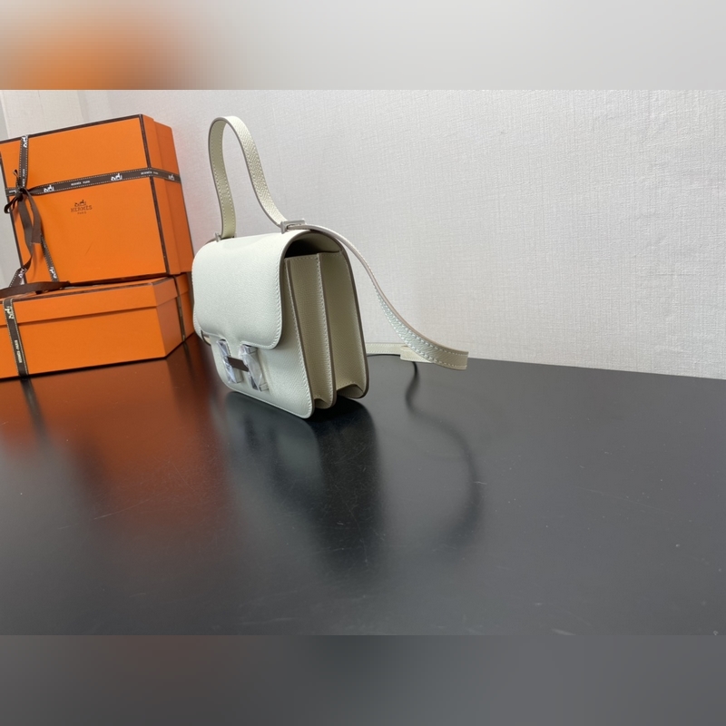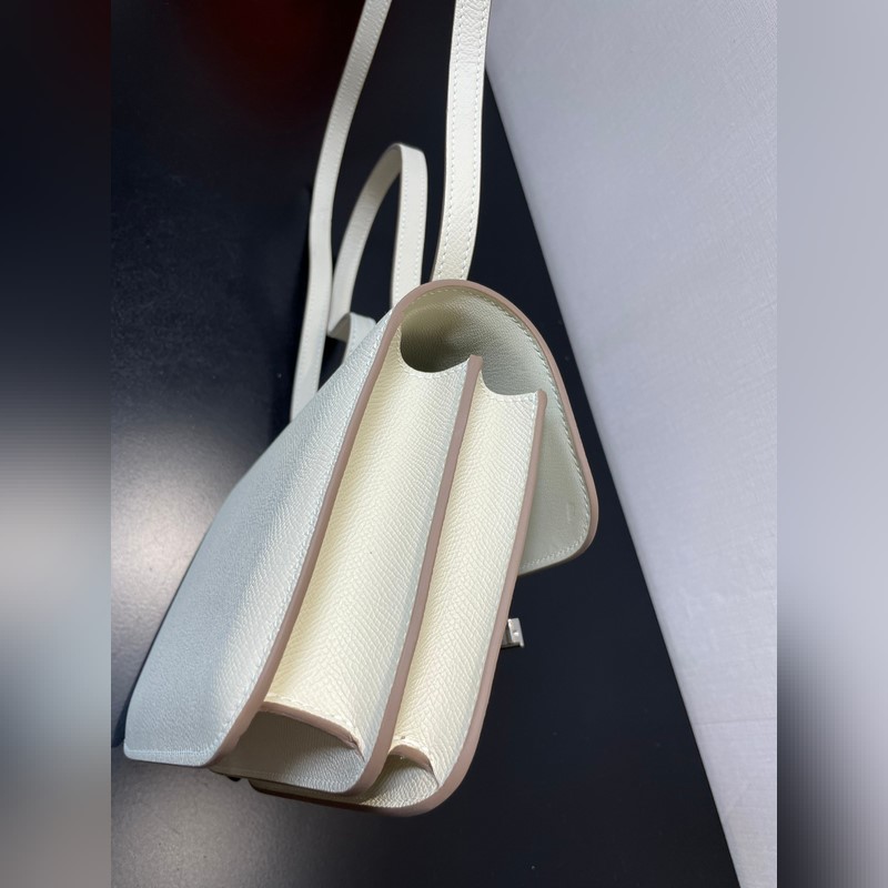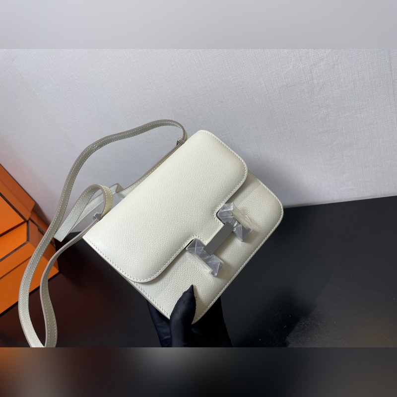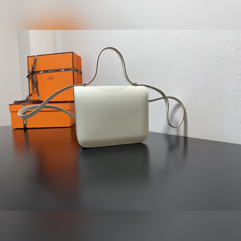 클래식 색상: 밀크쉐이크 화이트 크기: 에르메스 스튜어디스 18cm 에피 무늬가 있는 수입 소가죽 밀랍 실로 반 수작업으로 꿰매기 강화 하드웨어 금과 은의 반점