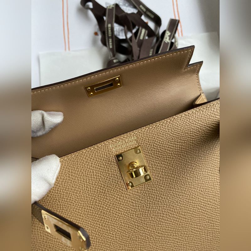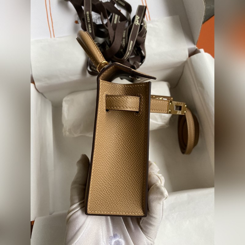수제 미니 켈리 2세대 19cm 수입 에프솜 가죽 비스킷색상 금색 단추
