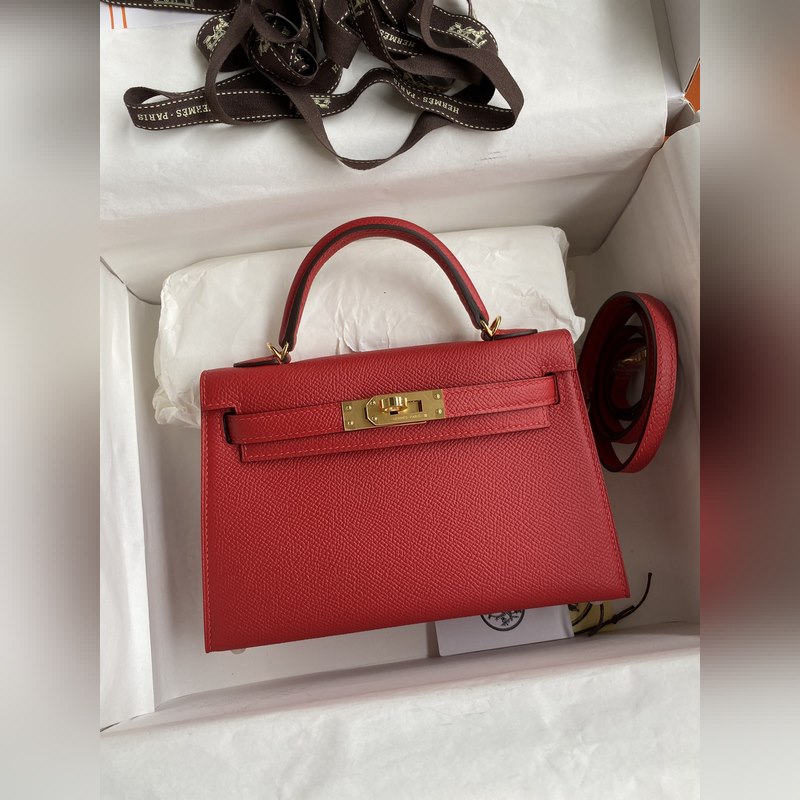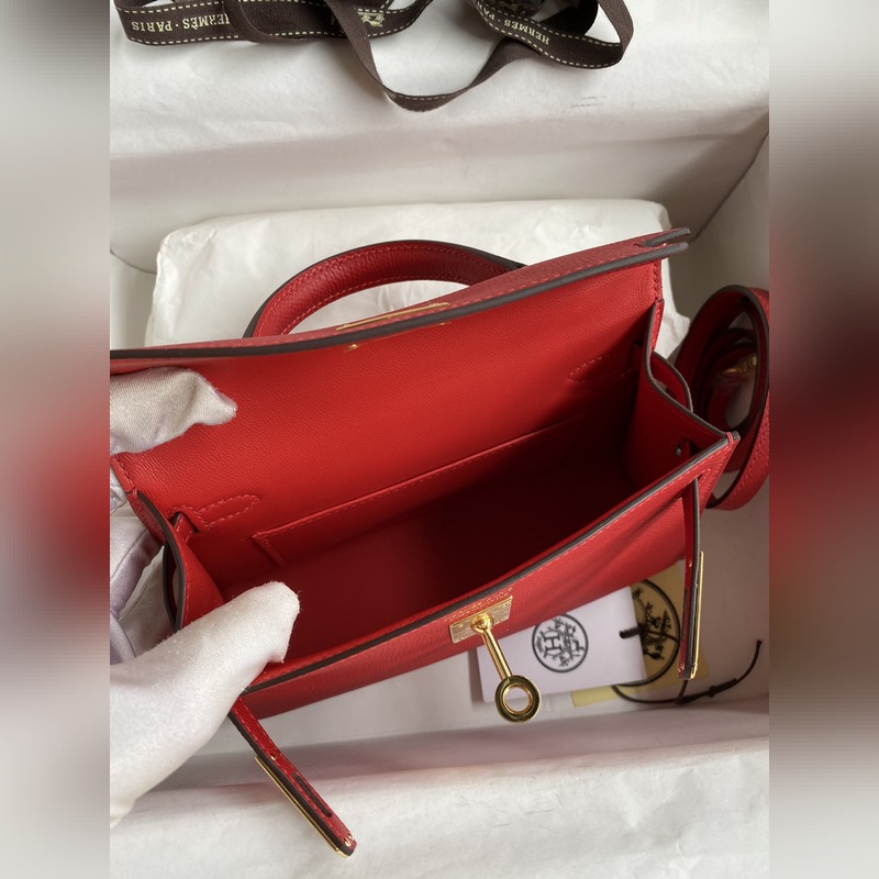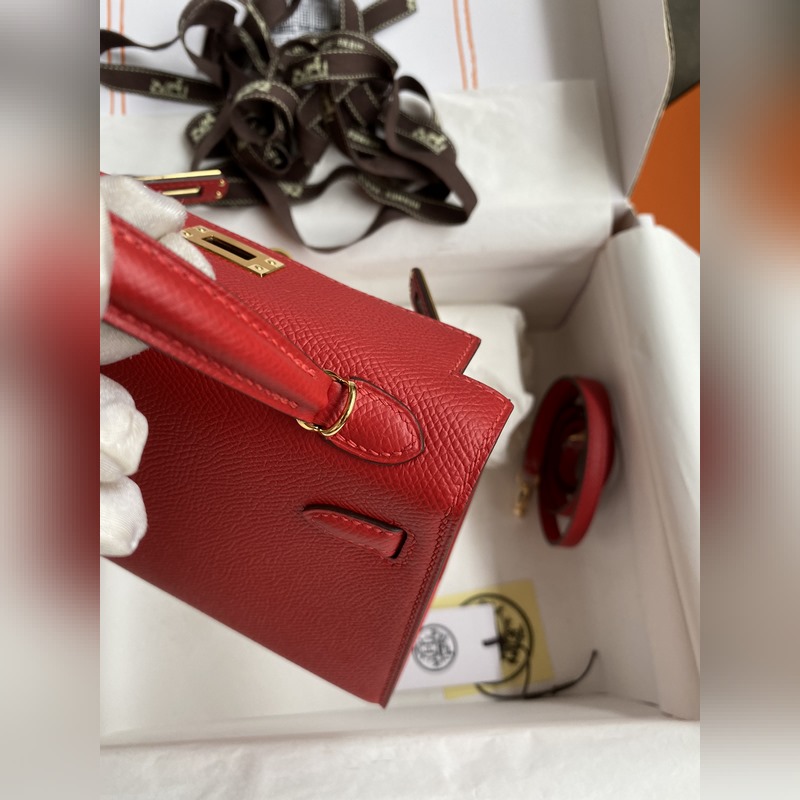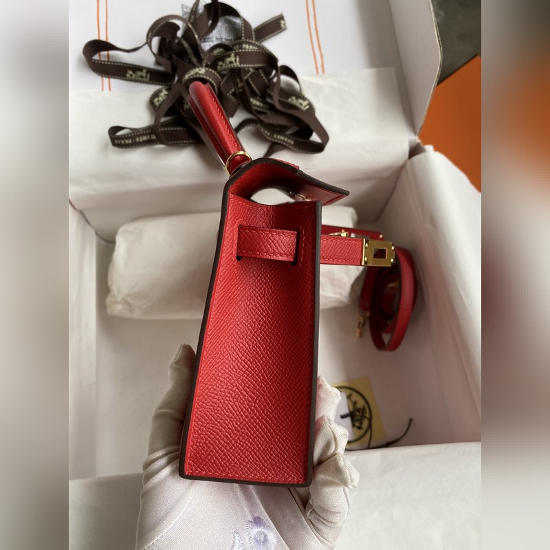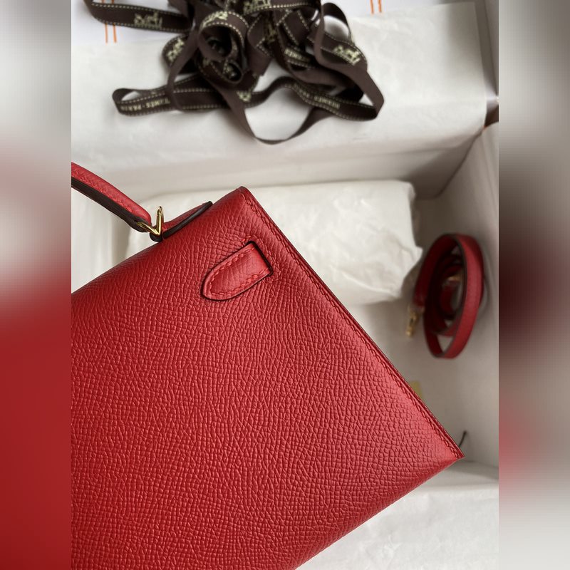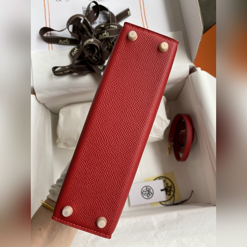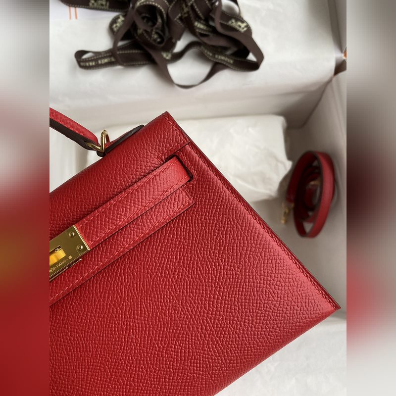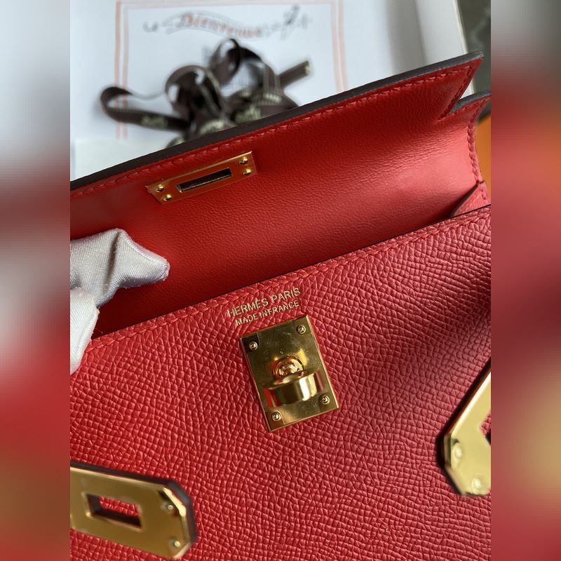 수제 미니 켈리 2세대 19cm 수입 에프솜 가죽 플래그 레드 골드 버클