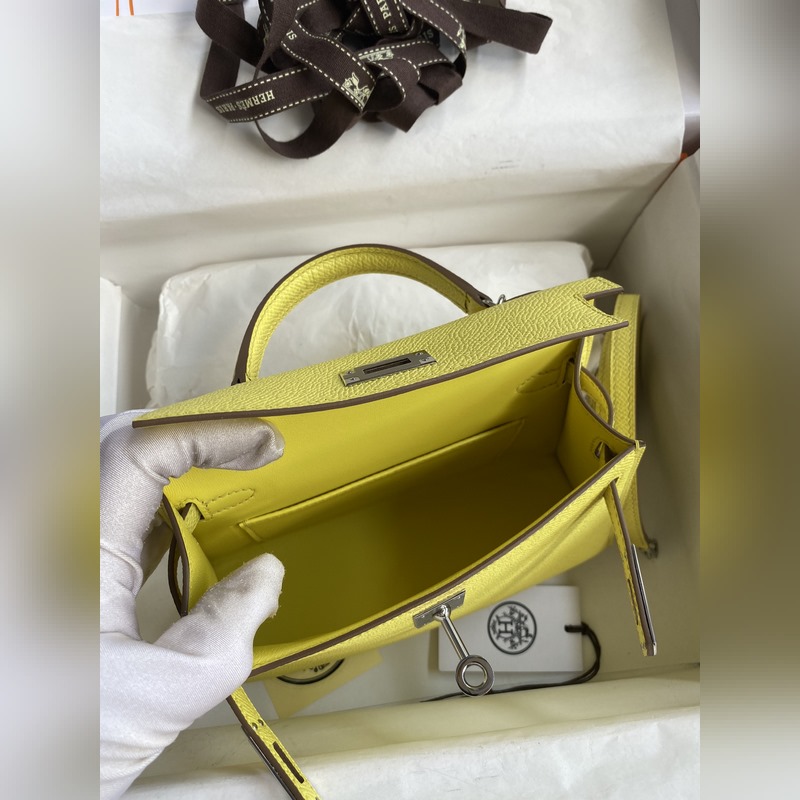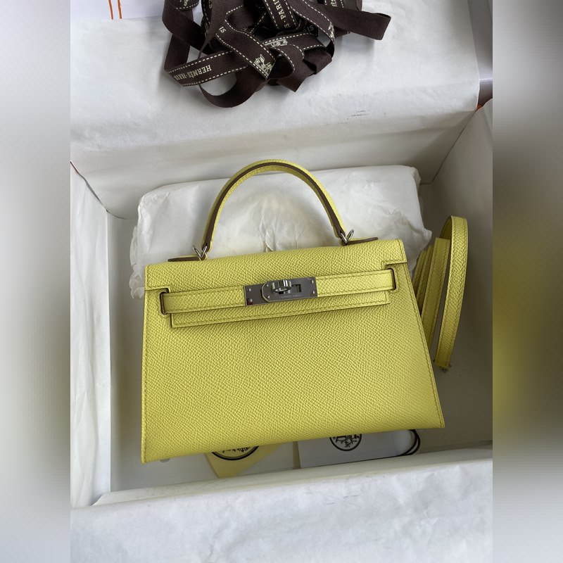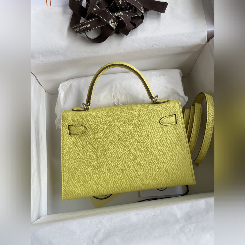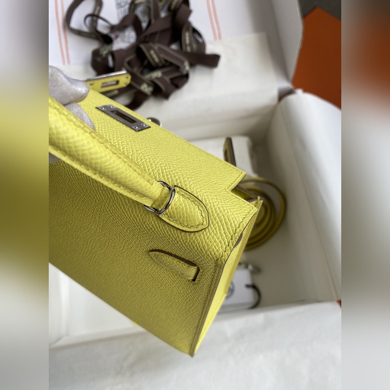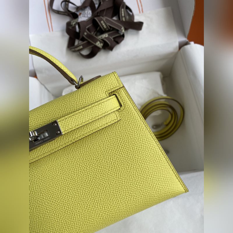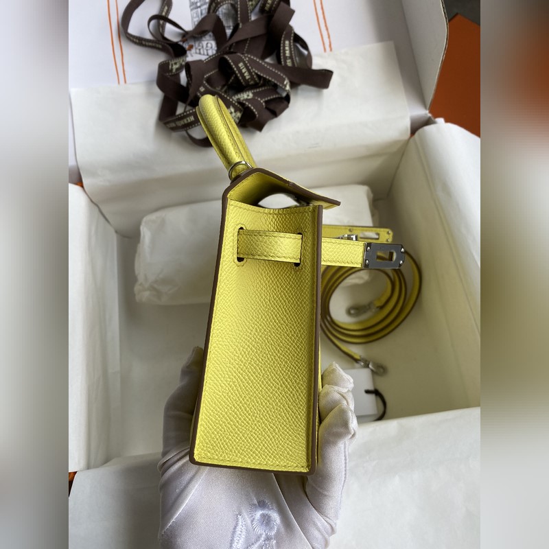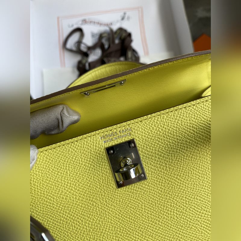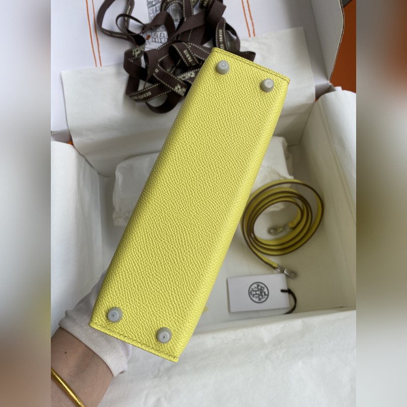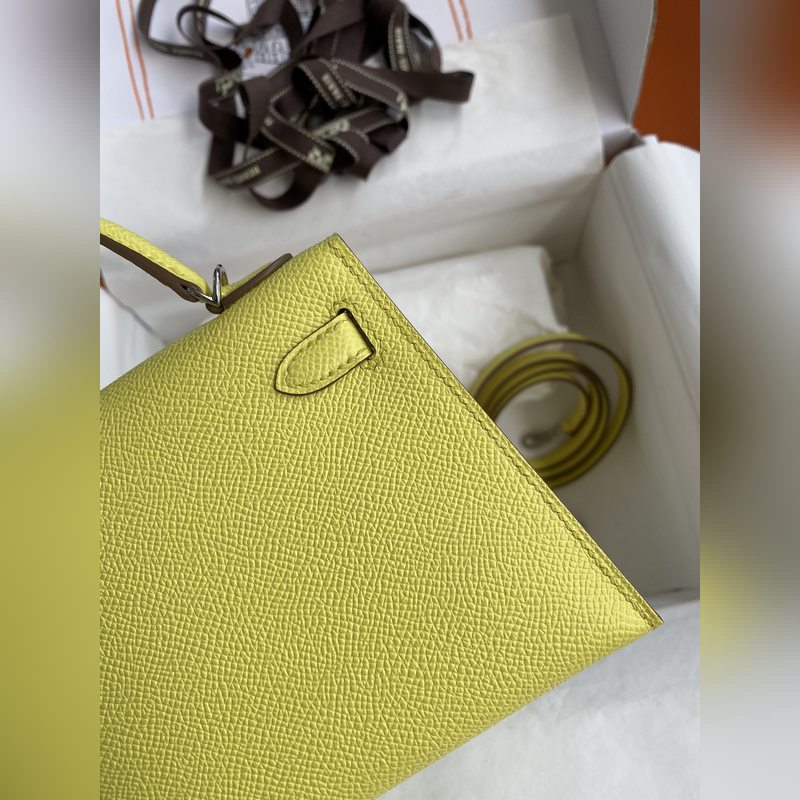 수제 미니 켈리 2세대 19cm 수입 에프솜 가죽 레몬 옐로우 실버 버클