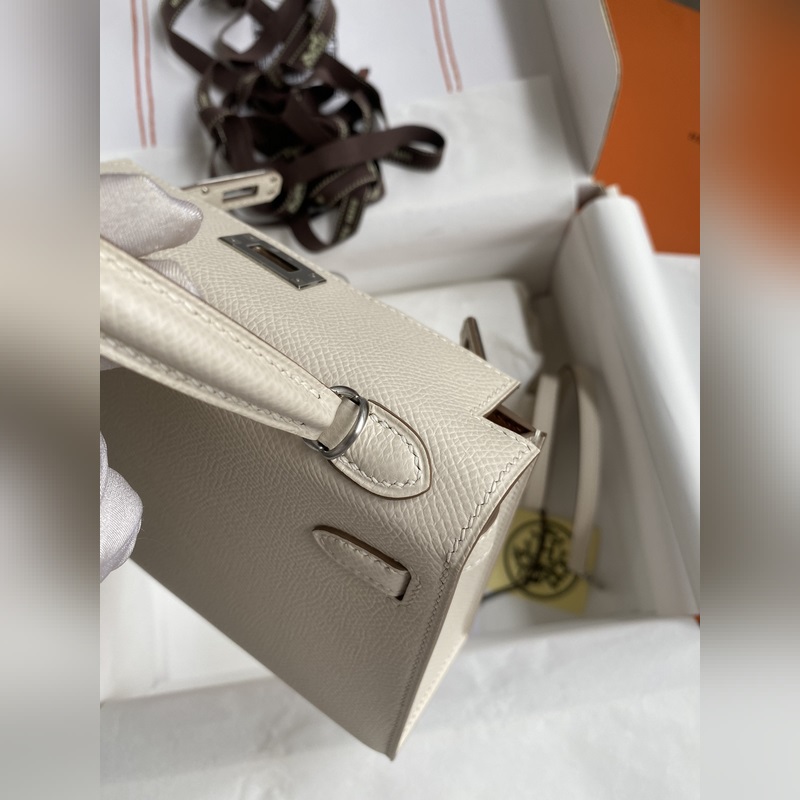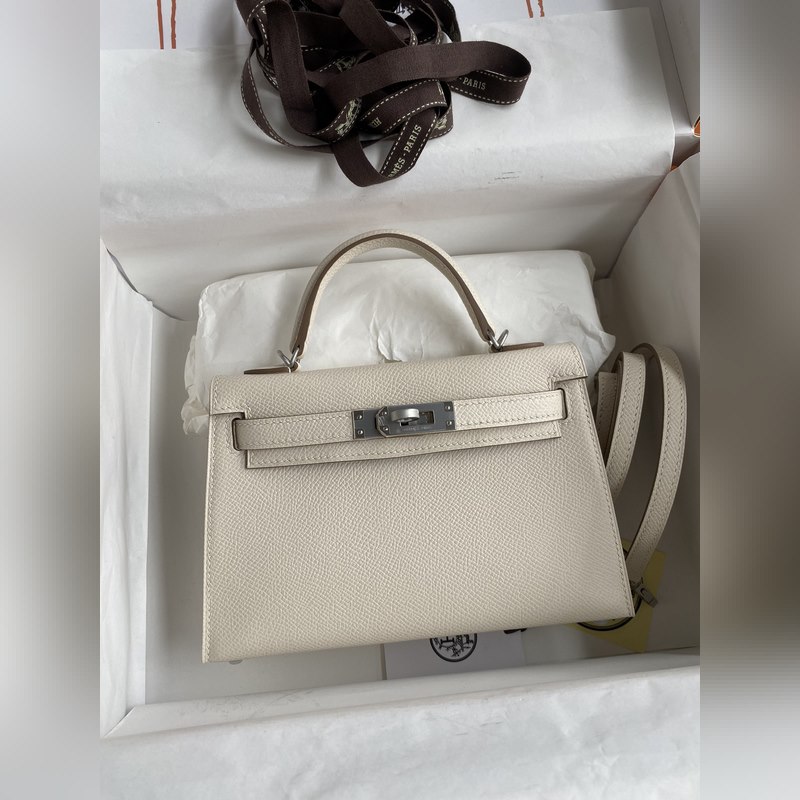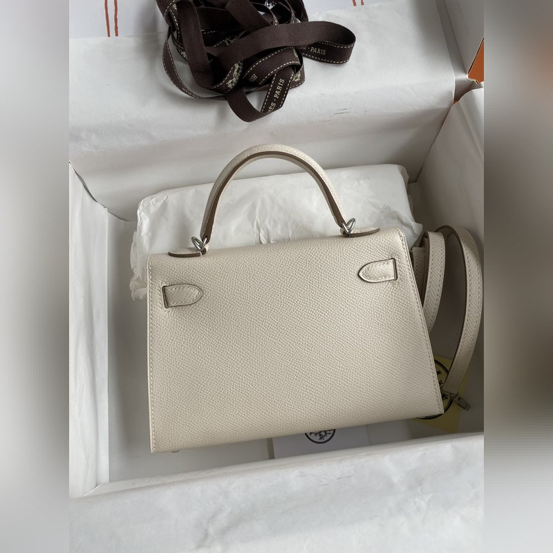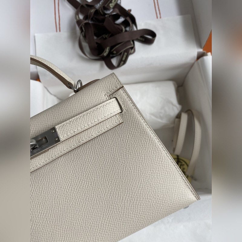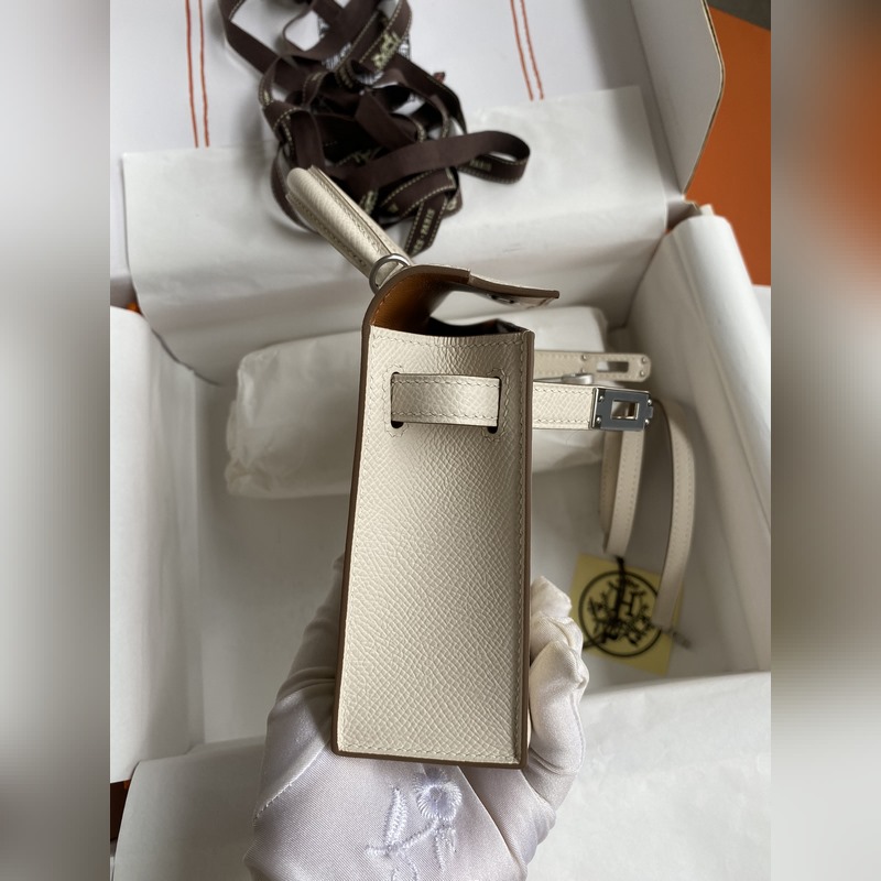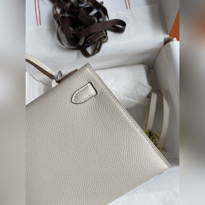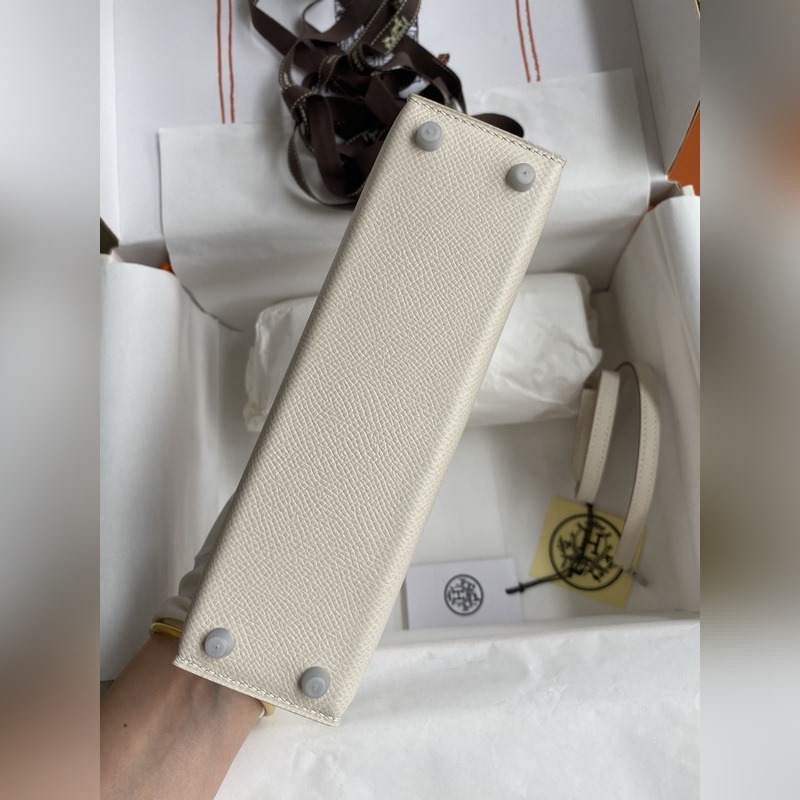 수제 미니 켈리 2세대 19cm 수입 에프솜 가죽 밀크쉐이크 화이트에 골