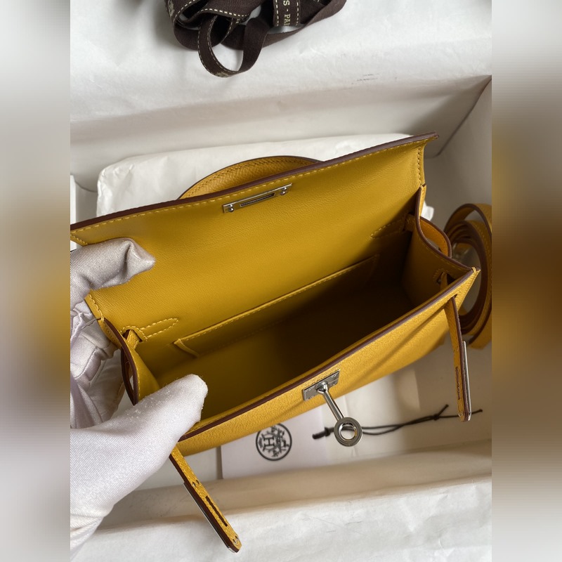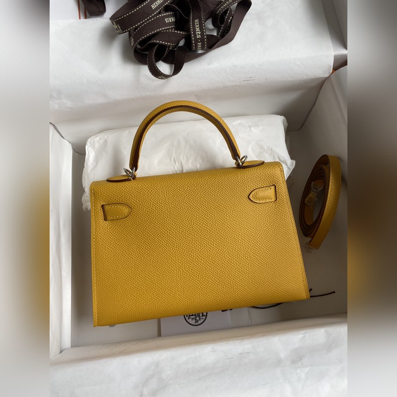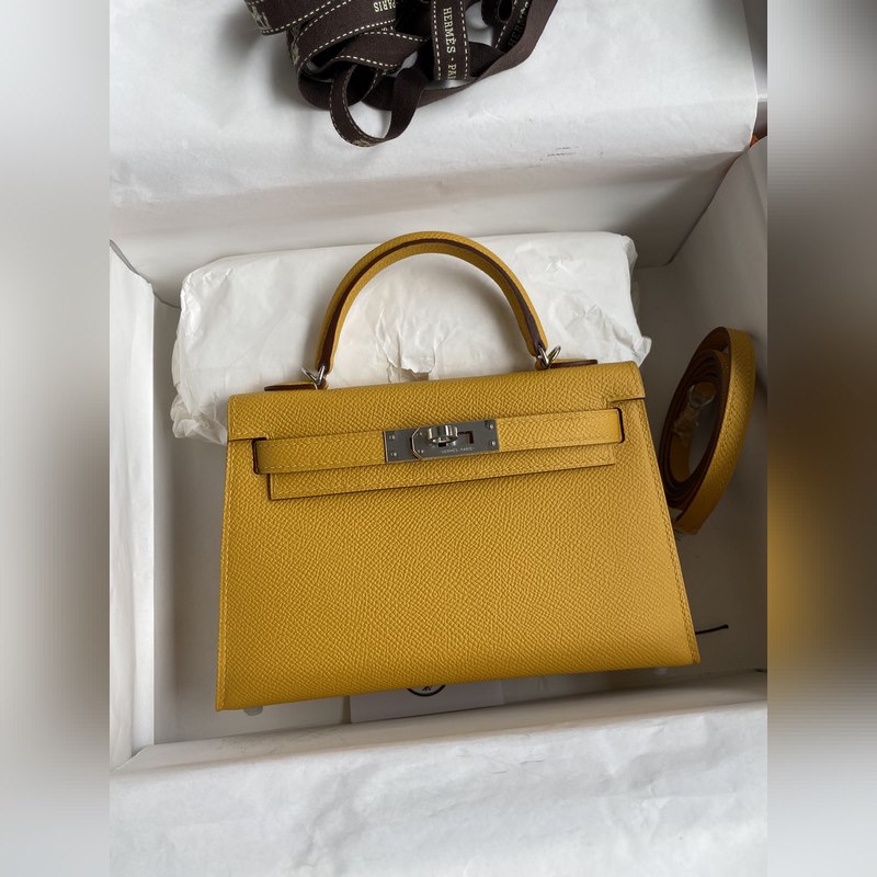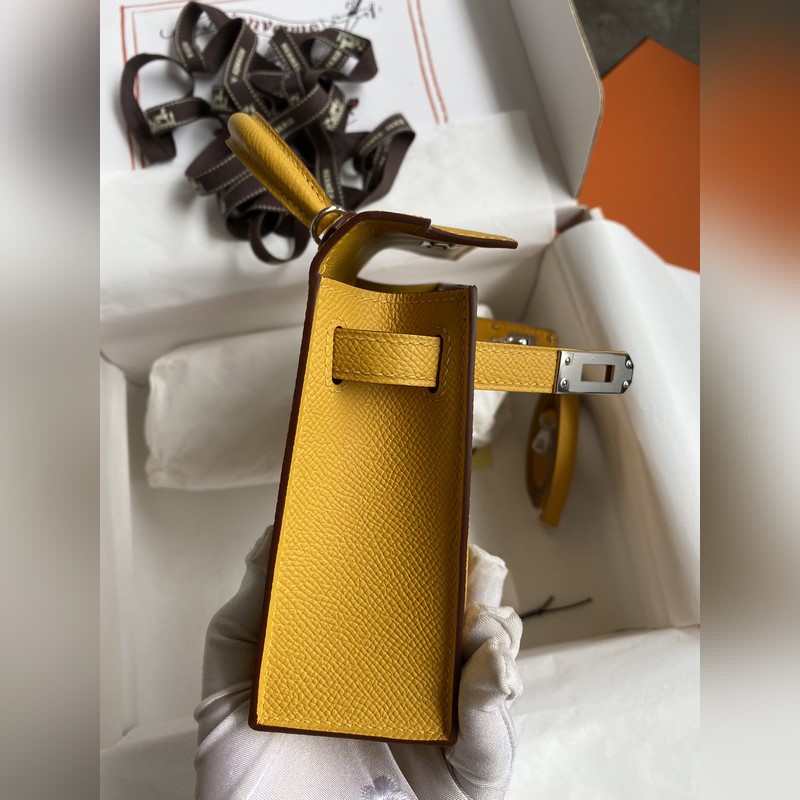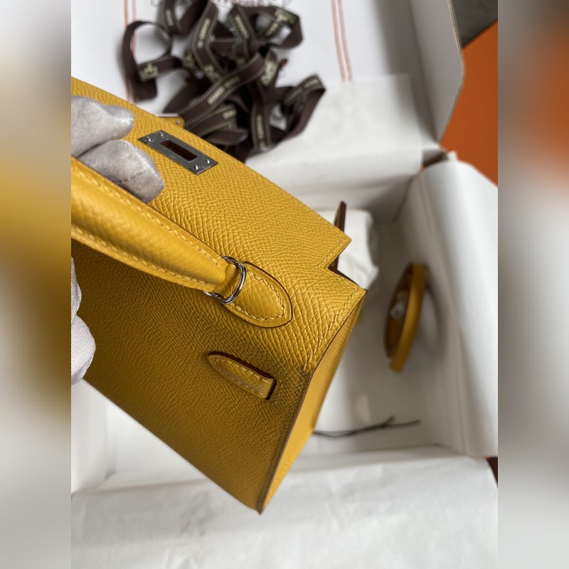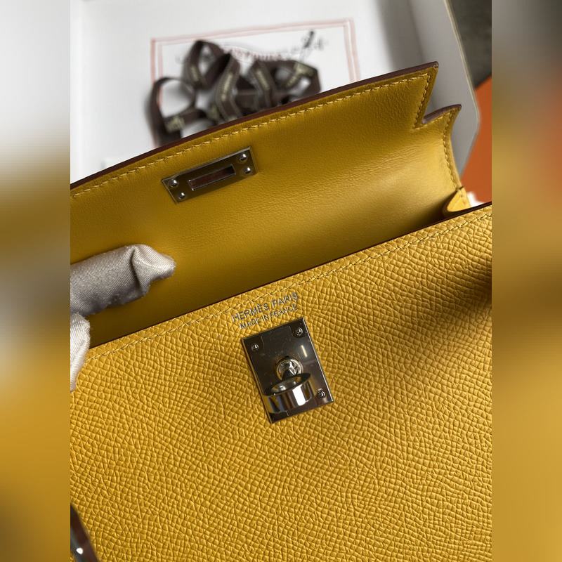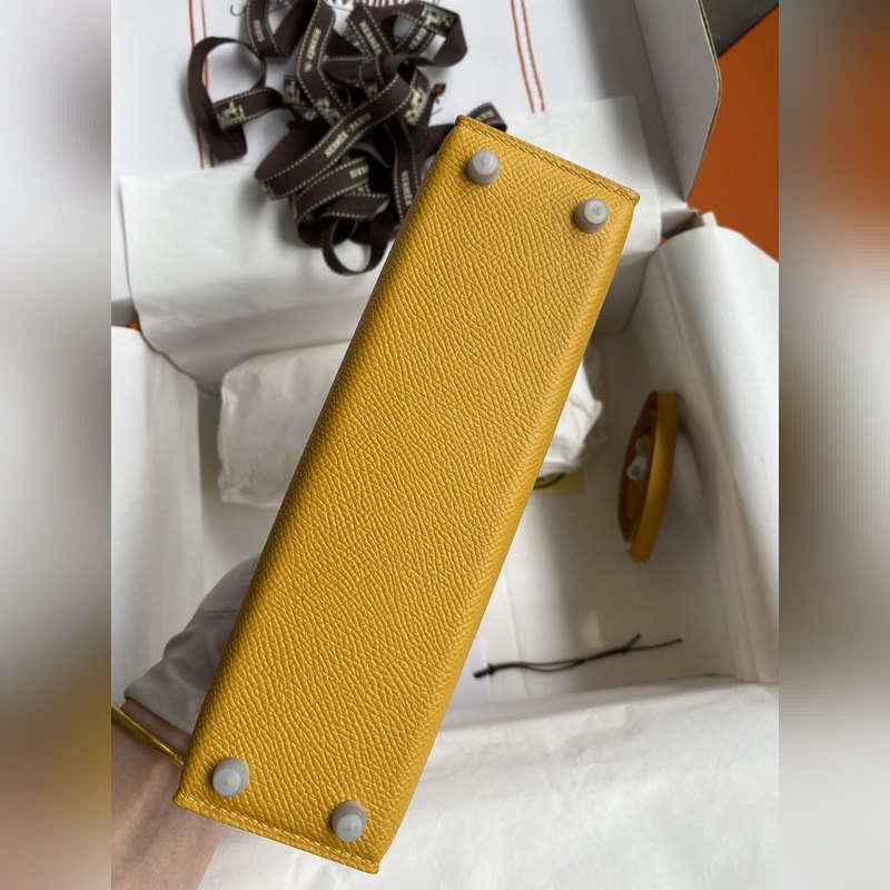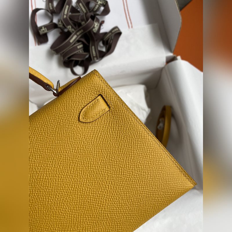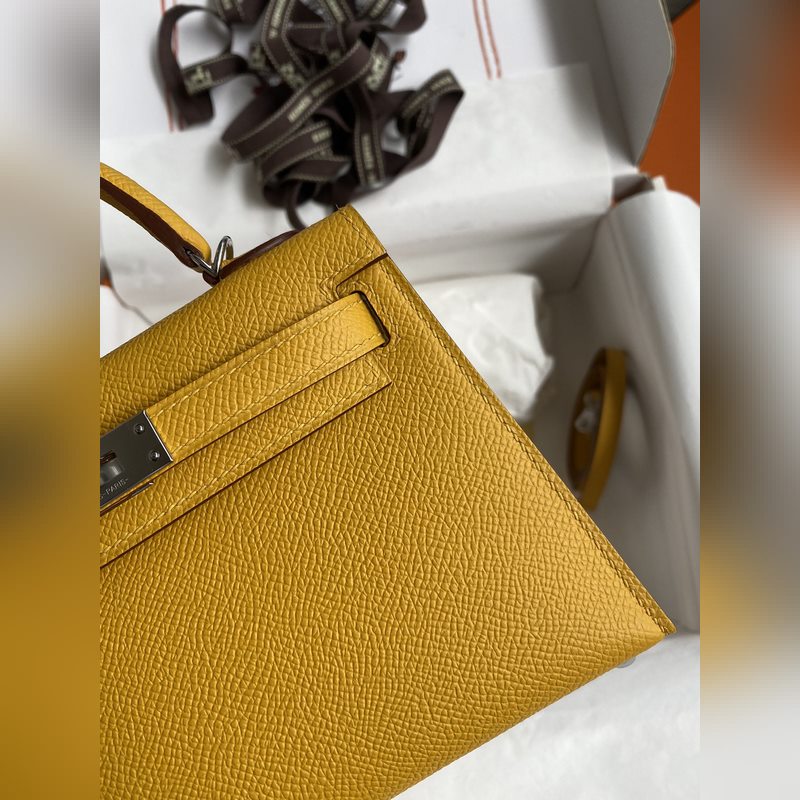 수제 미니 켈리 2세대 19cm 수입 에프솜 가죽 앰버 옐로우 실버 버클