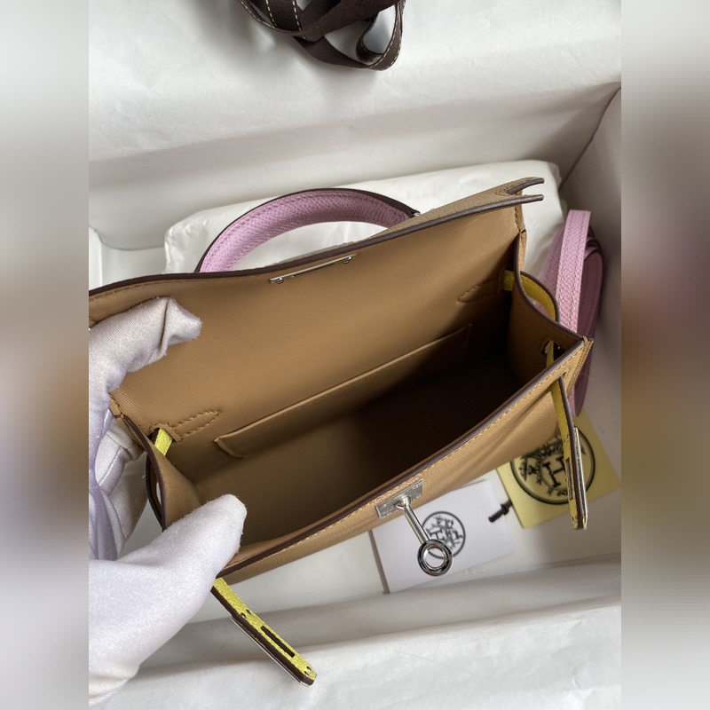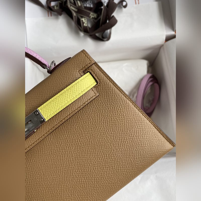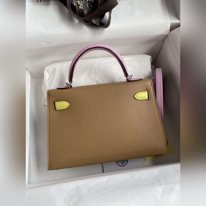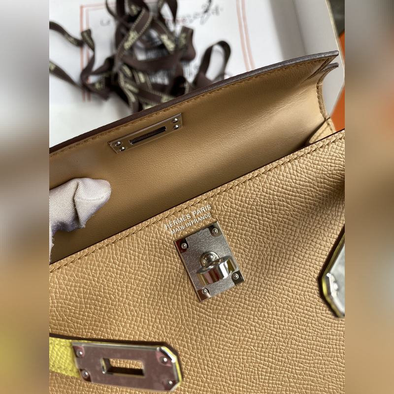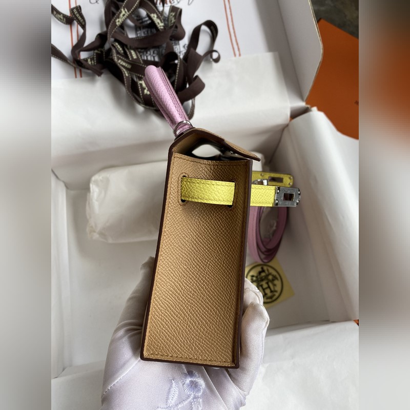 수제 미니 켈리 2세대 19cm 수입 에프솜 가죽 밀크티/레몬 옐로우/멜