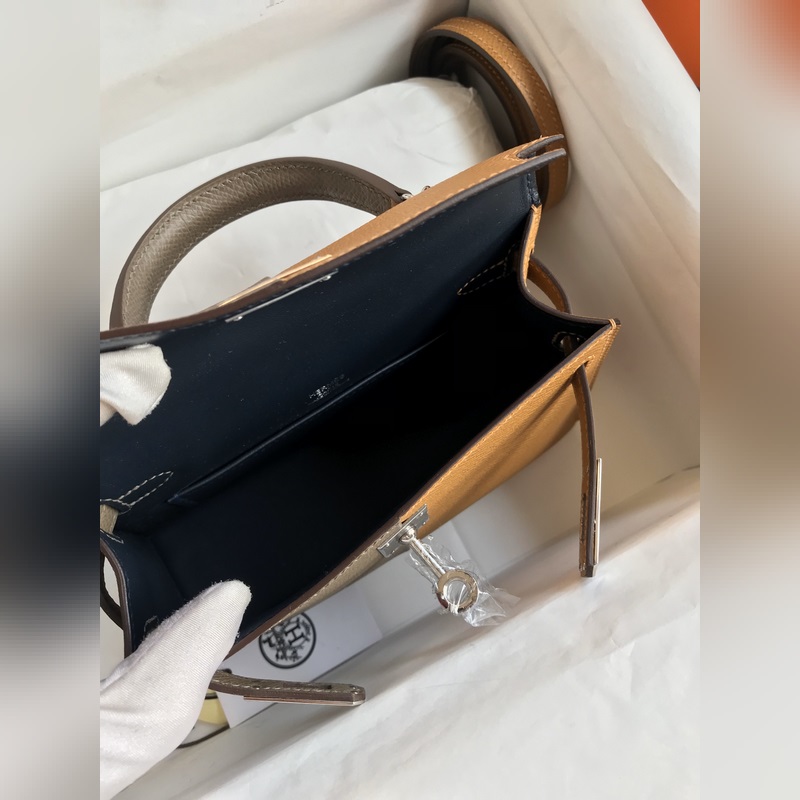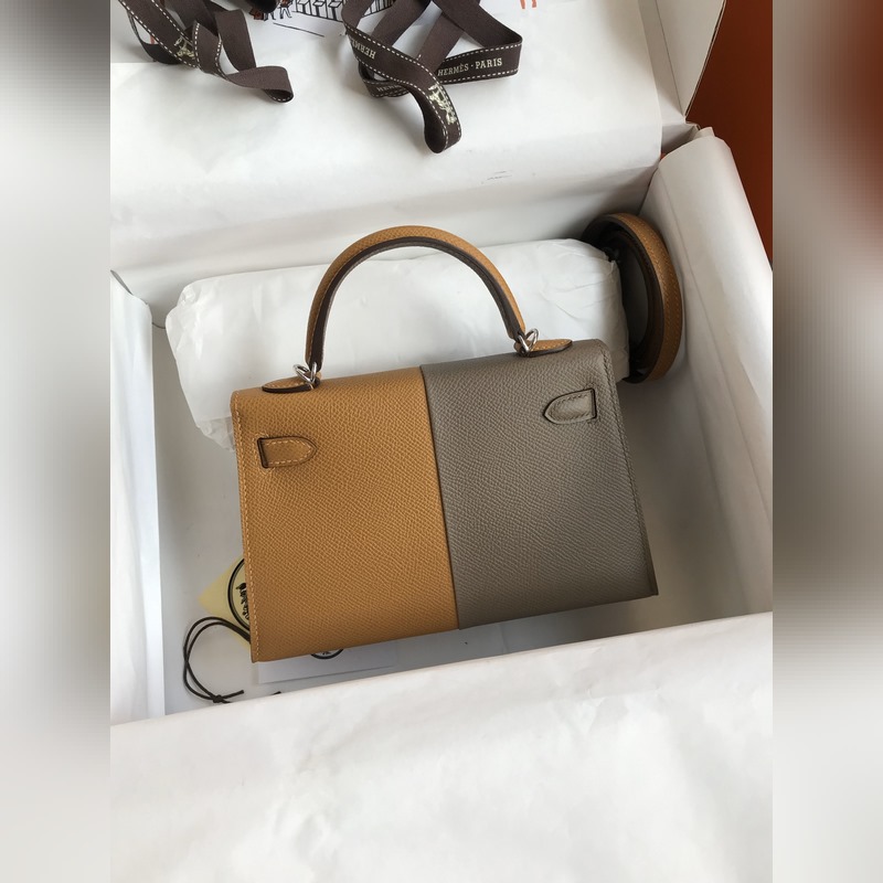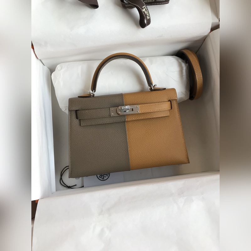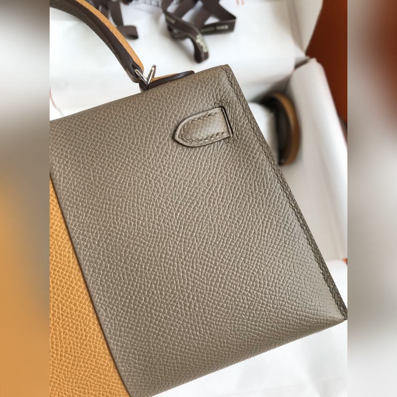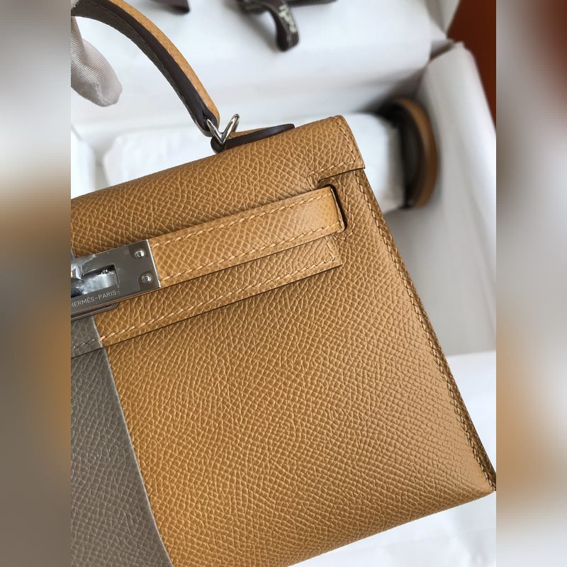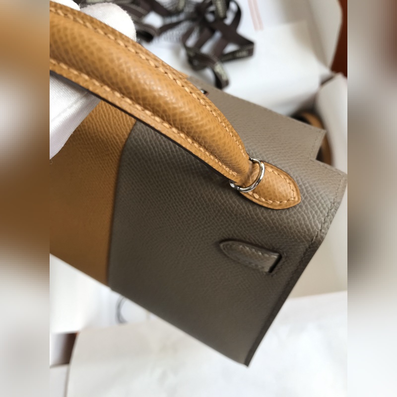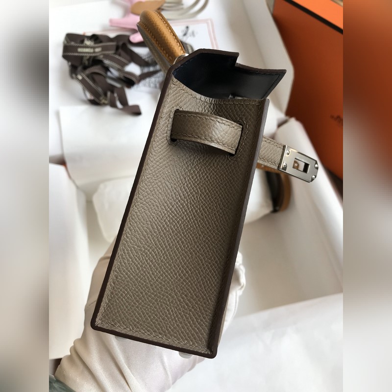수작업으로 꿰맨 3피스 미니 켈리 19cm 수입 에프솜 가죽 코끼리 회색/참깨색/미드나잇 블루 은색 버클