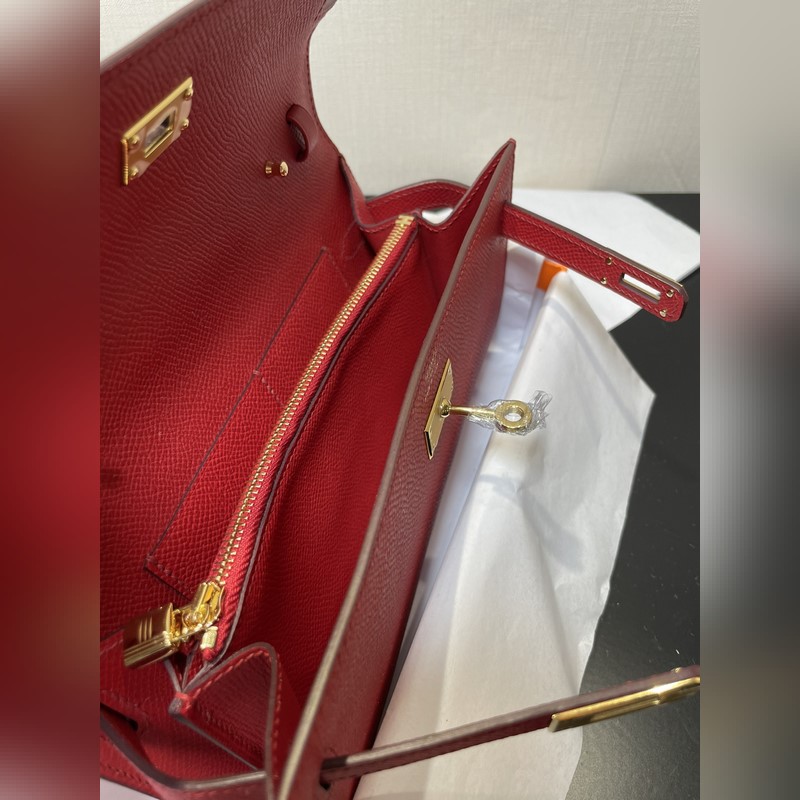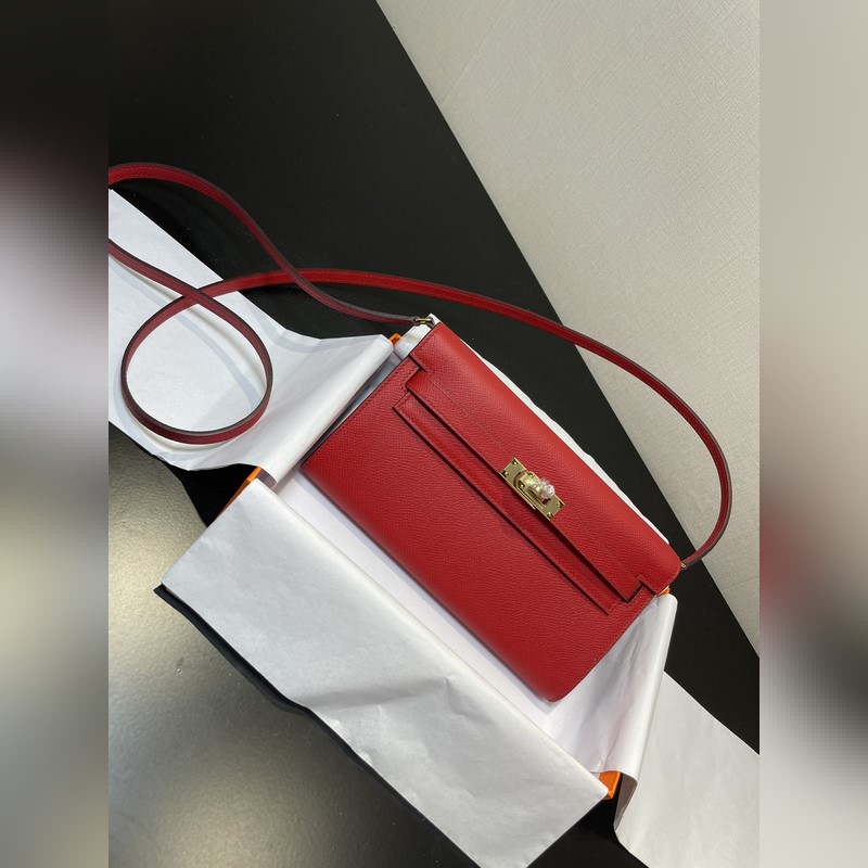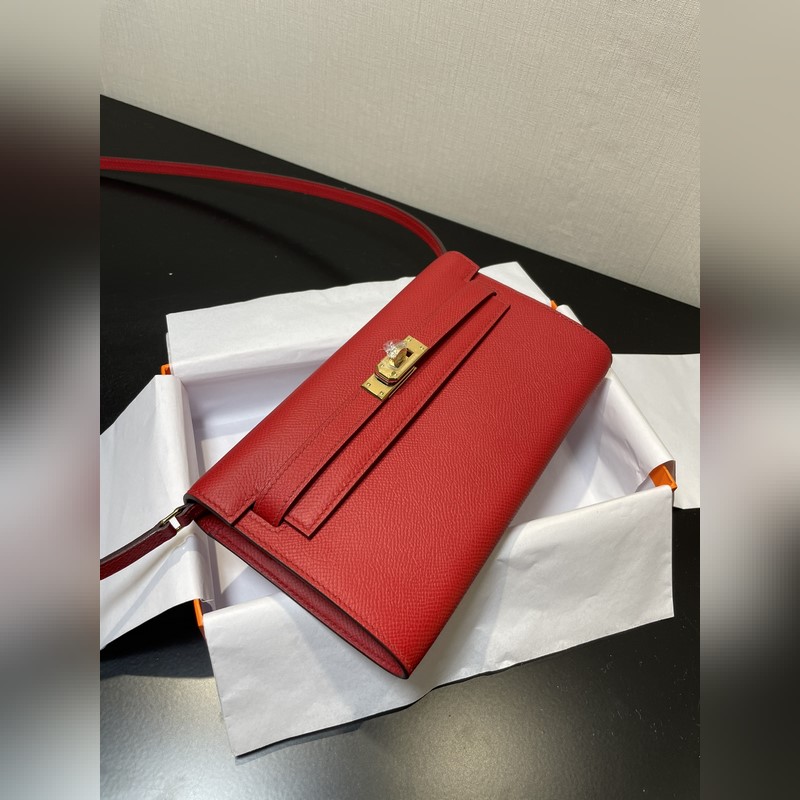 켈리 woc 인기 판매 모델 모든 사람에게 필수품 실용적이고 다목적 상세한 이미지 밝은 빨간색 가죽 에프솜 재고 있음 (크기: 길이 20.5cm x 폭 11cm x 두께 2cm) 켈리 크로스바디 백 어깨 스트랩 카드 슬롯 4개 지폐 주머니 2개 중앙 지퍼 동전 지갑 1개 작은 카드 홀더 포함 완벽 검색 모델: E708 프리미엄 에디션
