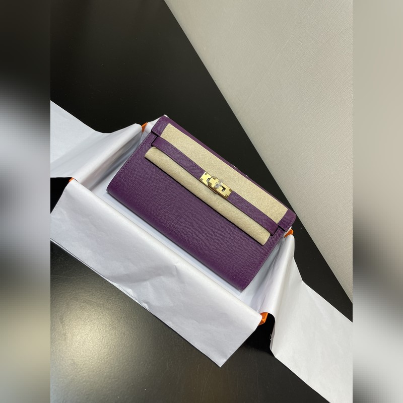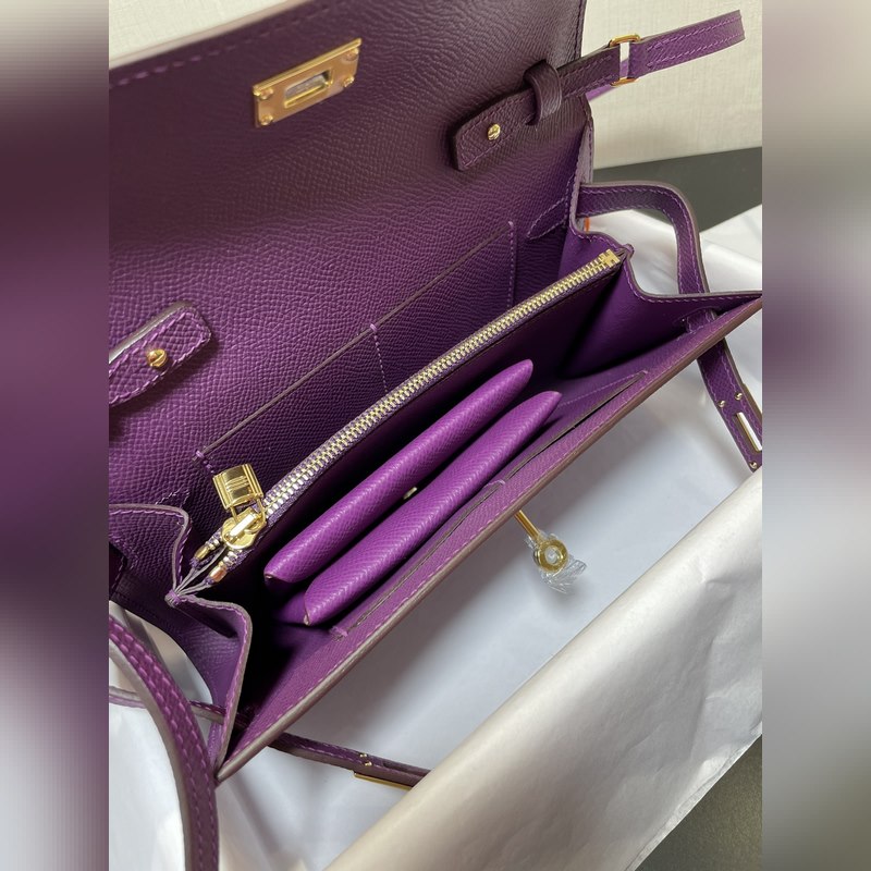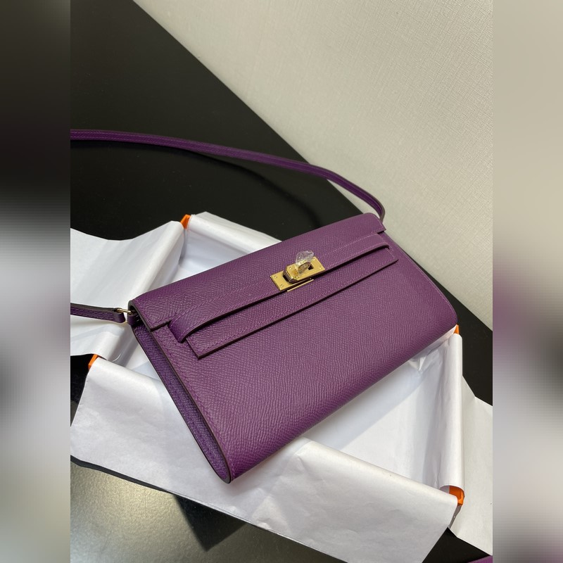 Kelly woc 인기 판매 모델 모든 사람에게 필수품 실용적 다목적 상세 사진 색상 아네모네 퍼플 가죽 엡섬 재고 있음 (크기: 길이 20.5cm x 폭 11cm x 두께 2cm) 켈리 크로스바디 백 어깨 스트랩 카드 슬롯 4개 지폐 주머니 2개 중앙 지퍼 동전 지갑 1개 작은 카드 홀더 포함 더 좋음 검색 모델: E708 프리미엄 에디션