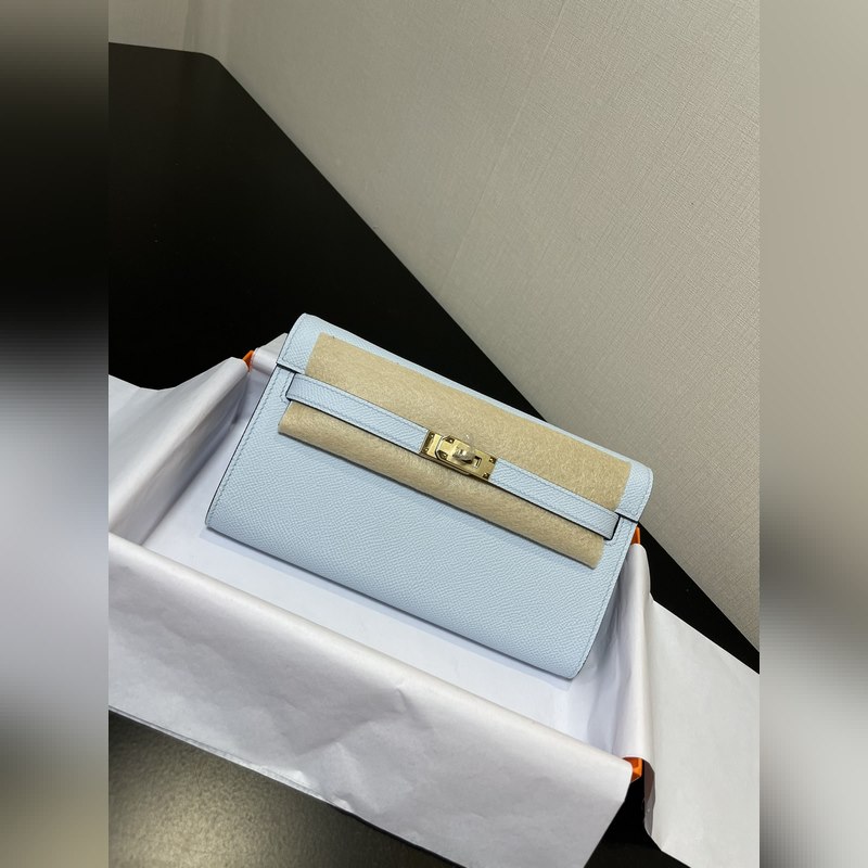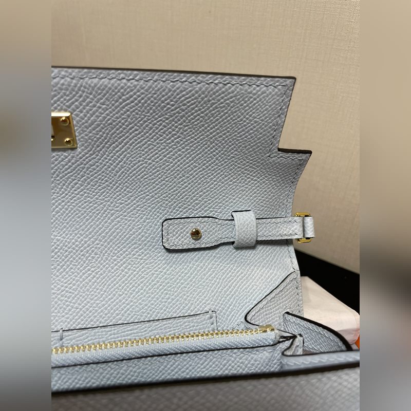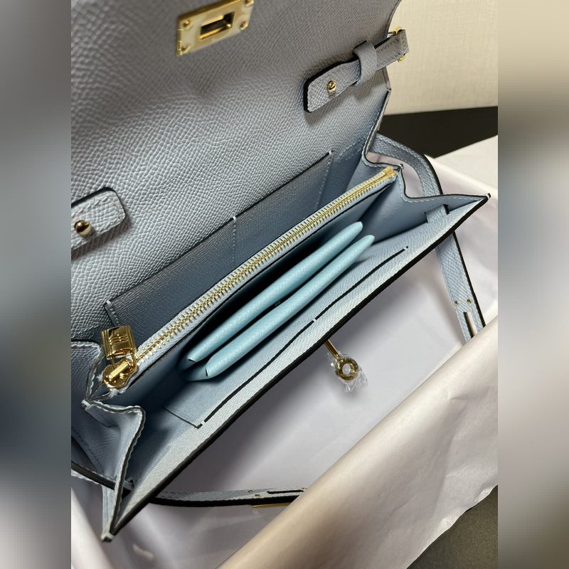 Kelly woc 인기 판매 모델 모든 사람에게 필수품 실용적 다목적 상세 사진 색상: 연한 파란색 가죽: 에프솜 재고 있음 (크기: L20.5 x W11 x H2cm) 켈리 크로스바디 백 어깨 스트랩 카드 슬롯 4개 지폐 주머니 2개 중앙 지퍼 동전 지갑 1개 작은 카드 홀더 포함 더 좋음 검색 모델: E708 프리미엄 에디션