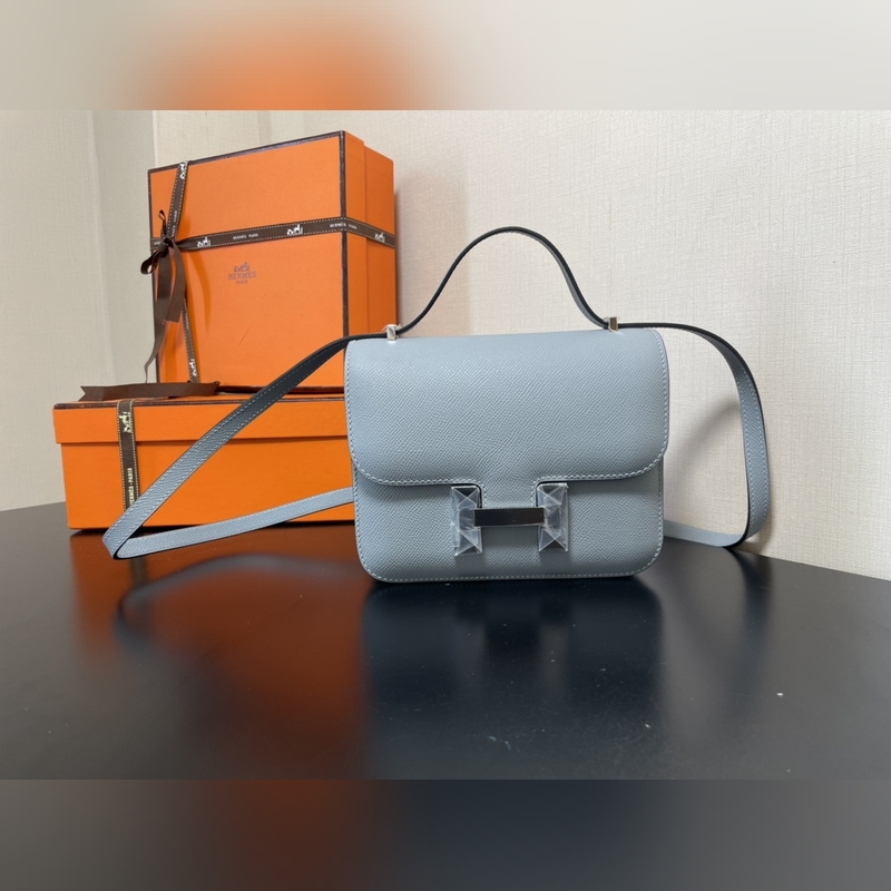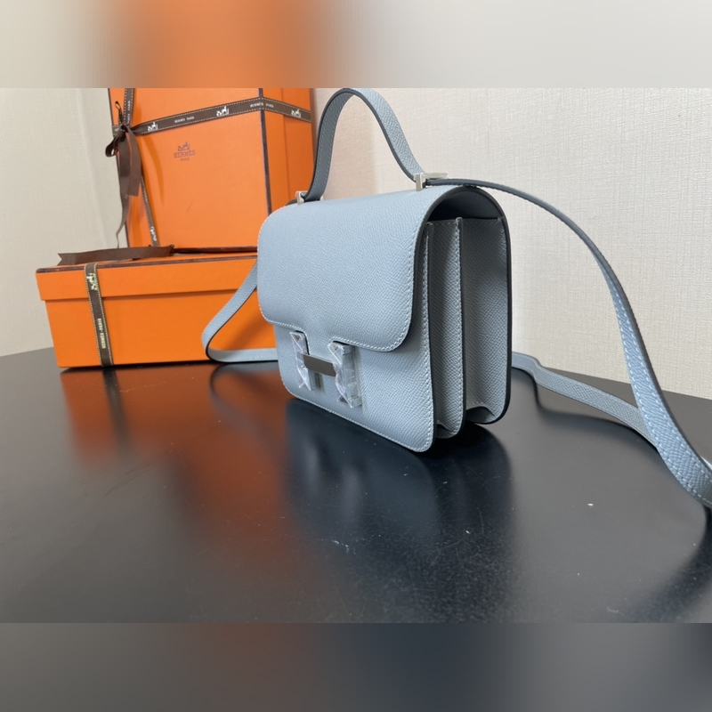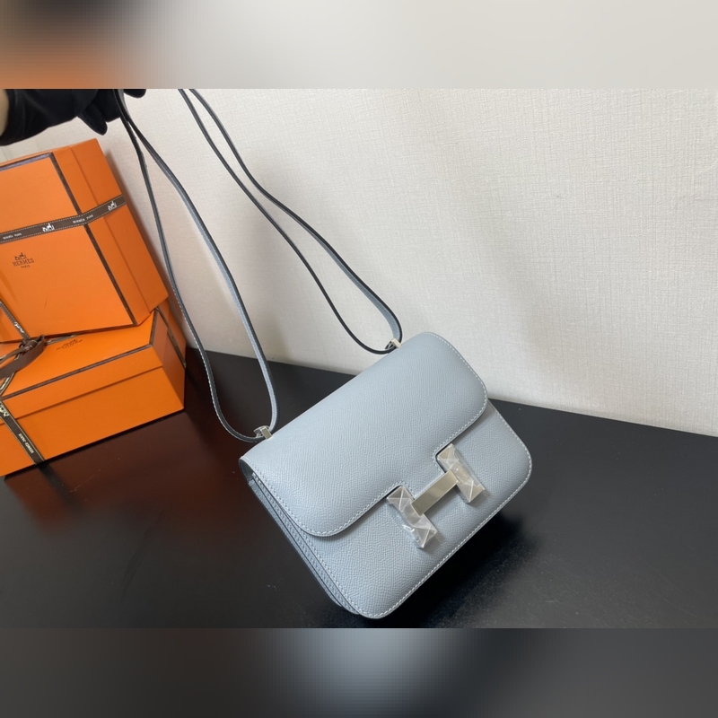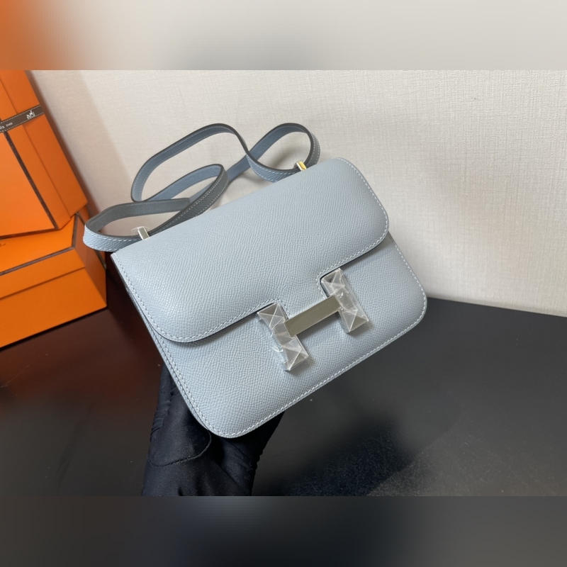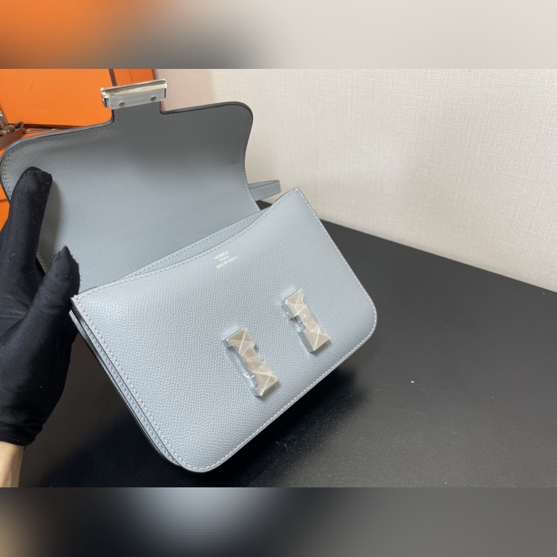 빙하색 파란색 사이즈: 헤르메스 콘스탄스 18cm 에피 무늬가 있는 수입 소가죽 밀랍 실로 반 수작업으로 꿰매기 강화 하드웨어 금과 은의 반점
