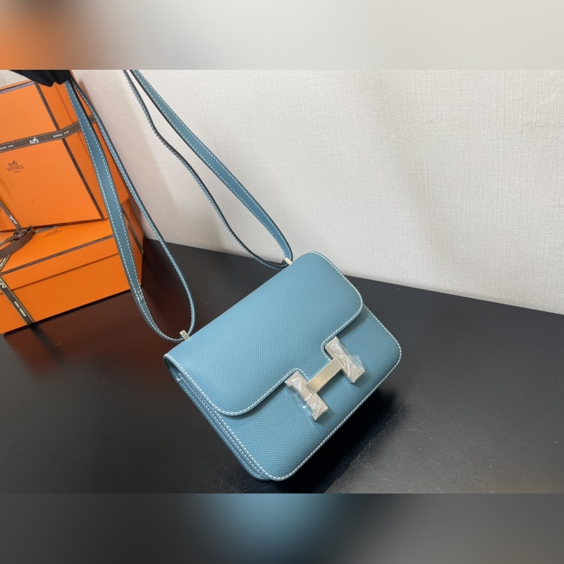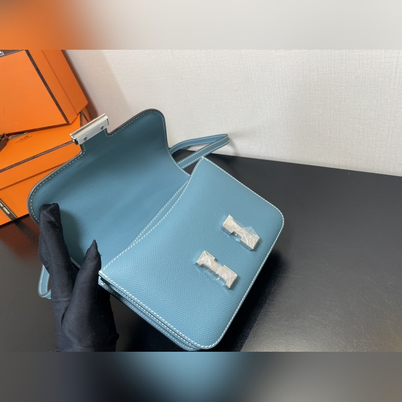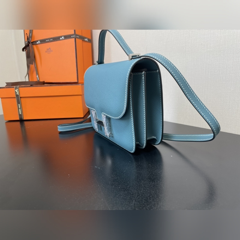 데님 오키드 사이즈: 헤르메스 콘스탄스 18cm 에피 무늬가 있는 수입 소가죽 밀랍 실로 반 수작업으로 꿰매기 강화 하드웨어 금과 은의 반점